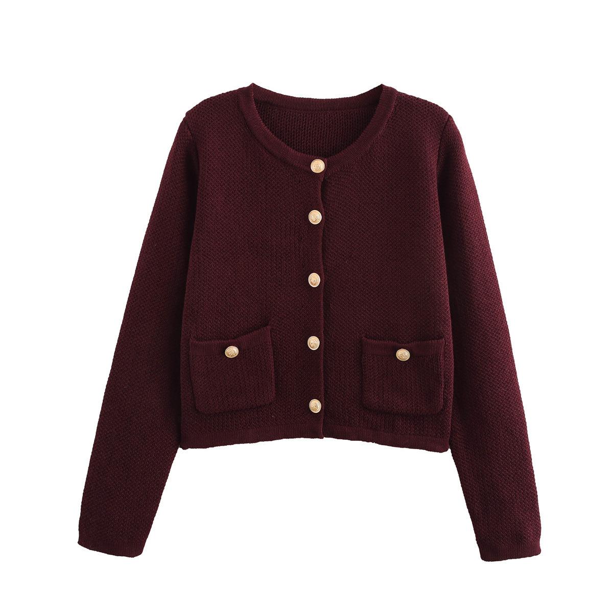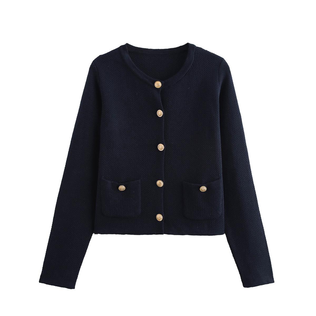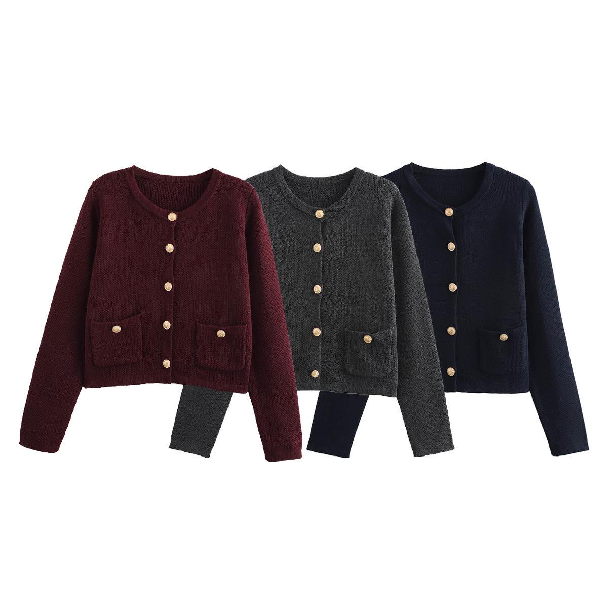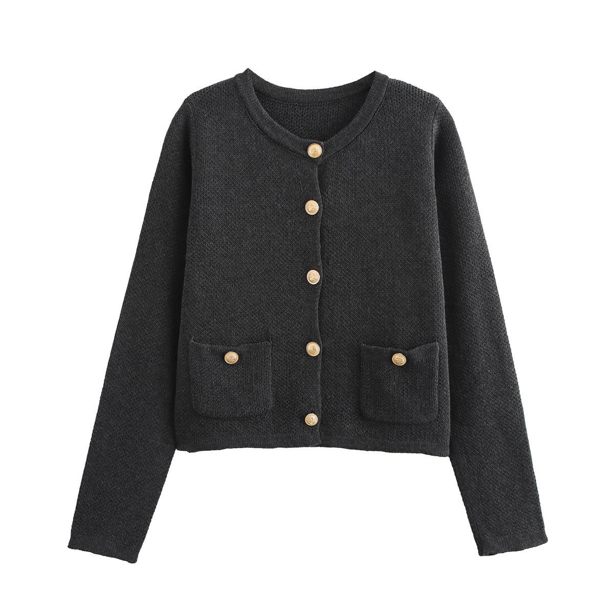 Chaqueta de punto de manga larga con bolsillo y botonadura sencilla dorada para mujer europea y americana de otoño e invierno 2024