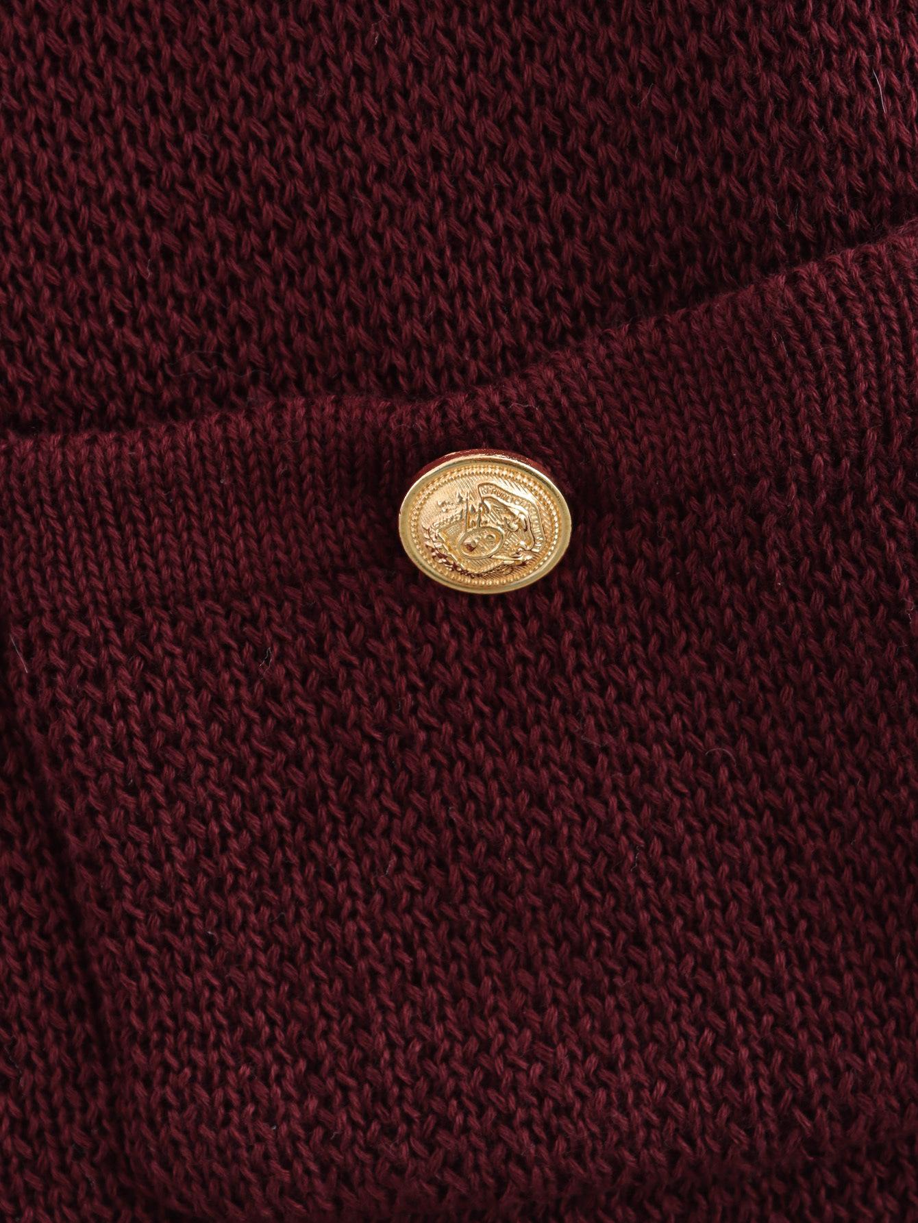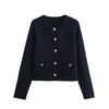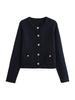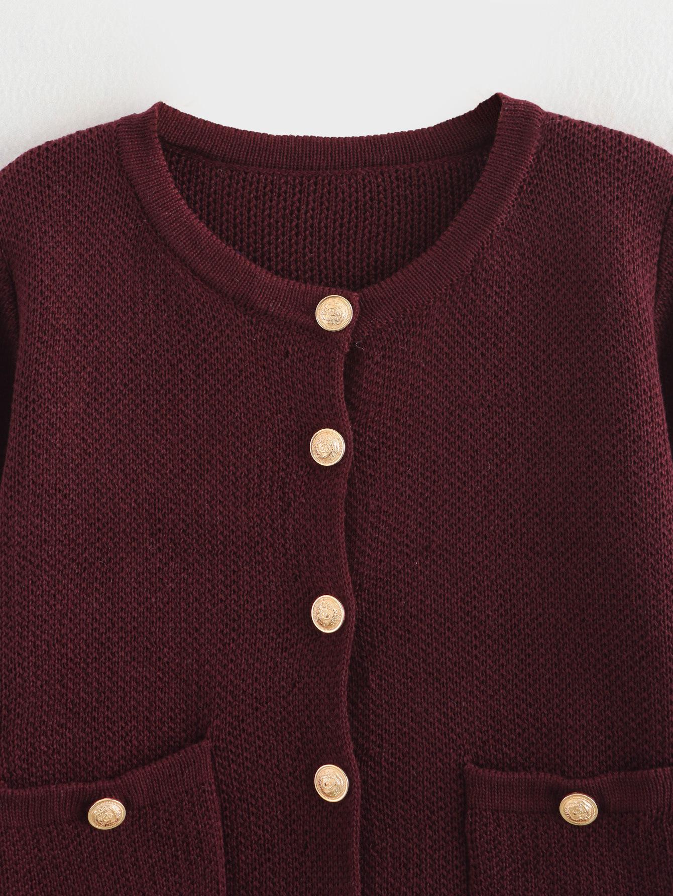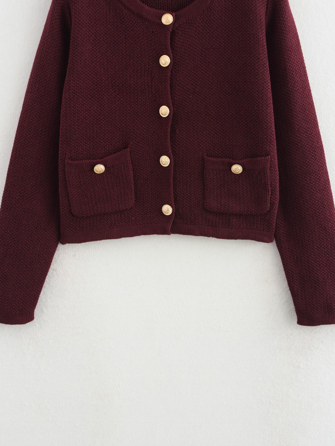 Chaqueta de punto de manga larga con bolsillo y botonadura sencilla dorada para mujer europea y americana de otoño e invierno 2024