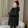 Chaqueta Acolchada de Algodón Nueva Invierno Largo Medio para Mujer Hasta la Rodilla Estilo Coreano Suelta con Capucha Larga Gruesa