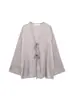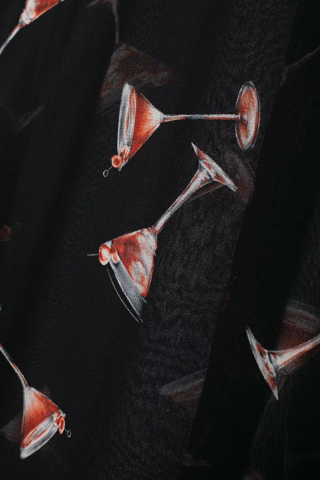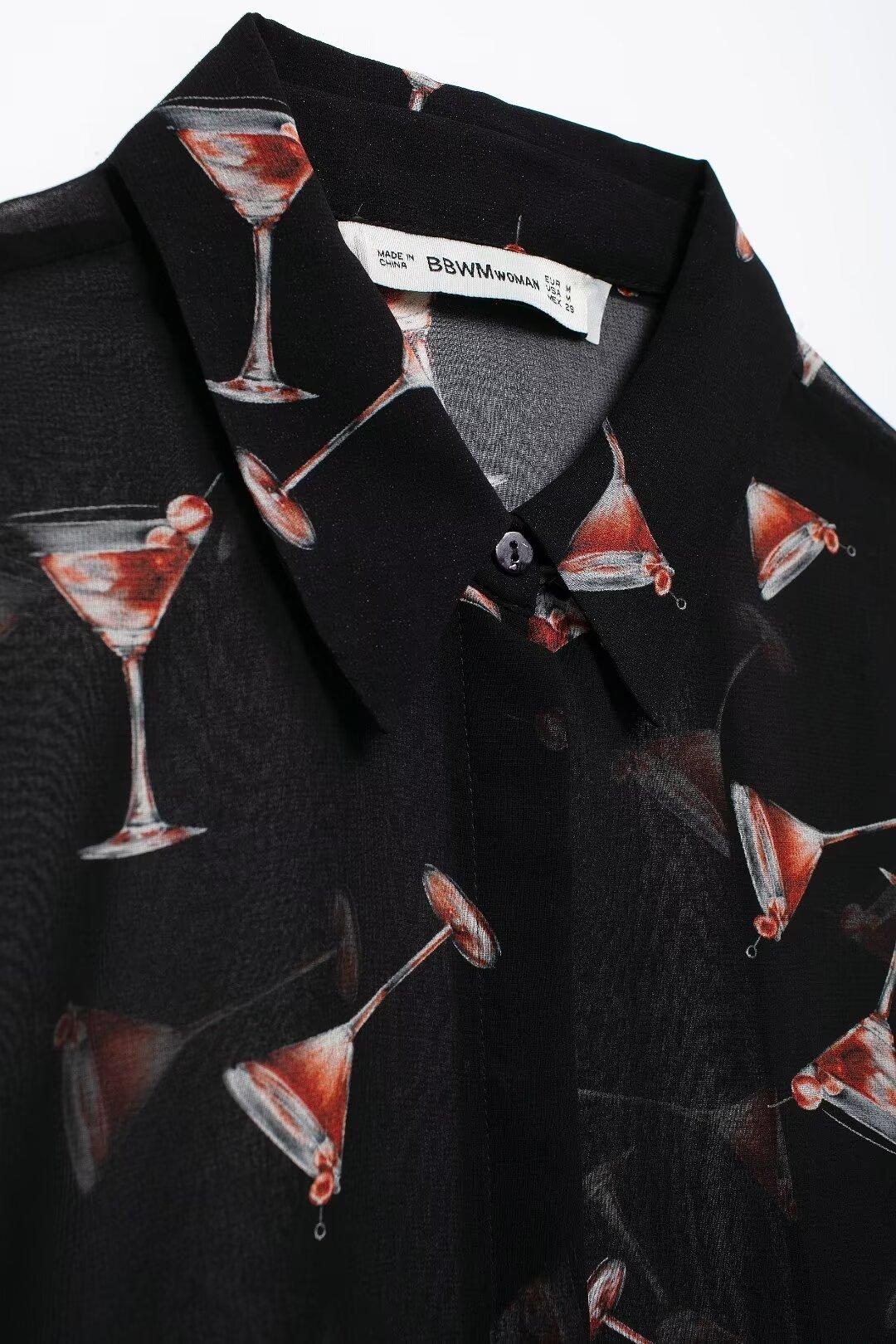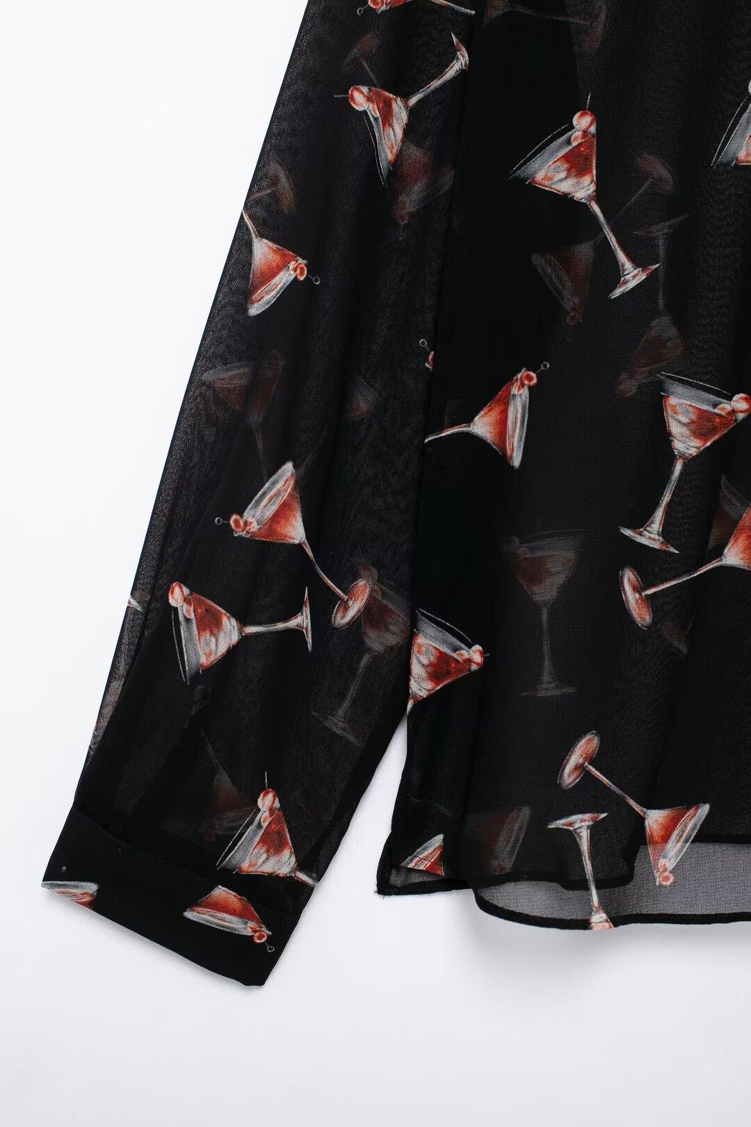 Camisa de manga larga translúcida con estampado de estilo europeo y americano para mujer, estilo casual, elegante y combinable, otoño de 2024