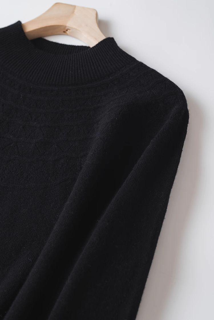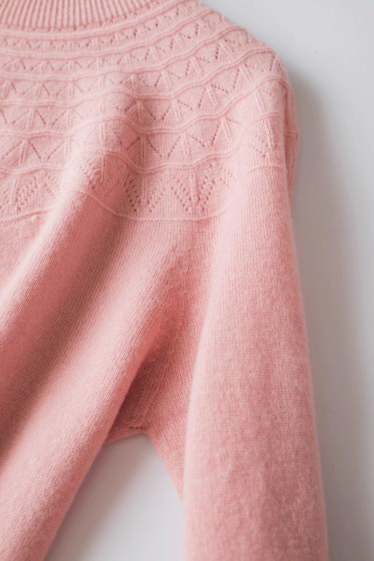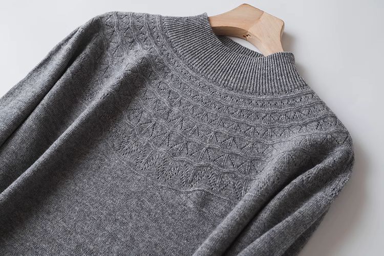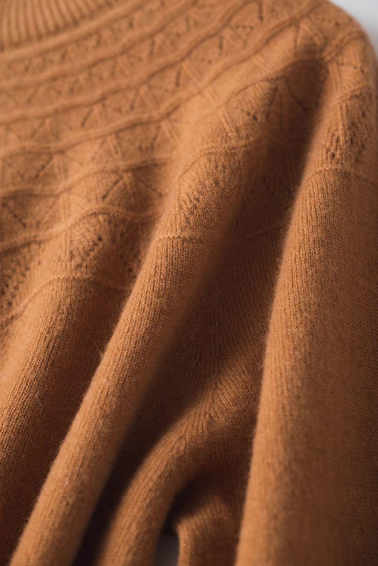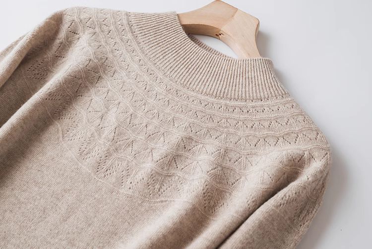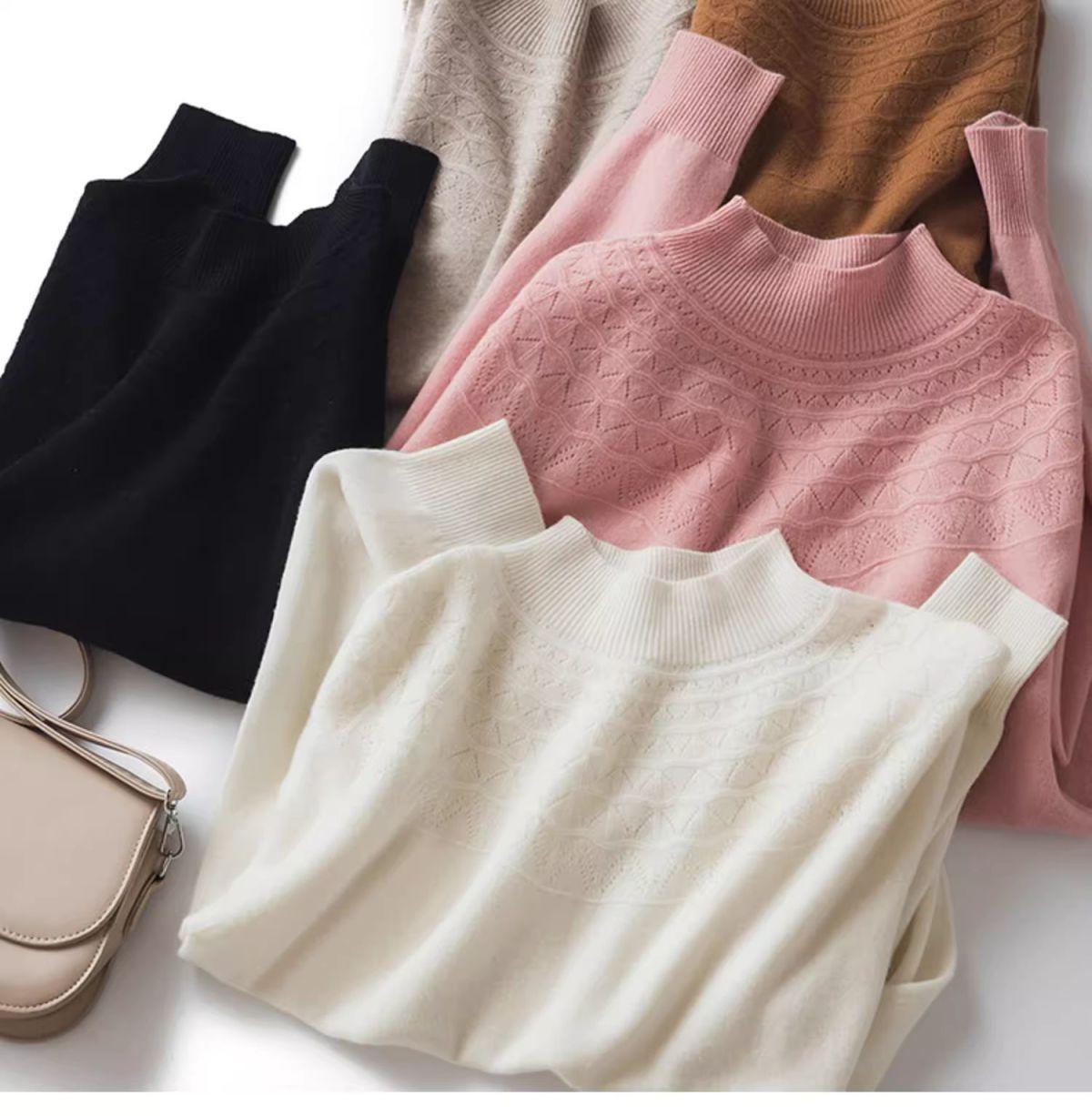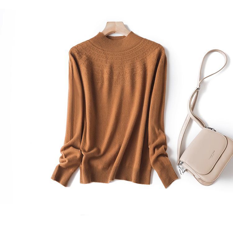 Suéter de una pieza sin costuras de cuello alto medio de lana de cachemira hueca pequeña de ganchillo dulce vintage para mujer otoño e invierno