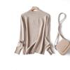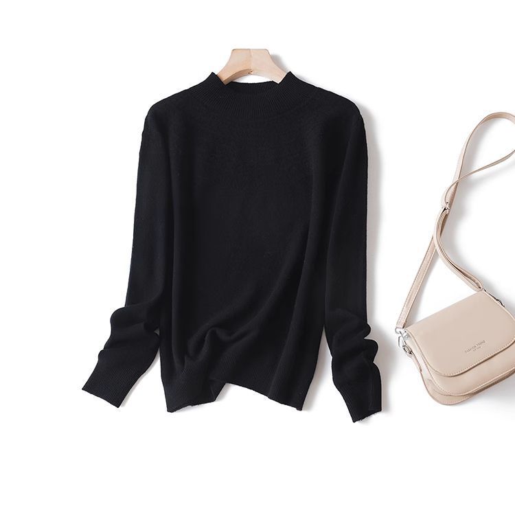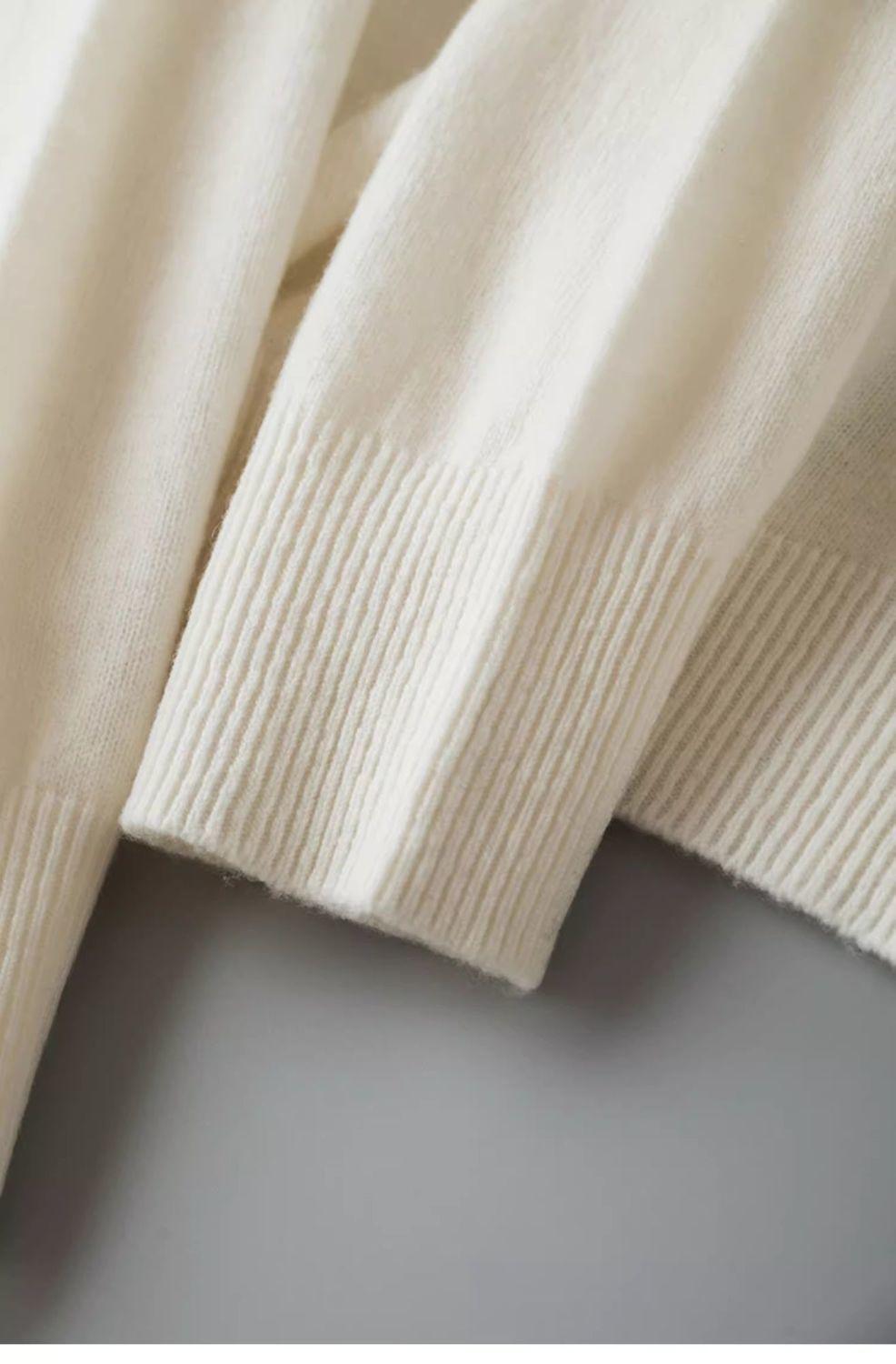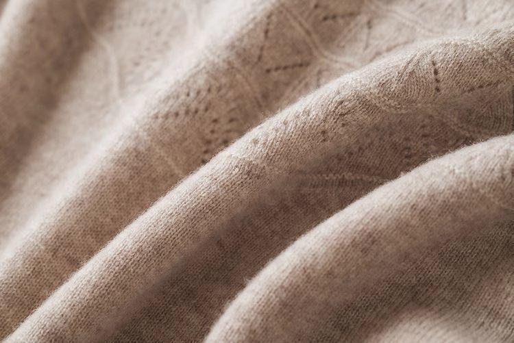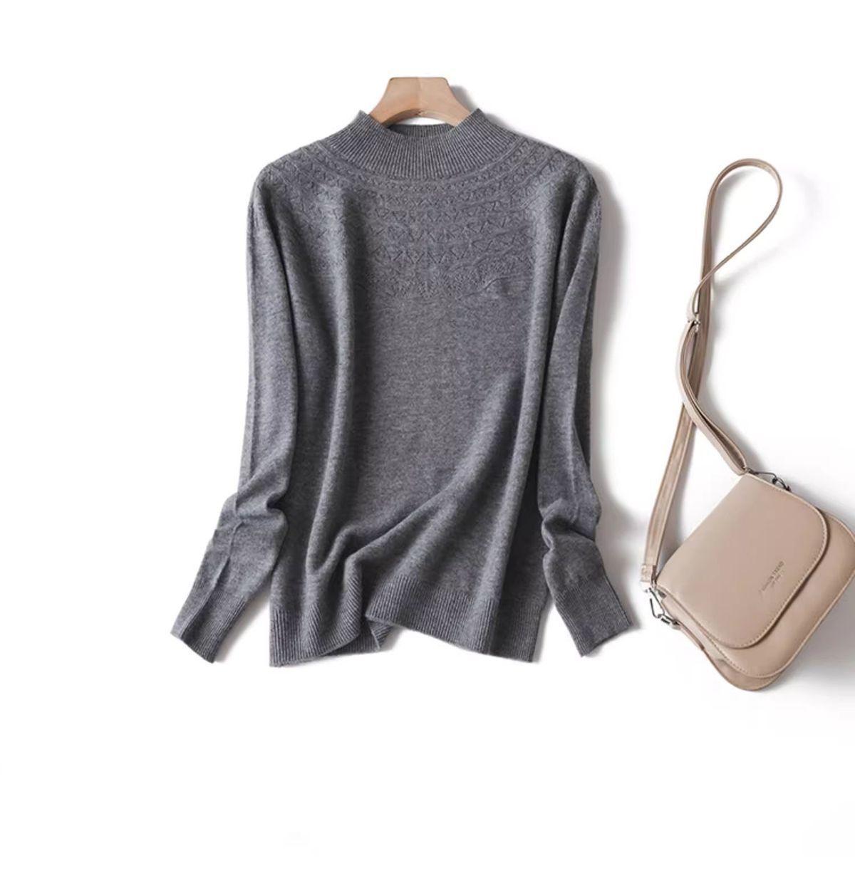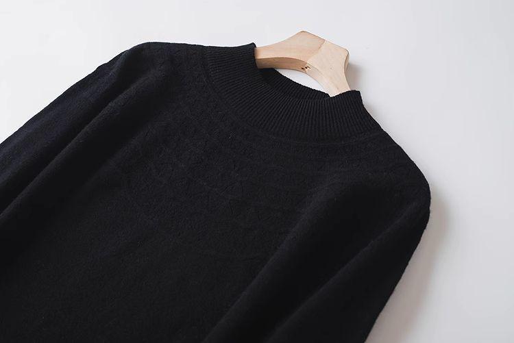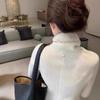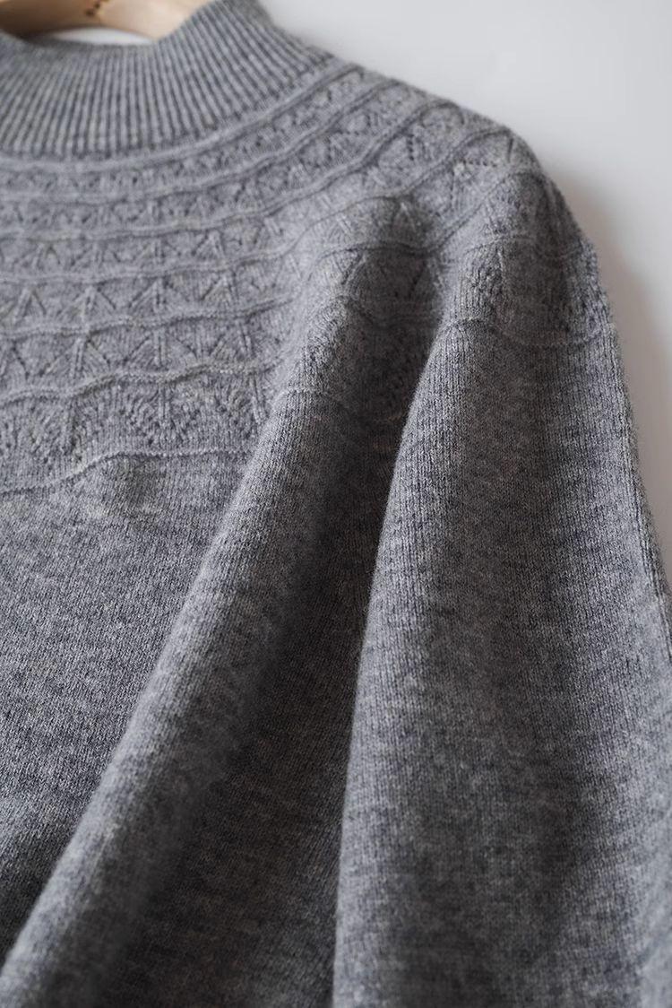 Suéter de una pieza sin costuras de cuello alto medio de lana de cachemira hueca pequeña de ganchillo dulce vintage para mujer otoño e invierno