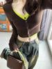 Camisa básica de manga larga con cuello en V y rayas de colores contrastantes para mujer, prenda interior de otoño e invierno, suéter de punto ajustado y adelgazante.