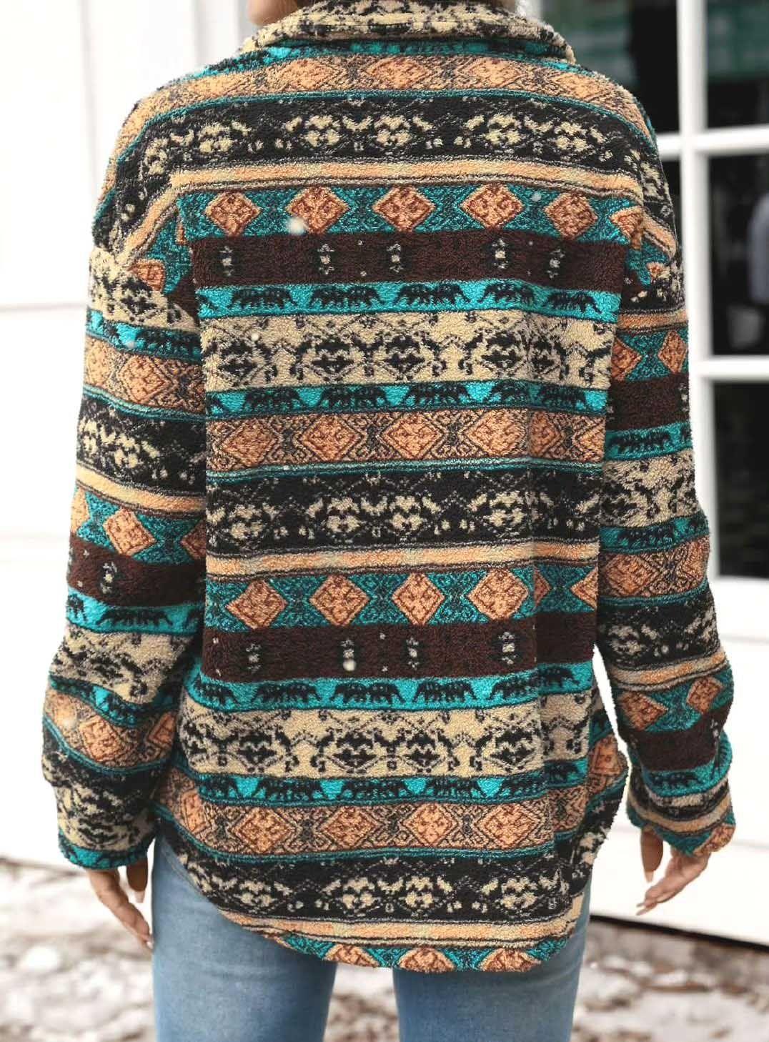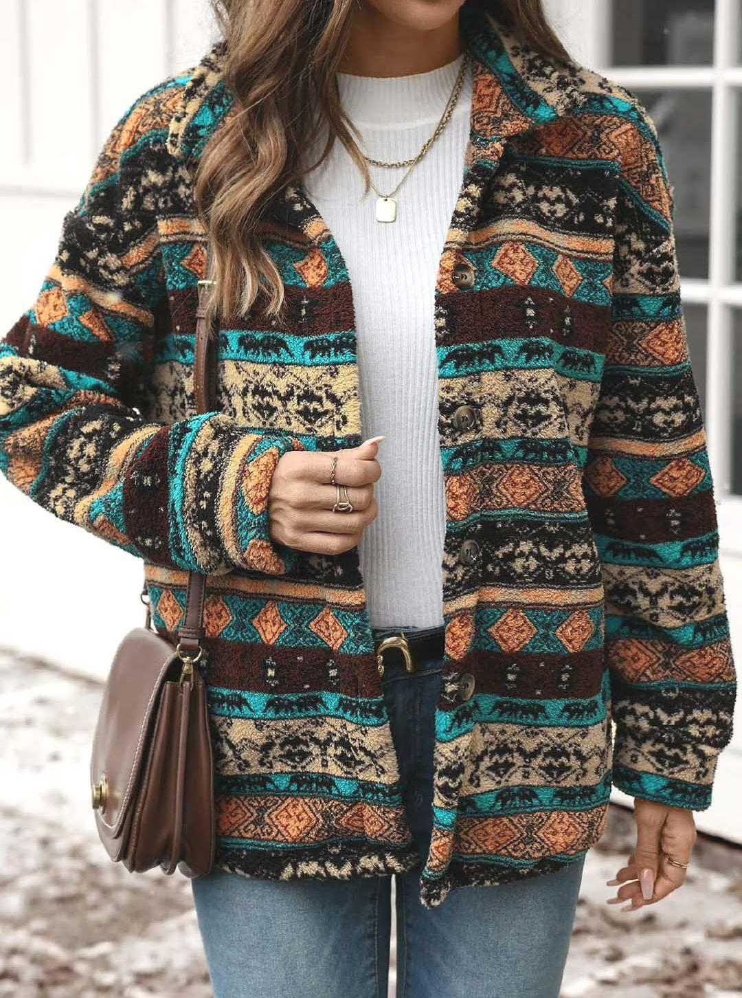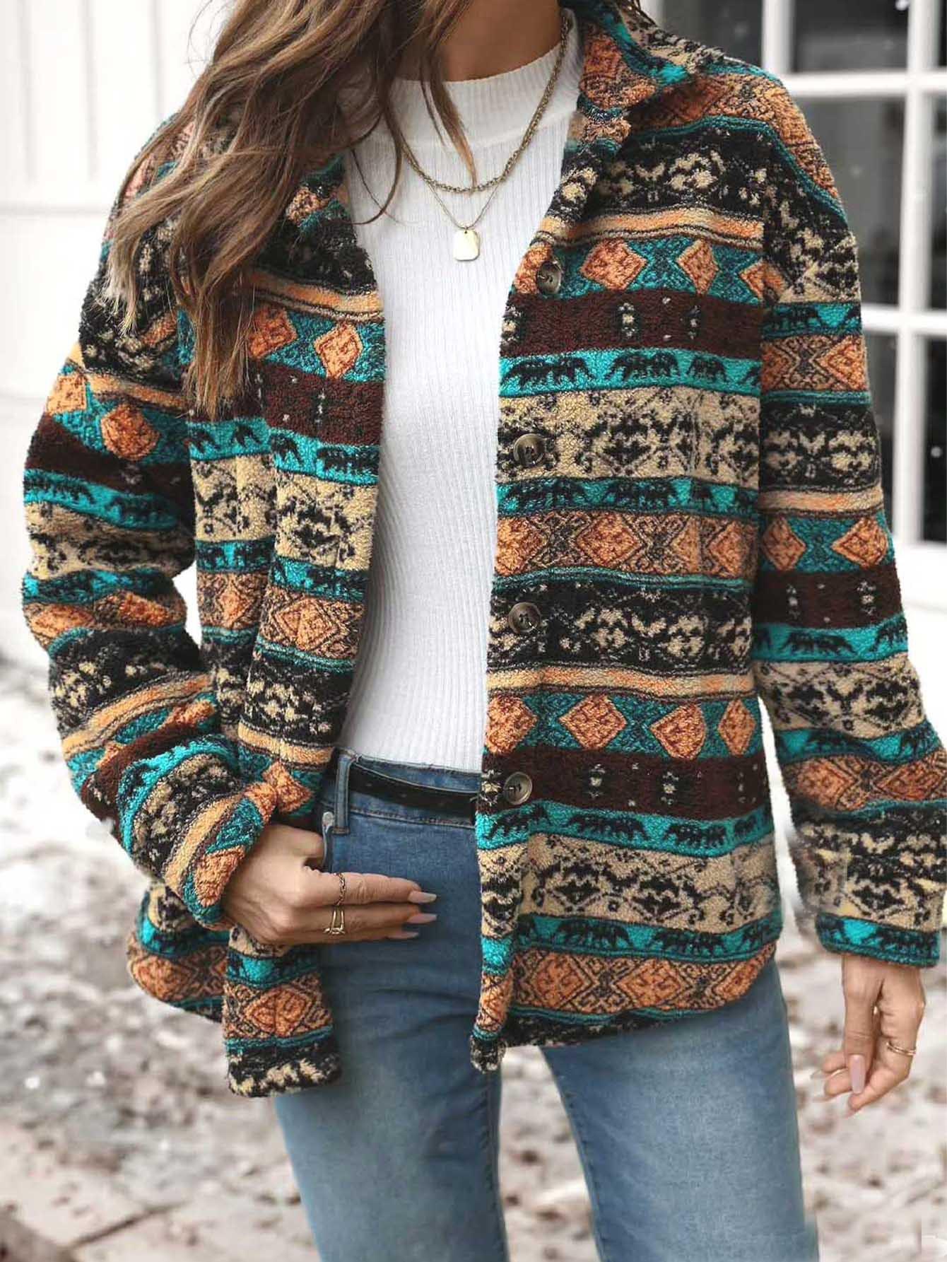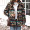 Chaqueta de comercio exterior transfronterizo de Amazon 2024, otoño e invierno, suelta, estampada, de terciopelo de doble cara, europea y americana, con cremallera