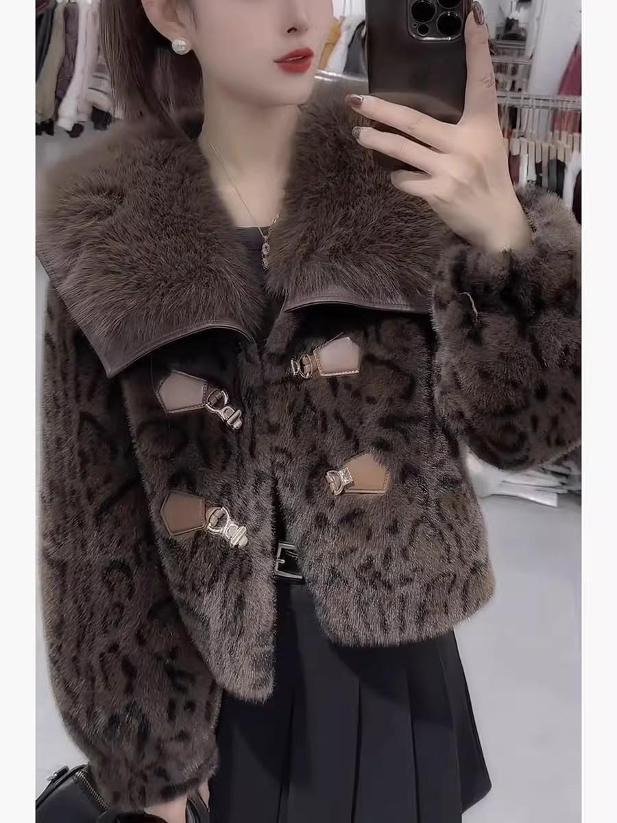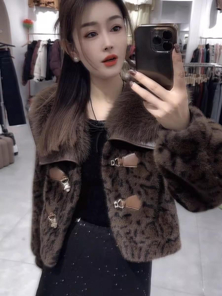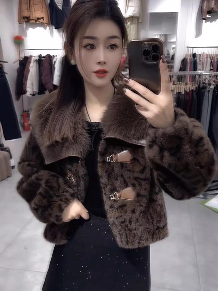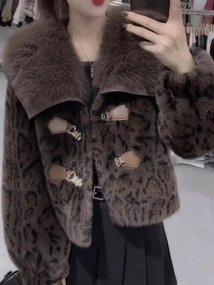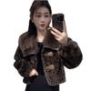 Abrigo de piel de visón sintético suelto con solapa corta para mujer, invierno 2024
