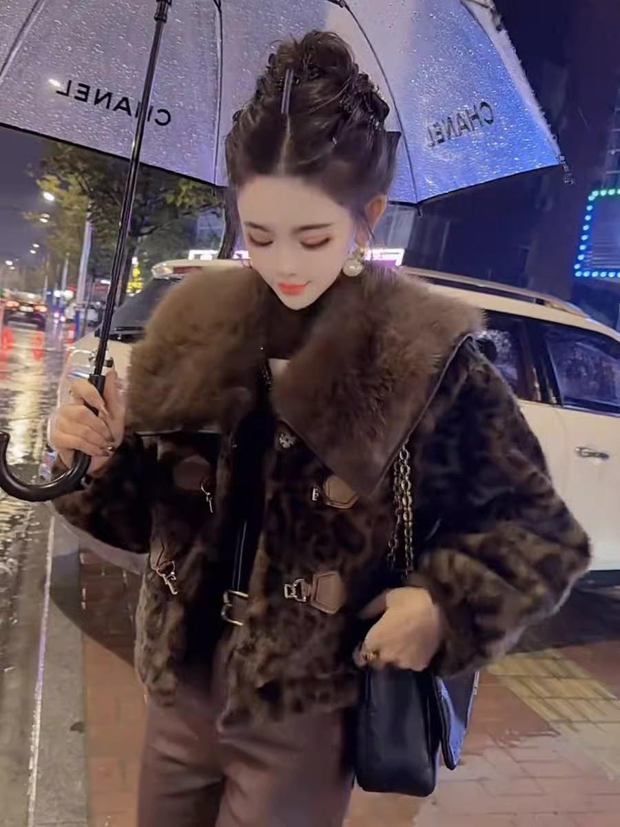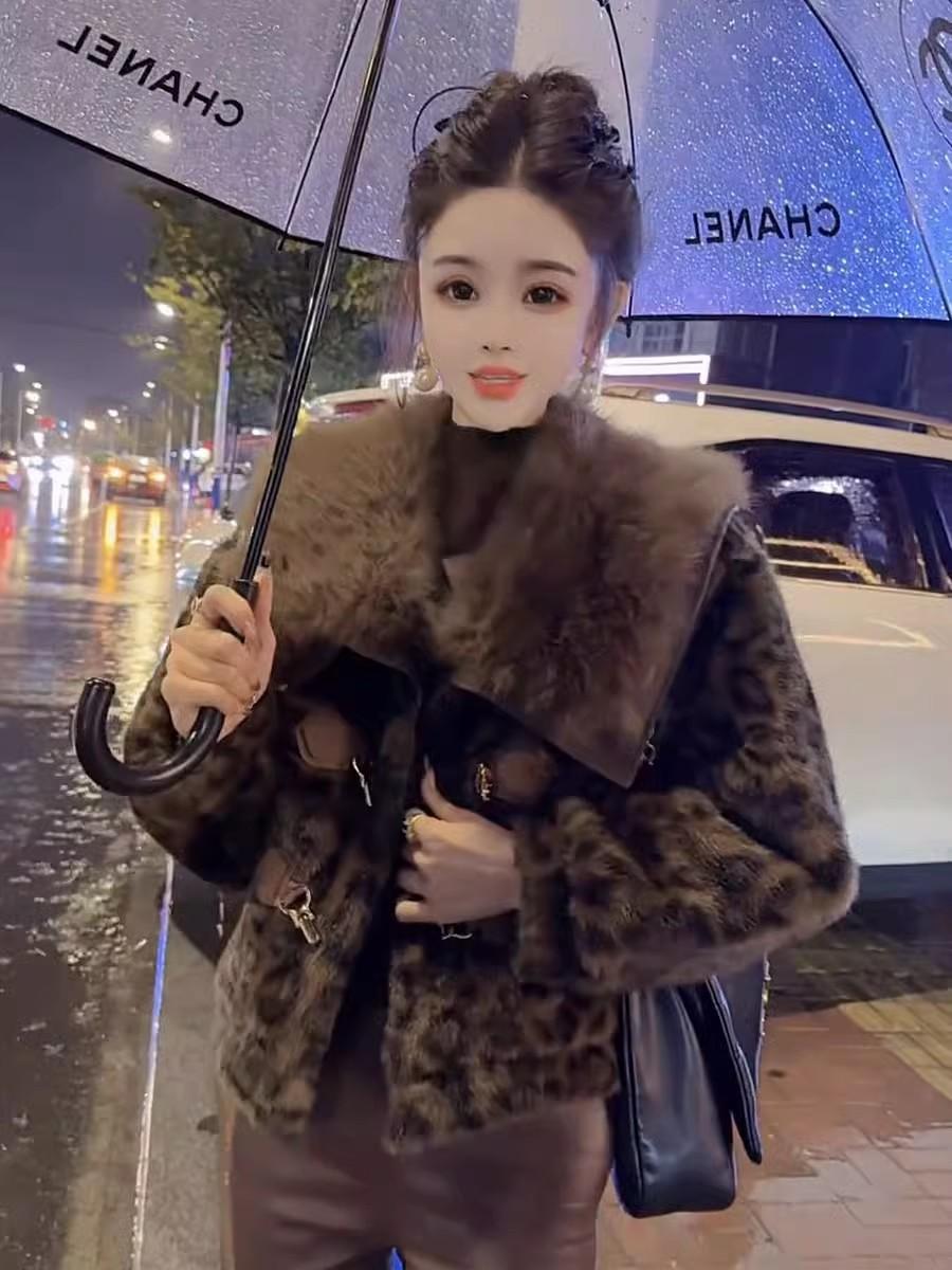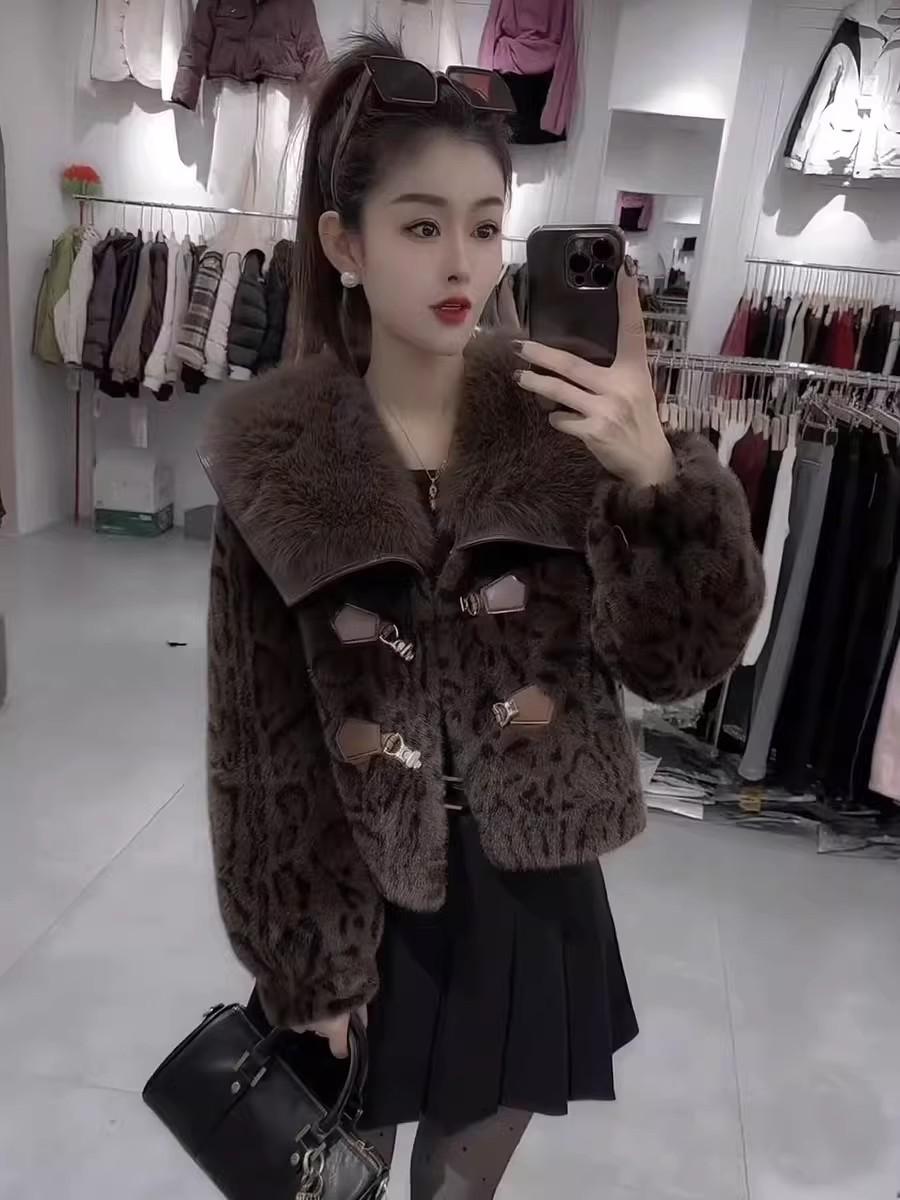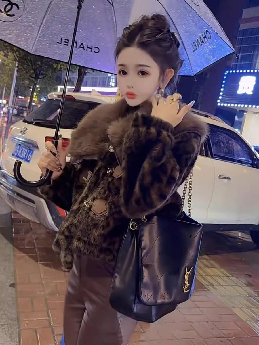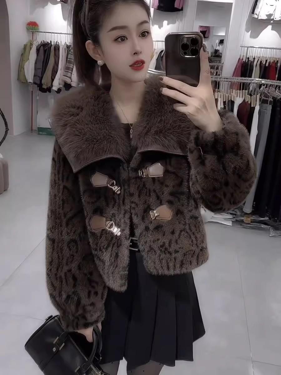 Abrigo de piel de visón sintético suelto con solapa corta para mujer, invierno 2024
