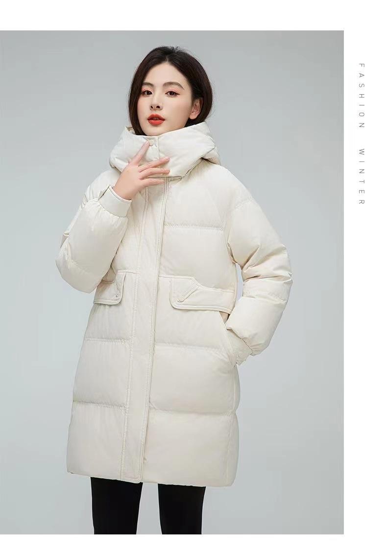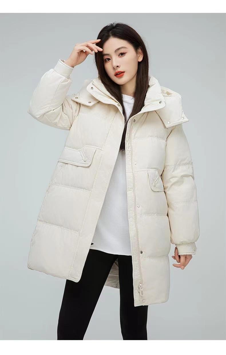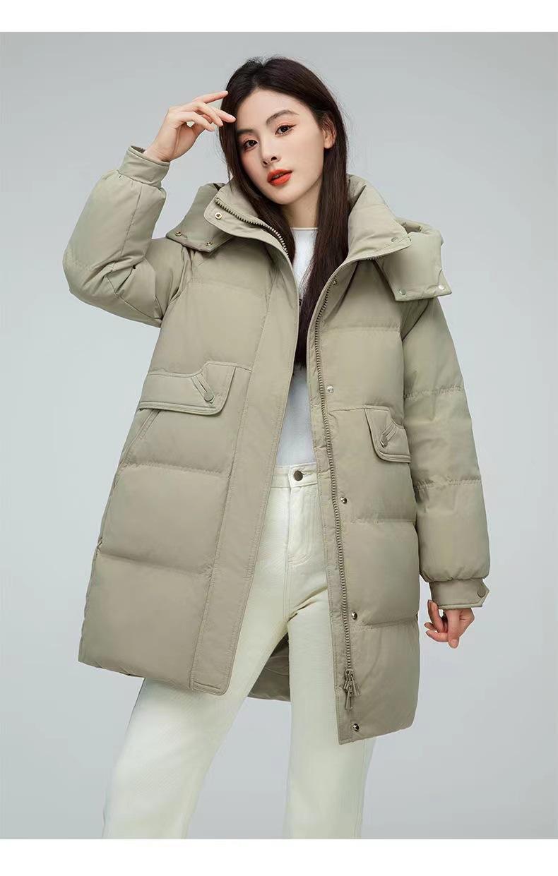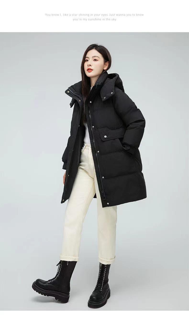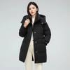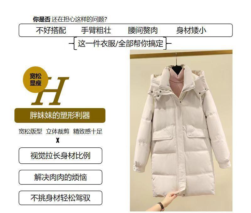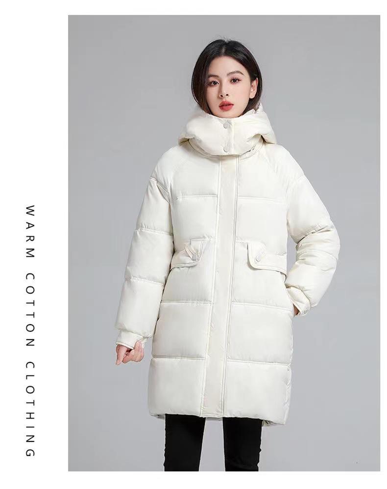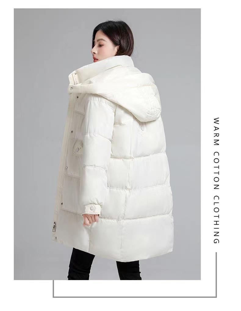 Chaqueta acolchada de algodón de plumón para mujer, nueva moda 2024, de longitud media, holgada, de invierno, estilo coreano, con capucha y acolchado de algodón.