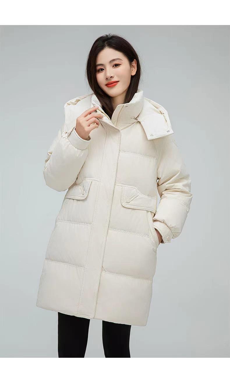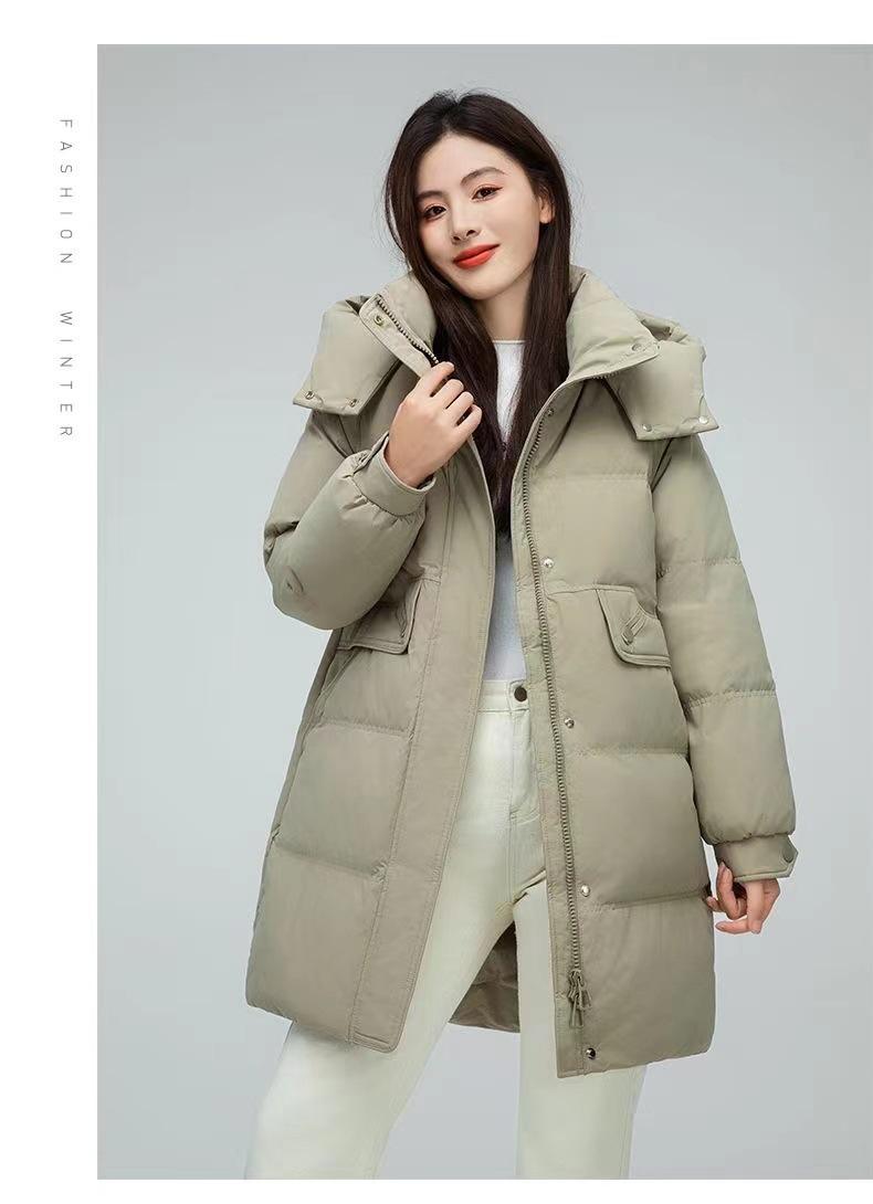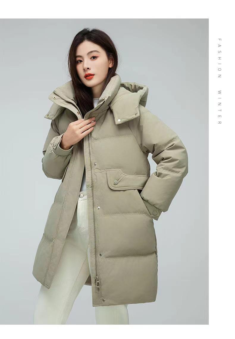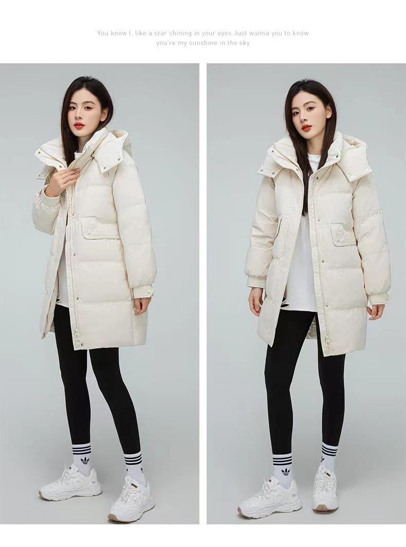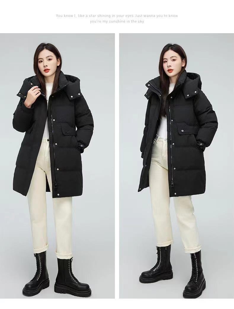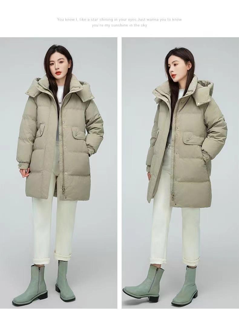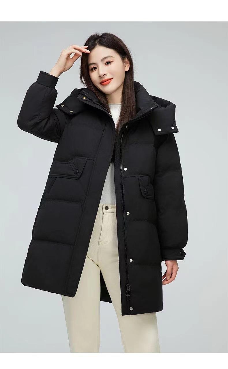 Chaqueta acolchada de algodón de plumón para mujer, nueva moda 2024, de longitud media, holgada, de invierno, estilo coreano, con capucha y acolchado de algodón.