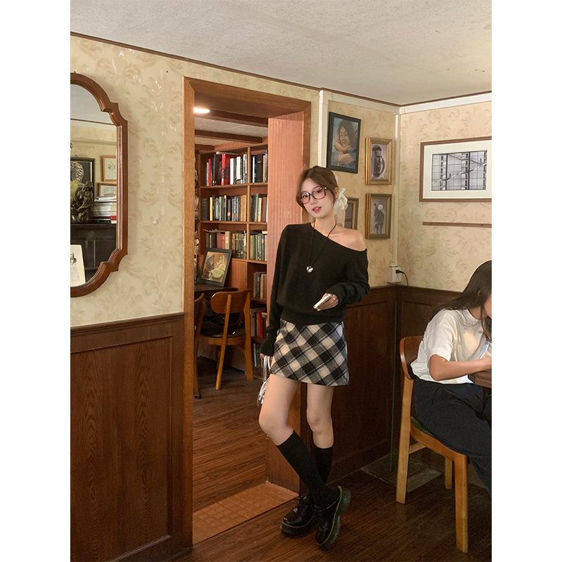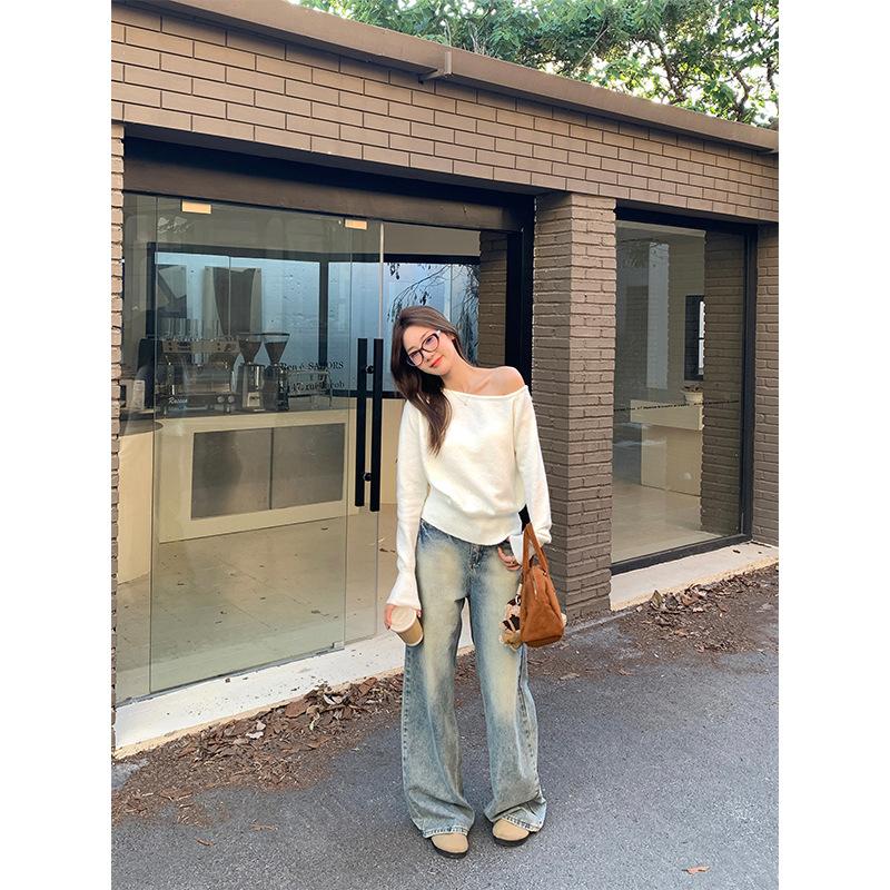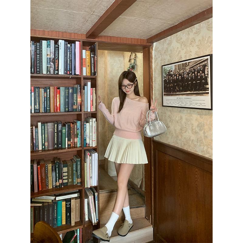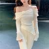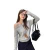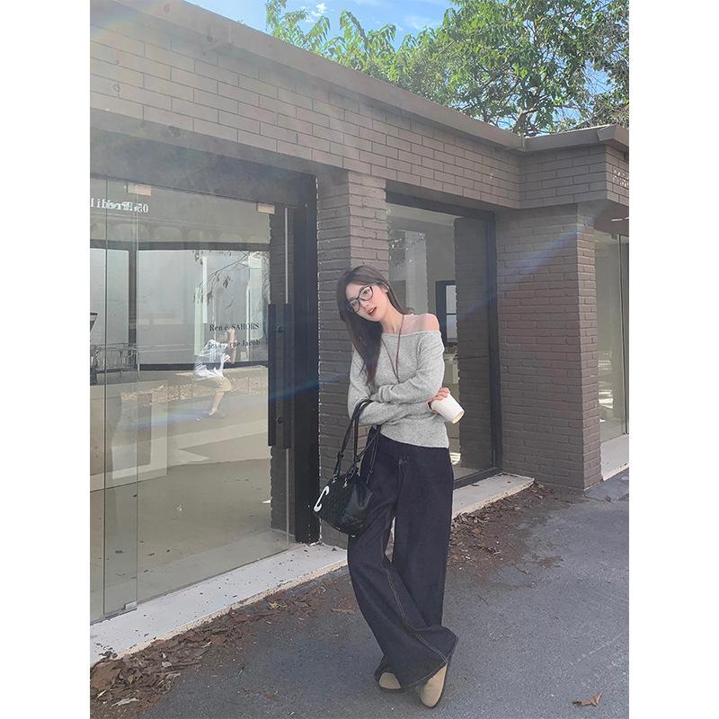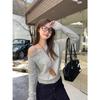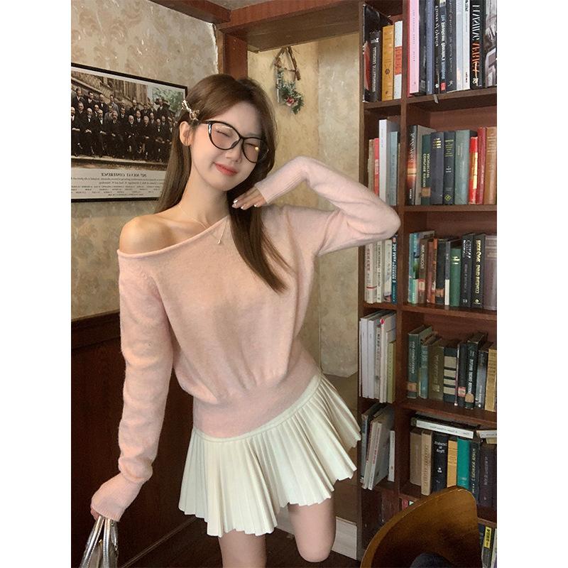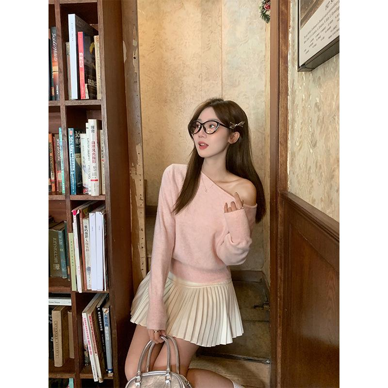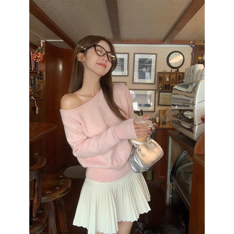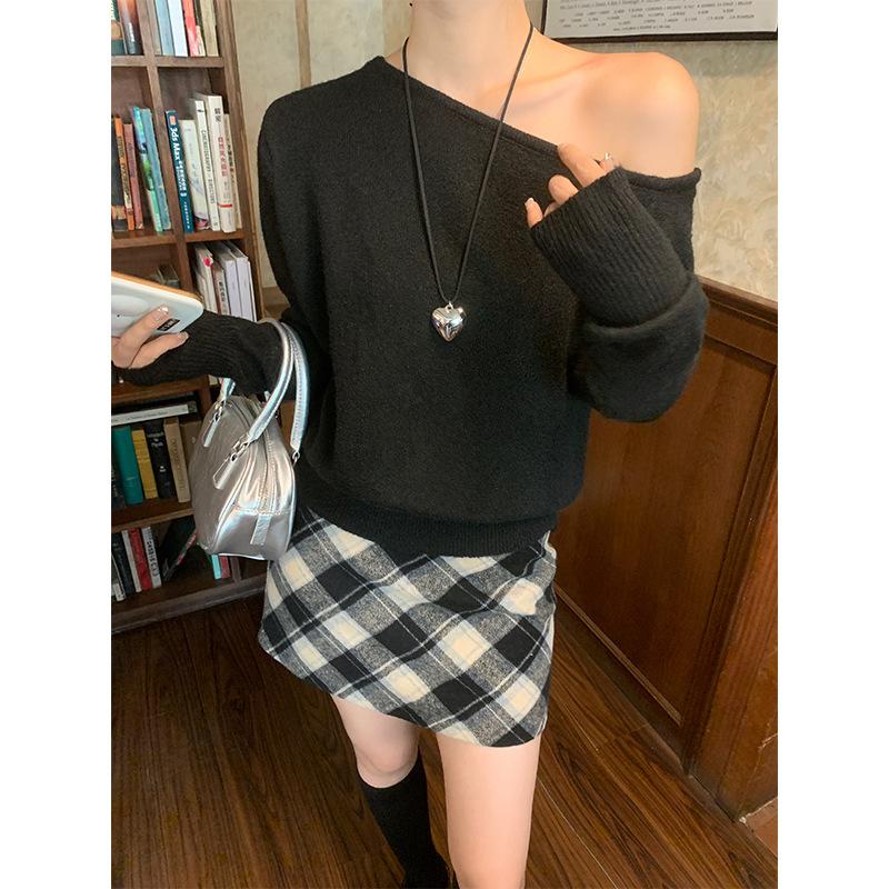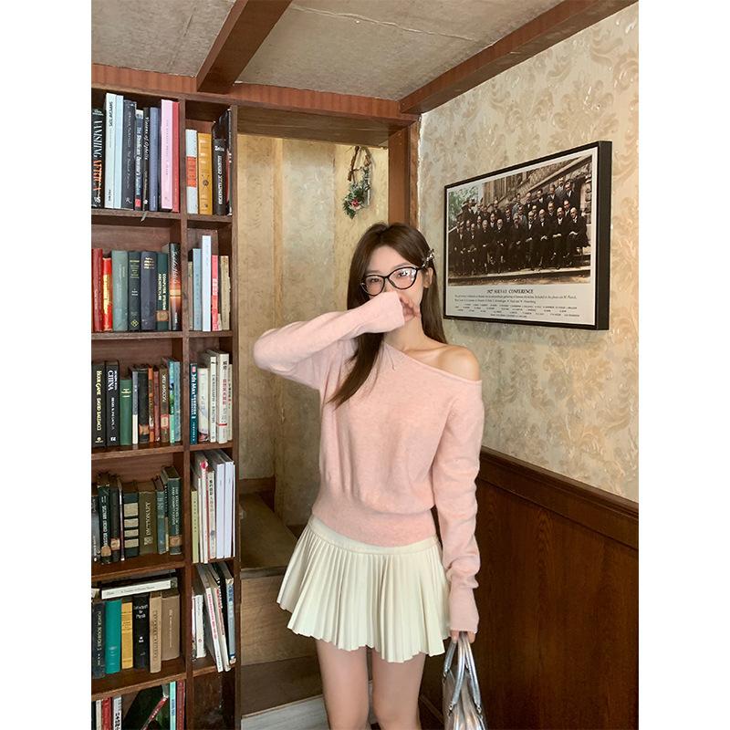 Suéter de manga larga con hombro irregular para mujer 2025 Nuevo Otoño e Invierno Ajustado Hombro Chic Tejido Versátil Top