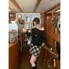 Camiseta de manga corta con cuello en V y hombros rectos estilo retro americano para mujer, estilo veraniego, con cintura dulce y picante, dobladillo curvo y corte ajustado.