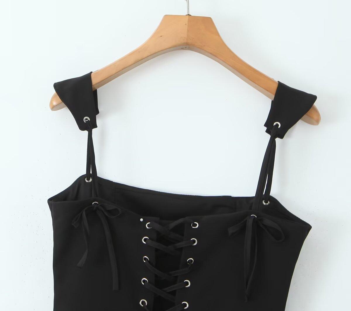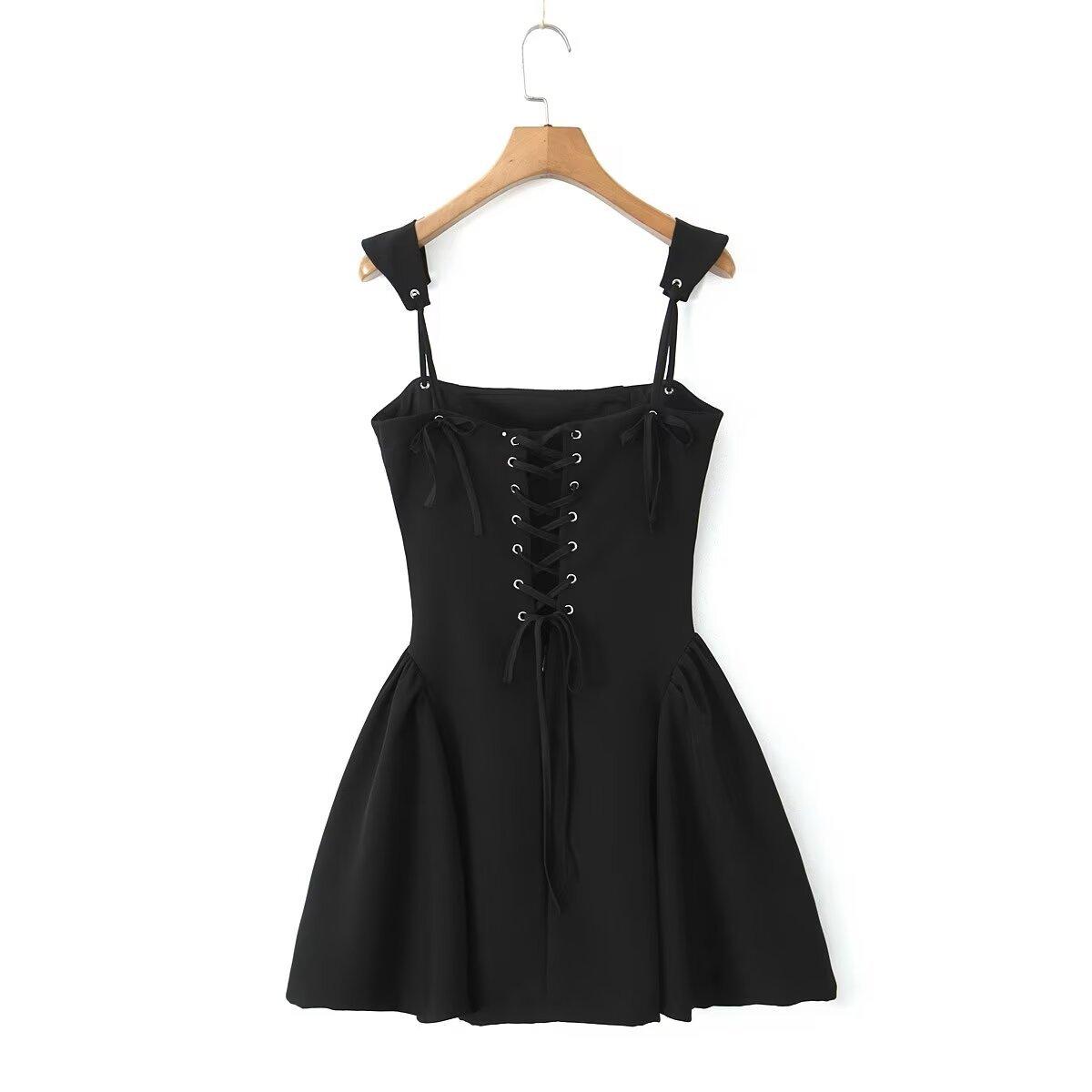 1316-24 Invierno Nuevo Estilo Europeo y Americano Vestido de Falda despeinada con Tirantes Ajustados y Espalda Sin Tirantes