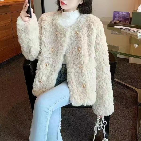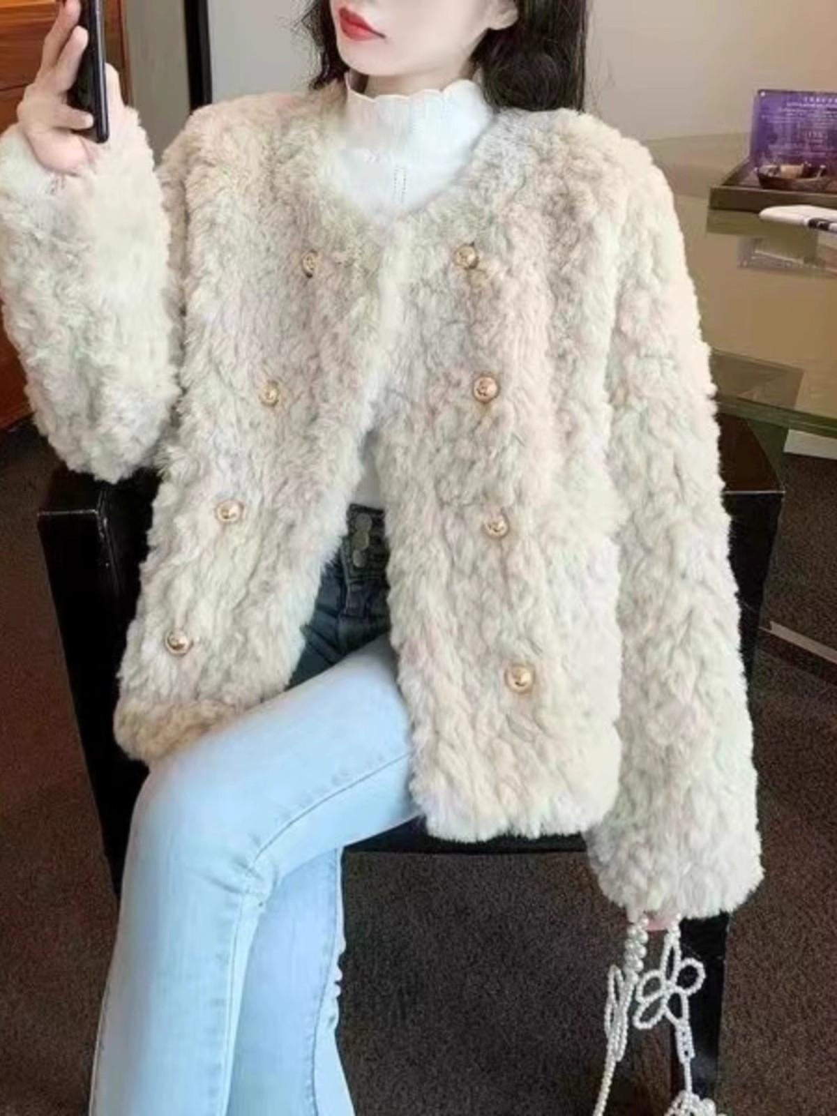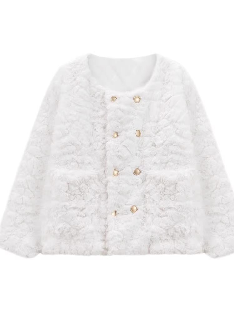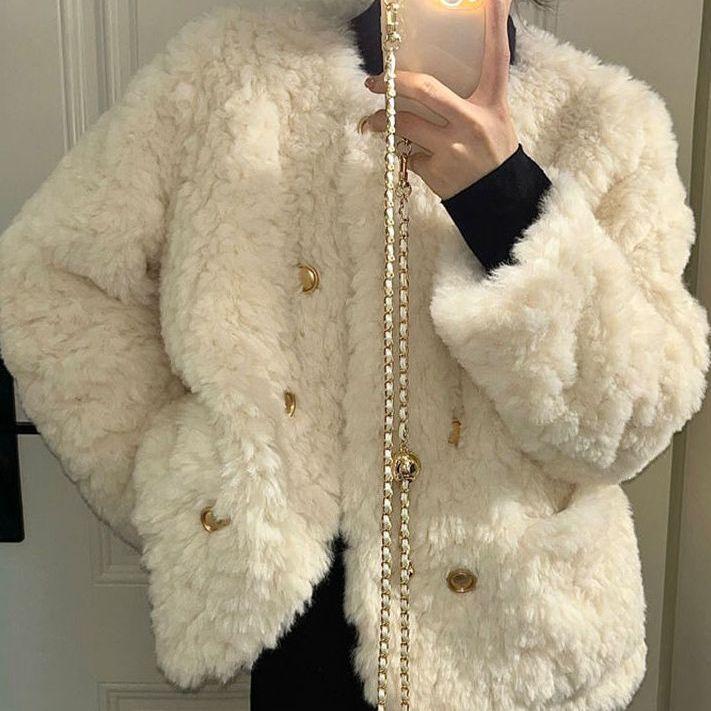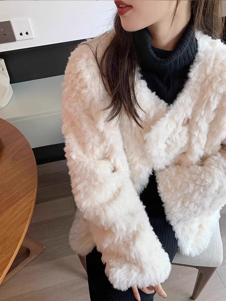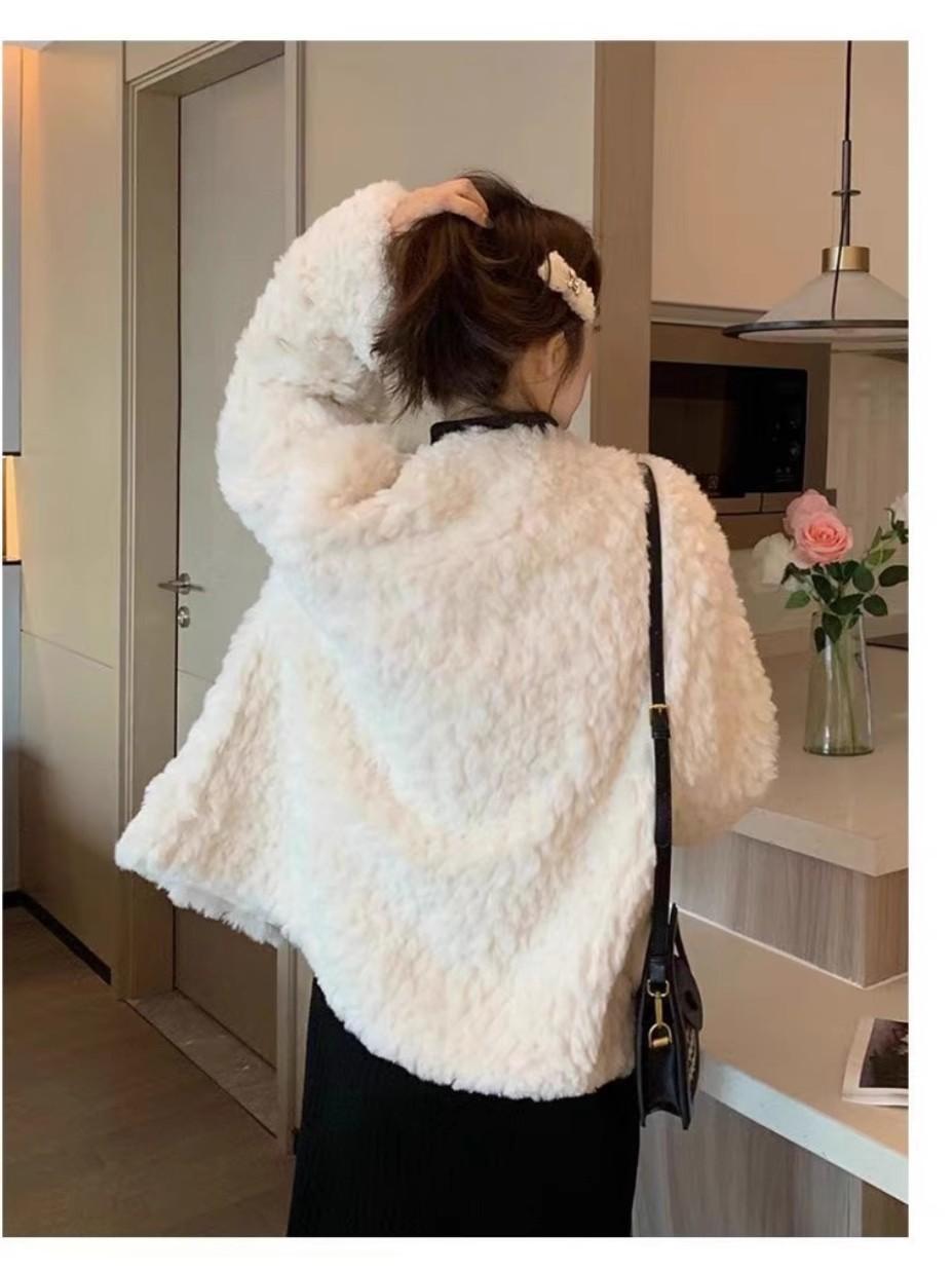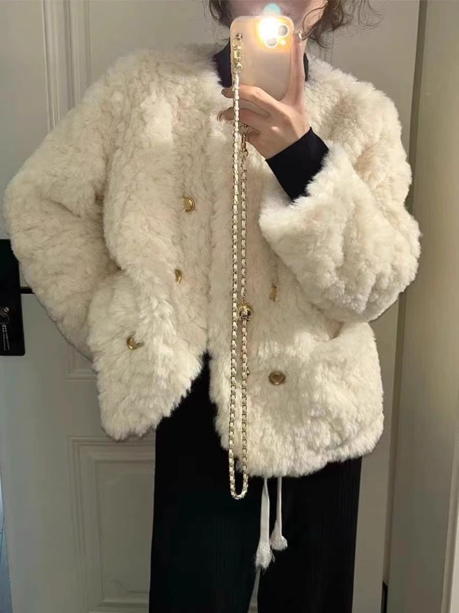 Abrigo Chanel Imitación Lana de Cordero Pequeño Grueso Blanco Top Abrigo de Algodón Blanco Abrigo de Lana de Cordero A2372