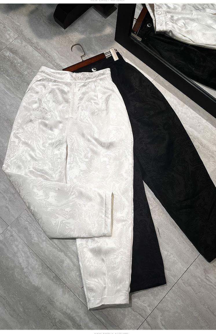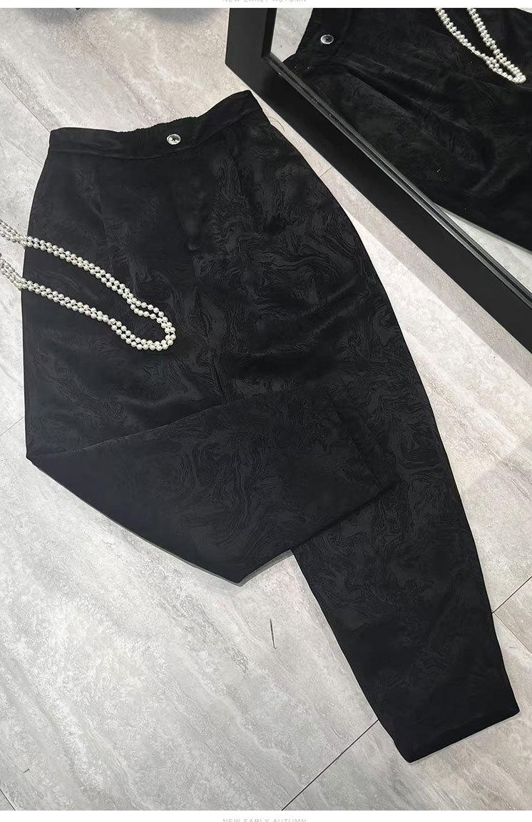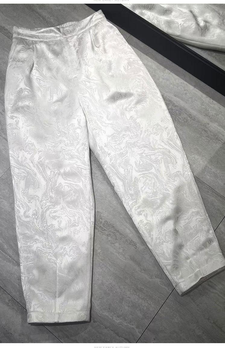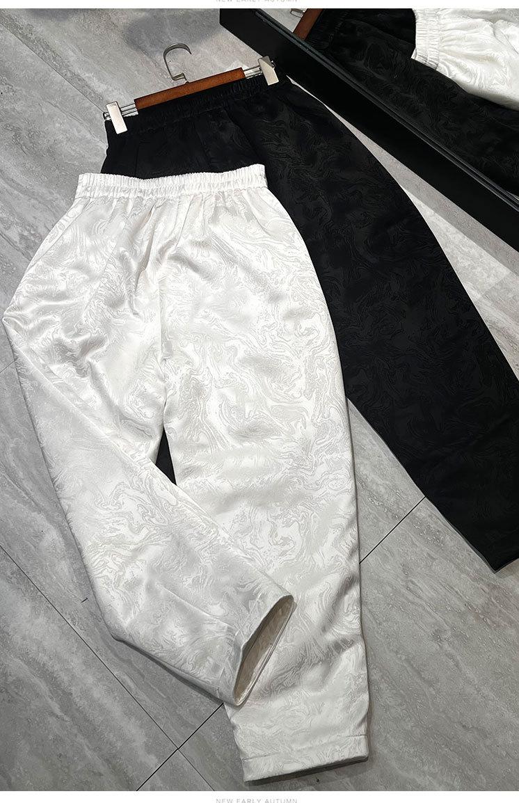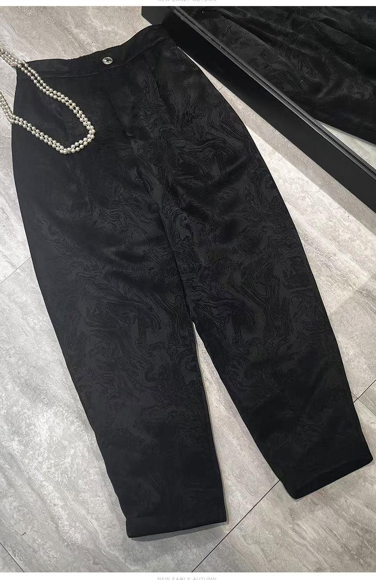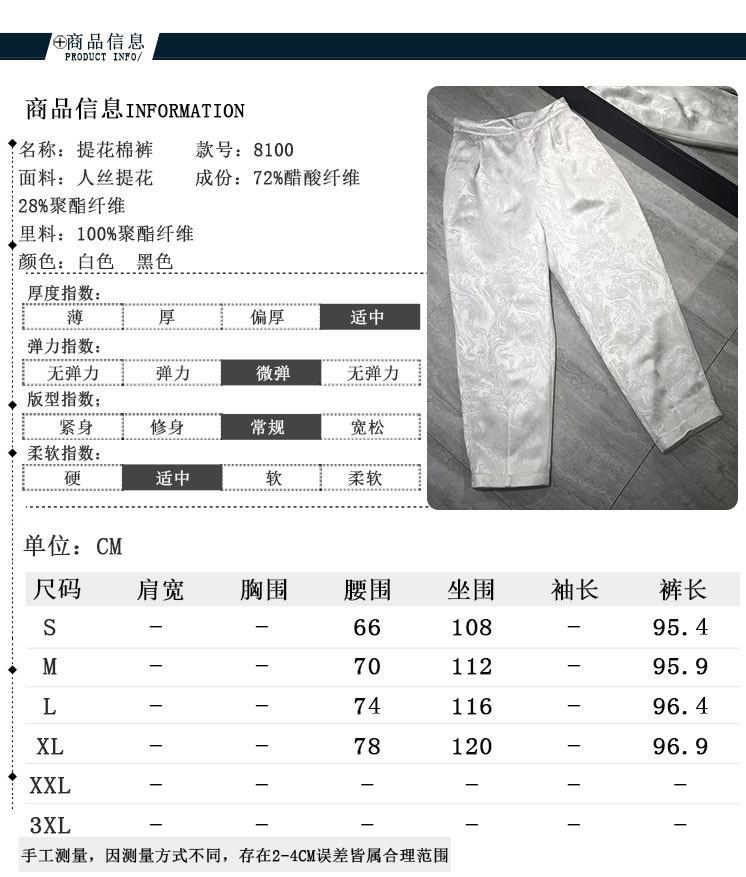Nuevo Estilo Chino Otoño e Invierno Nuevo Jacquard Adelgazante Cálido Suelto Moda Casual Cintura Escalonada Versátil Pantalones de Algodón 8100