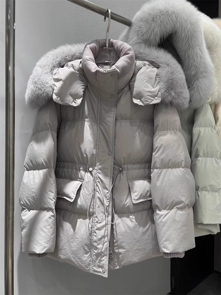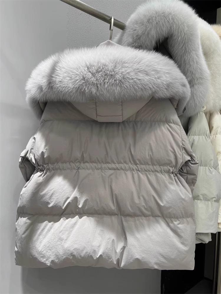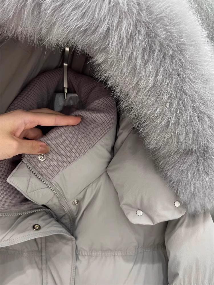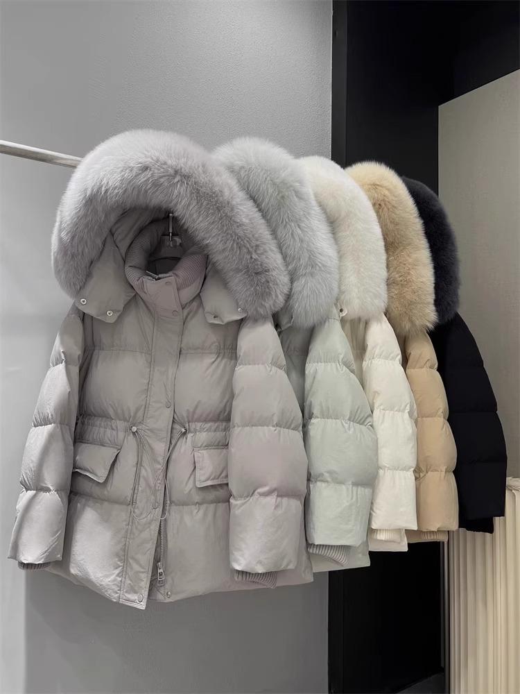 Warm gray + light gray fox fur, Black + dark gray fox fur, Off-white + off-white fox fur, Milk coffee color + milk coffee fox fur