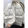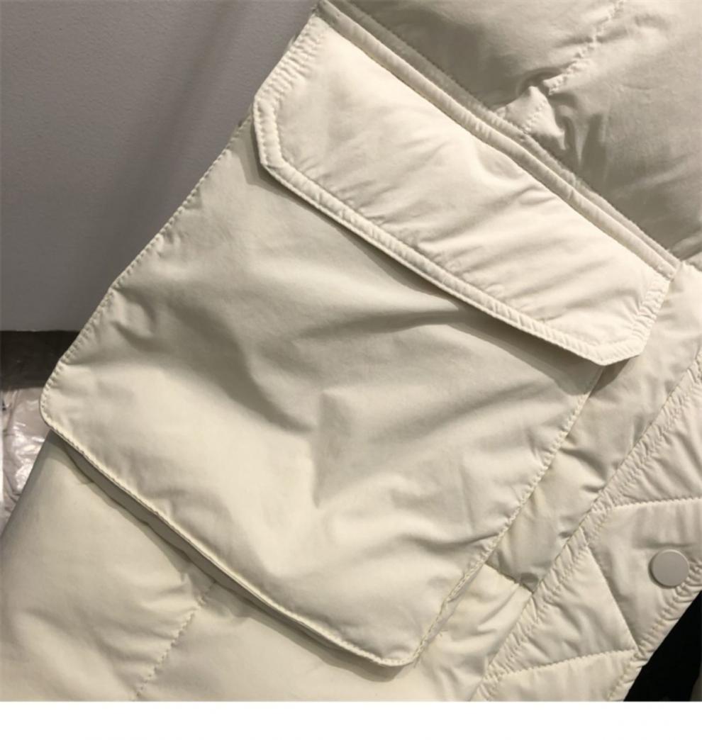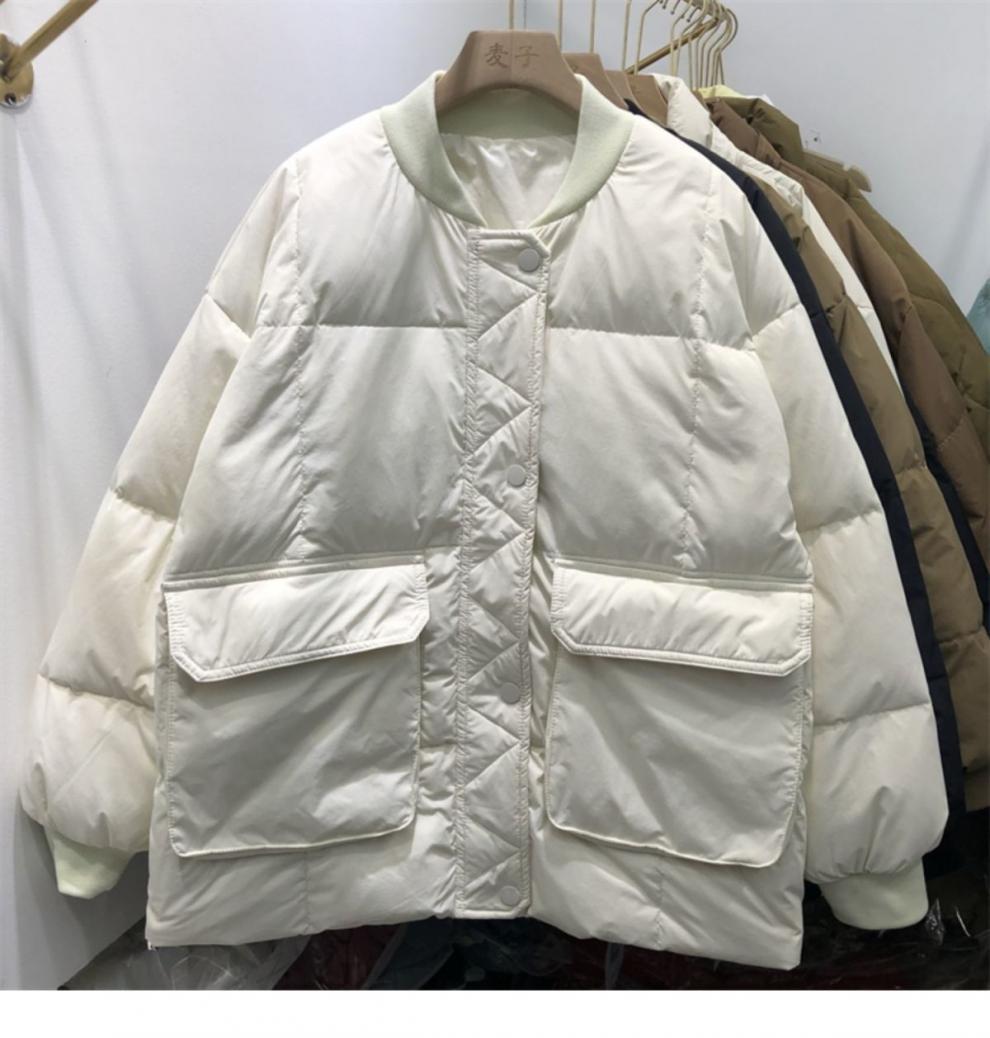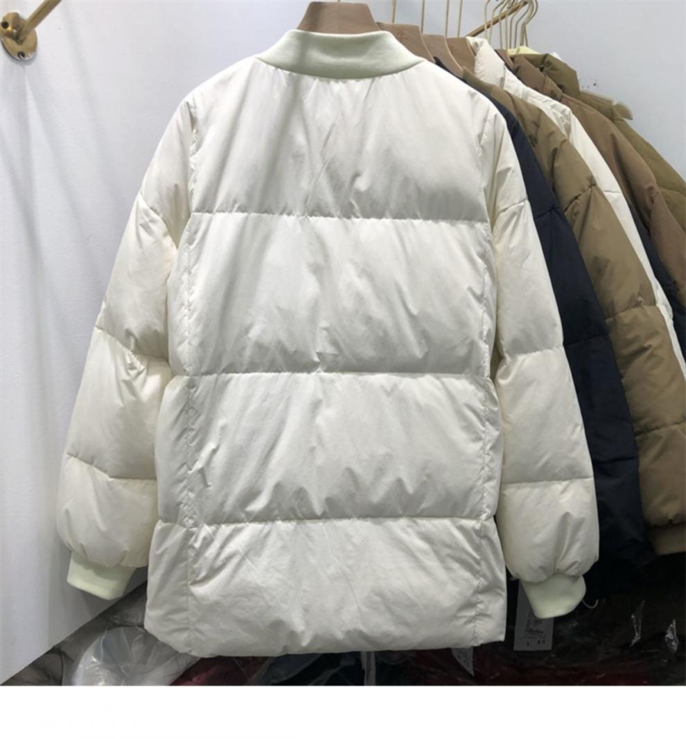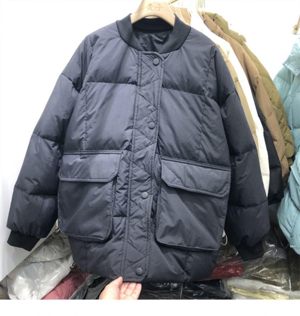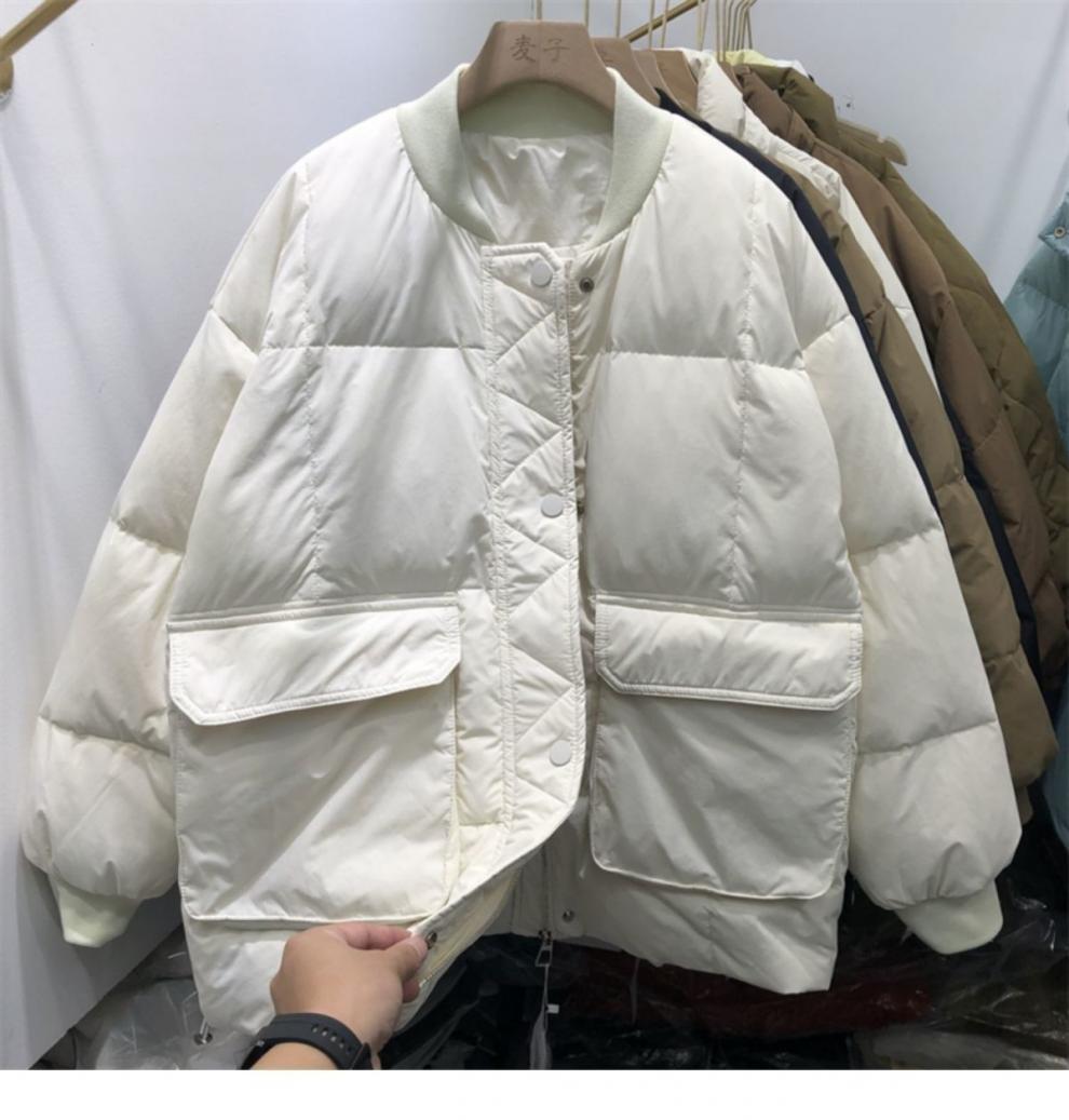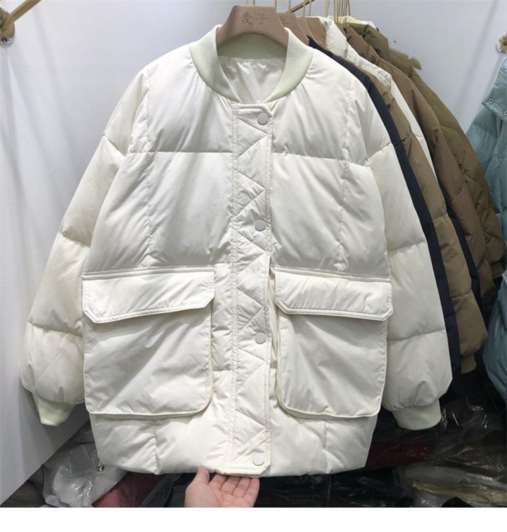 Chaqueta acolchada de algodón con cuello vertical y bolsillos grandes para mujer, diseño novedoso de invierno 2024, estilo béisbol de nicho
