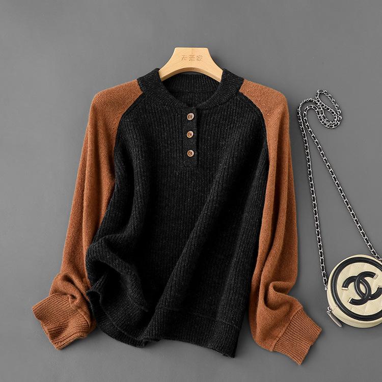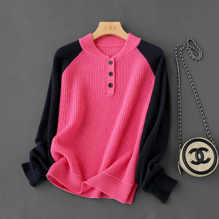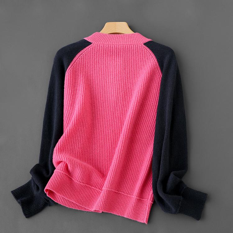 El estilo general es un suéter de punto recto ligeramente holgado.