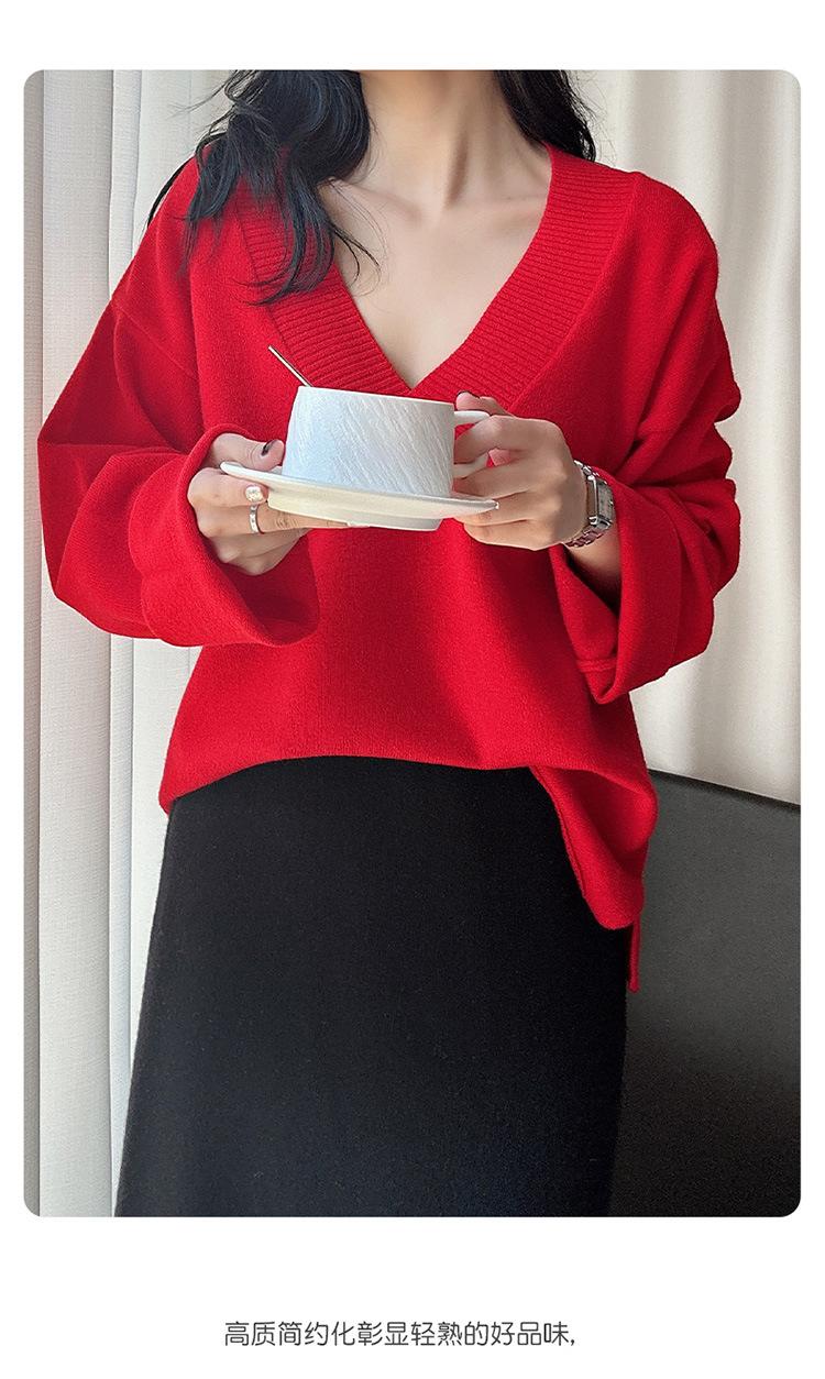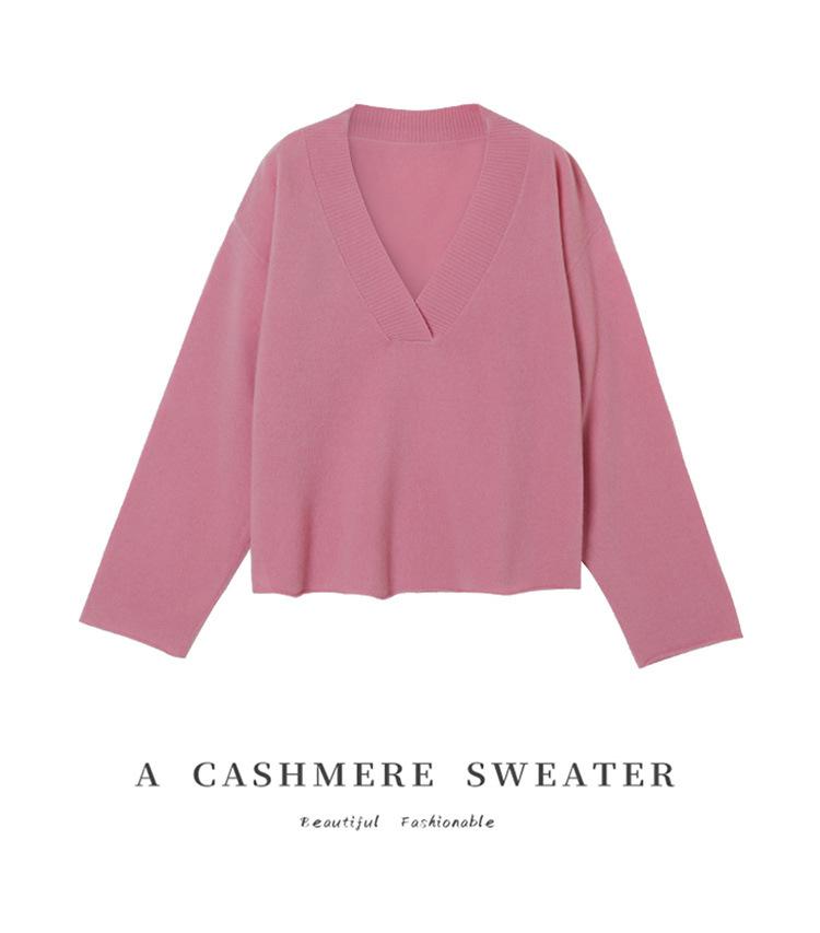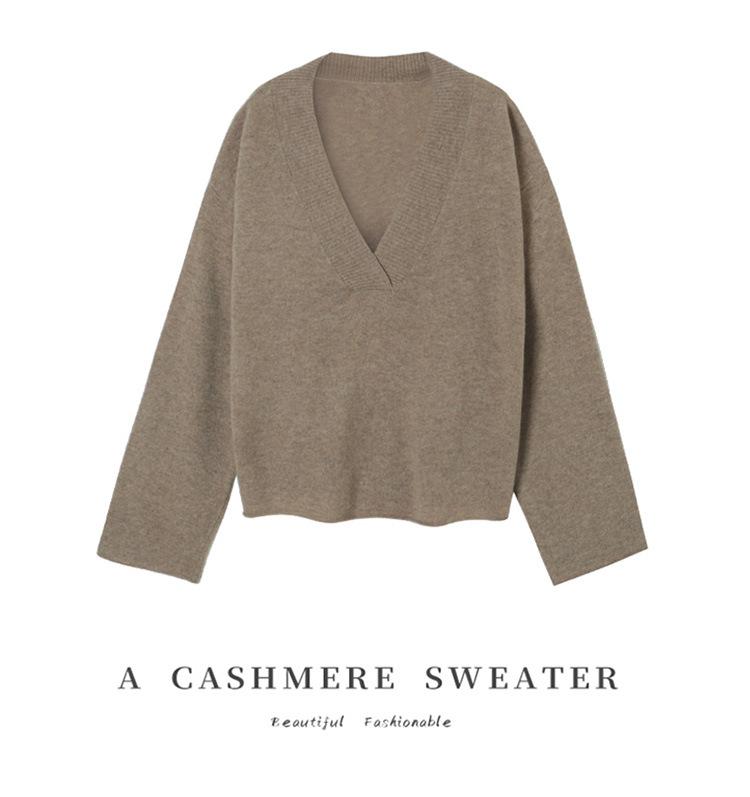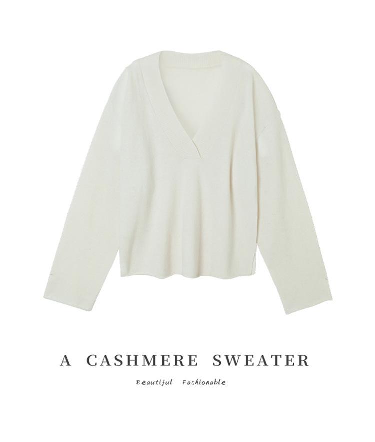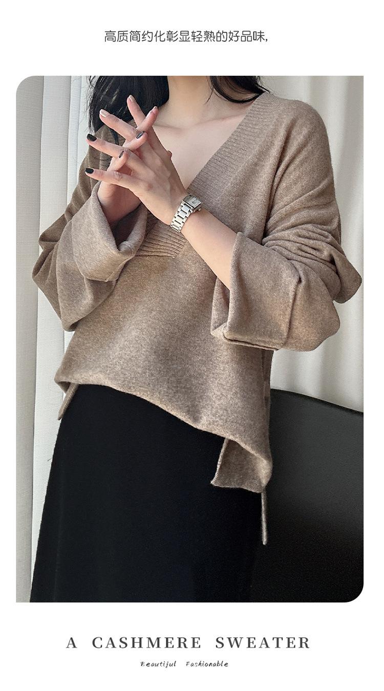 Top coreano holgado de lana 100% pura con cuello en V para mujer, 24 nuevos tops de punto de lana de invierno de alta gama apilados