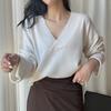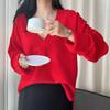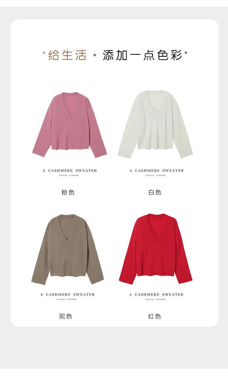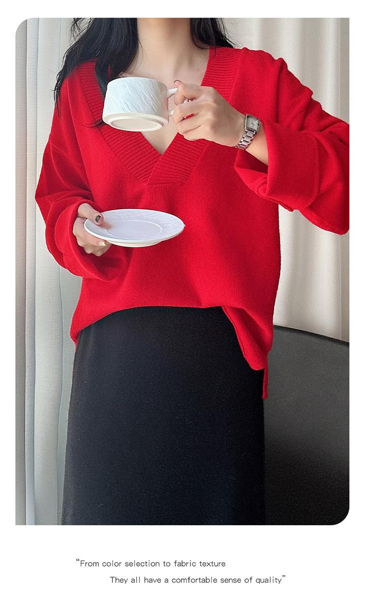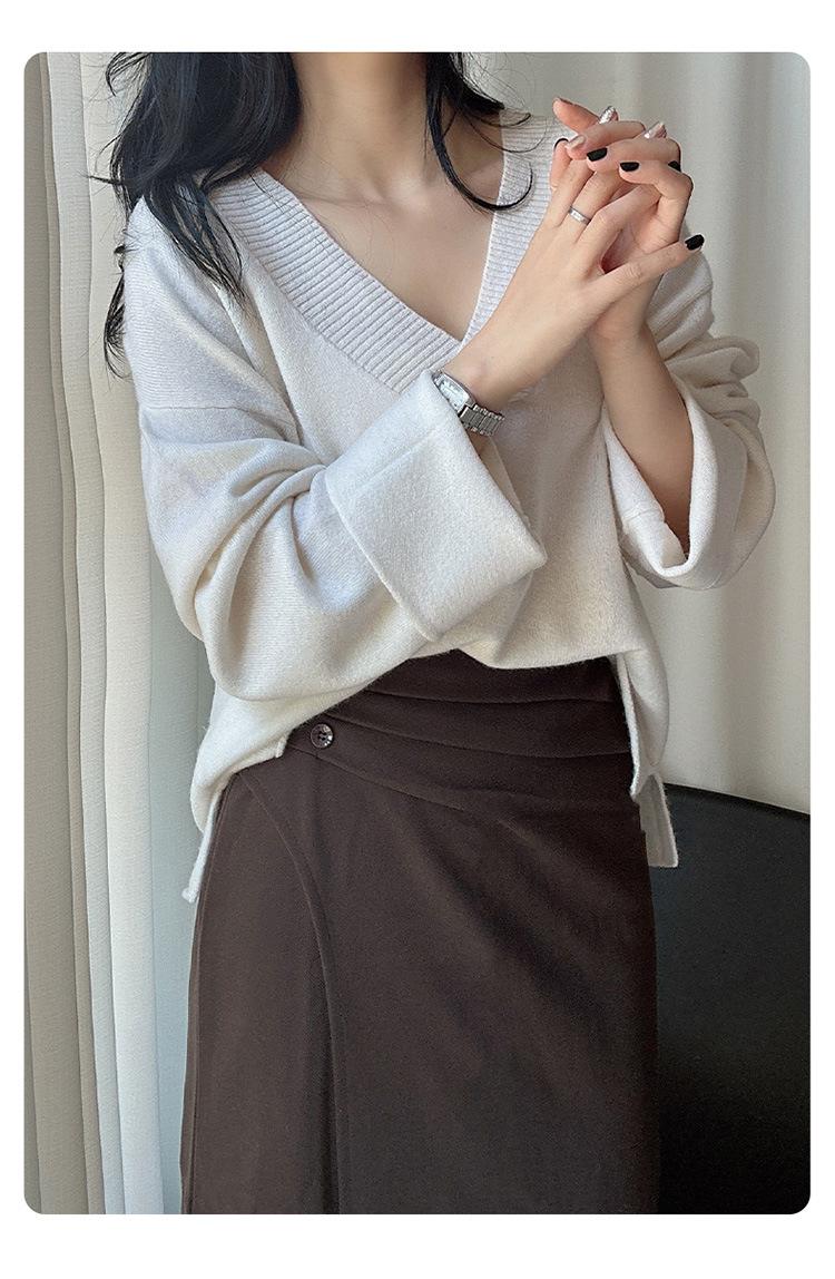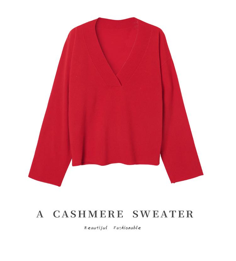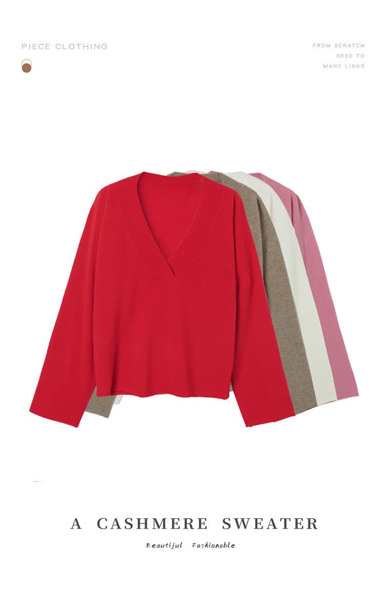Top coreano holgado de lana 100% pura con cuello en V para mujer, 24 nuevos tops de punto de lana de invierno de alta gama apilados