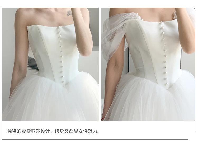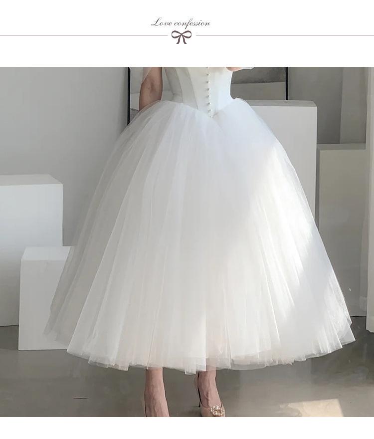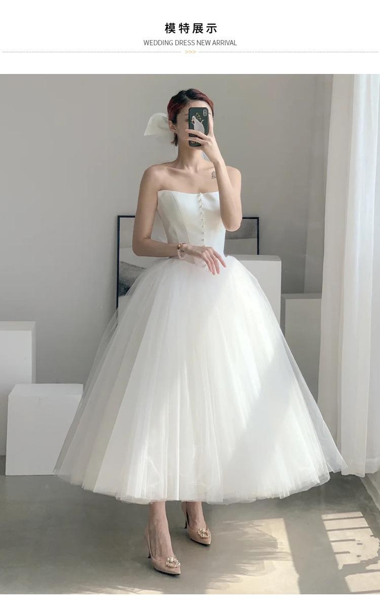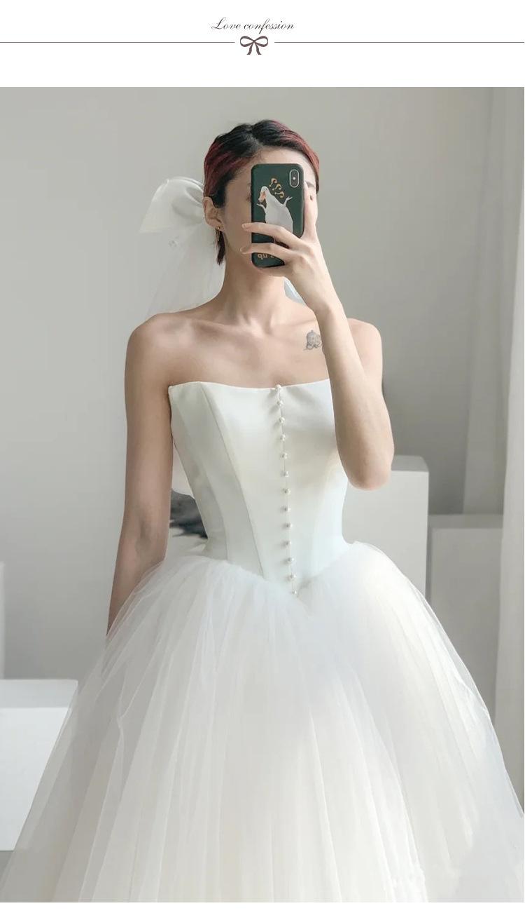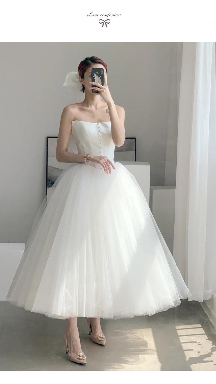 Vestido de Novia Ligero Estilo Francés 2025 Otoño e Invierno Nuevo Modelo Blanco Sencillo Elegante Strapless Petite Graduación Pomposo Vestido para Salir