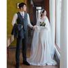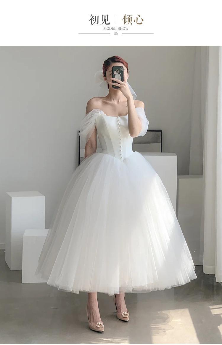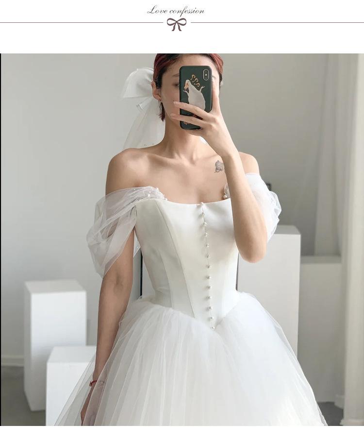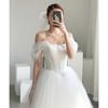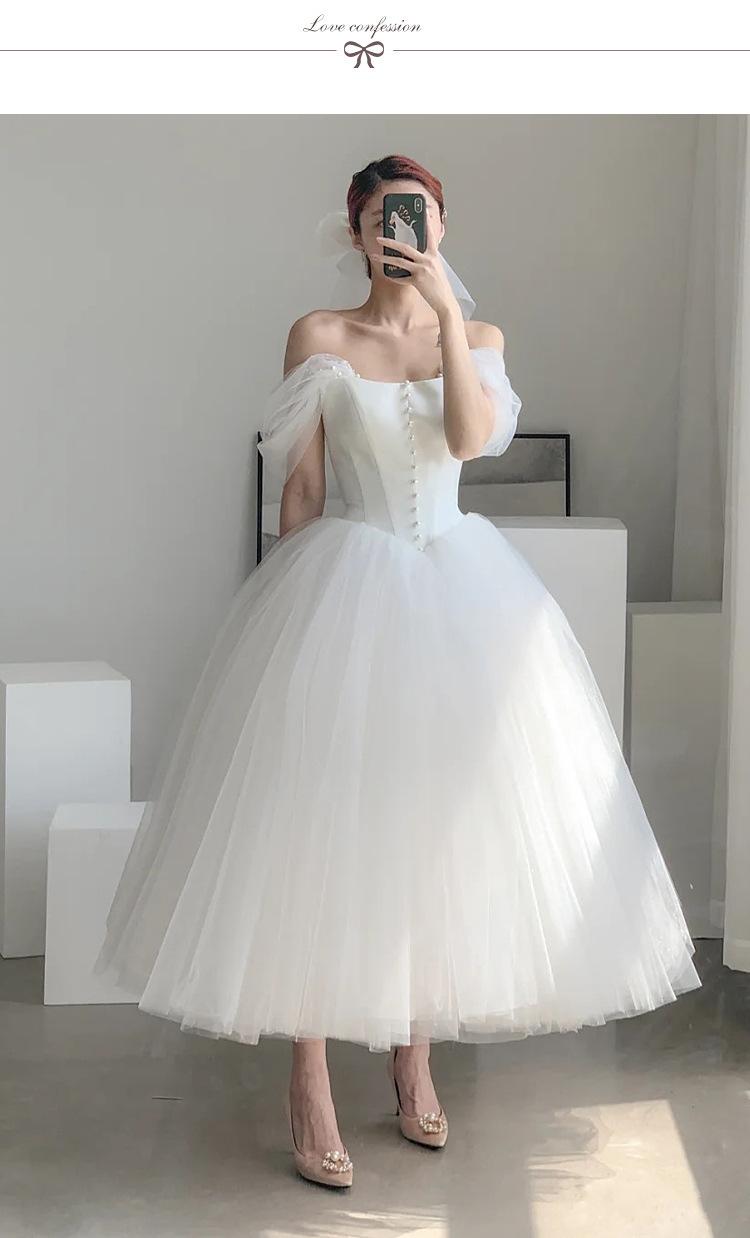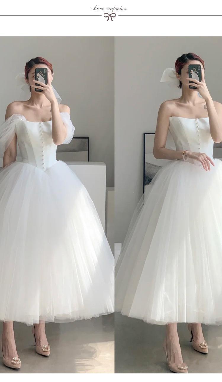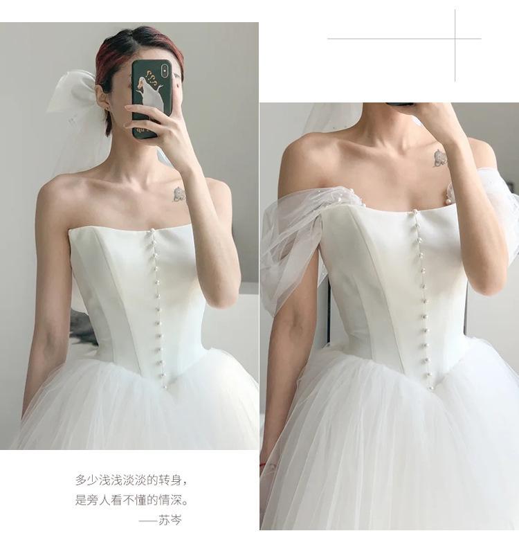 Vestido de Novia Ligero Estilo Francés 2025 Otoño e Invierno Nuevo Modelo Blanco Sencillo Elegante Strapless Petite Graduación Pomposo Vestido para Salir