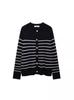 Camisa de punto de un solo pecho con cuello redondo para mujer, estilo europeo y americano, moda urbana informal a rayas, otoño 2024