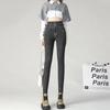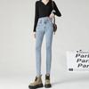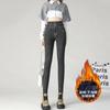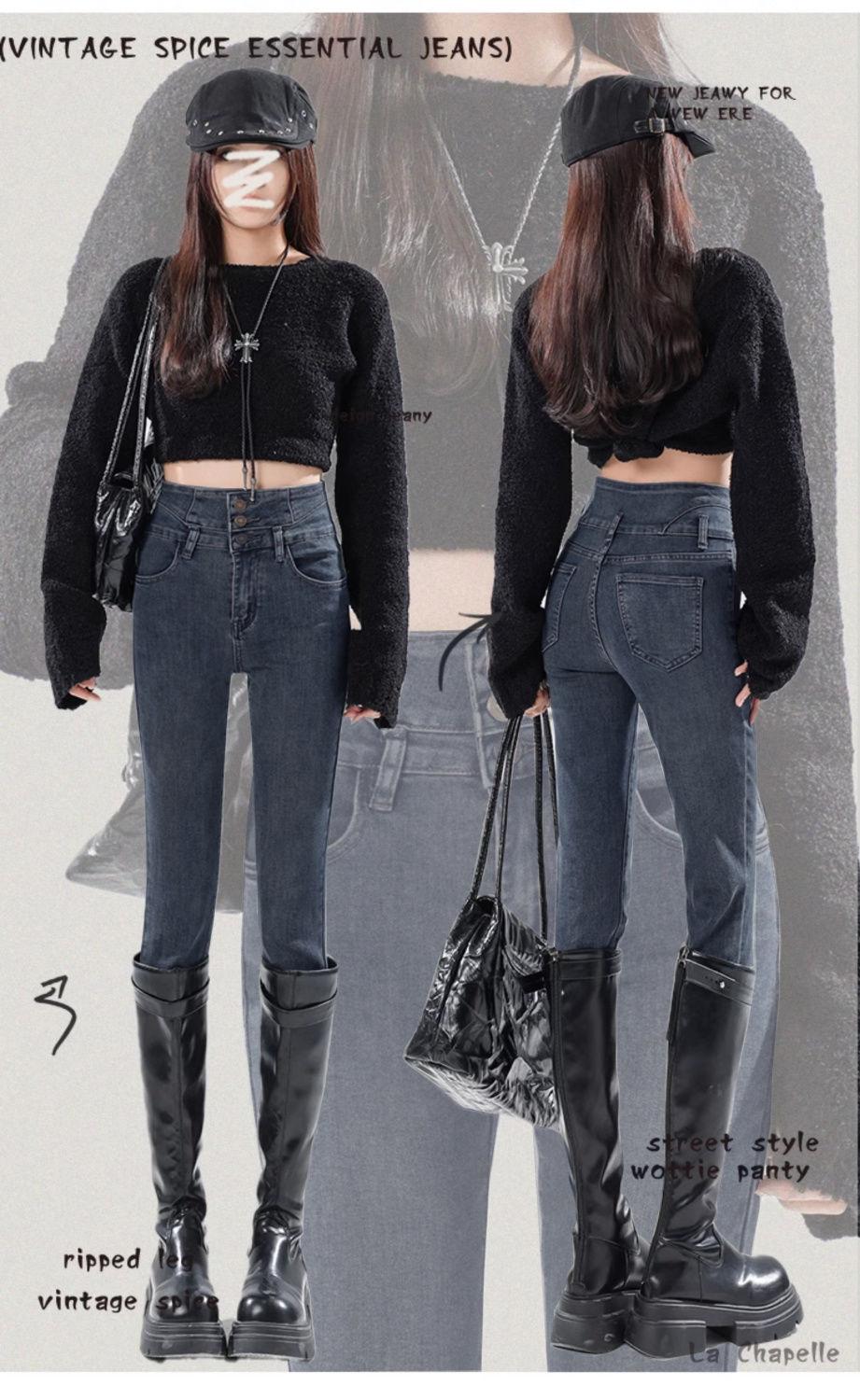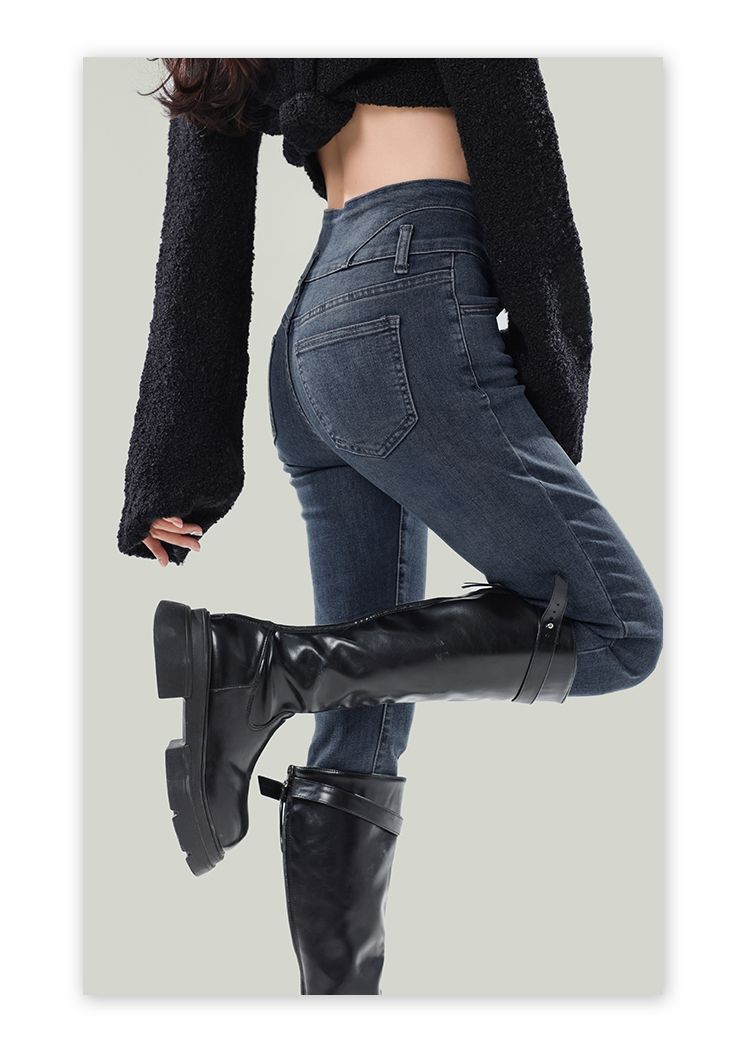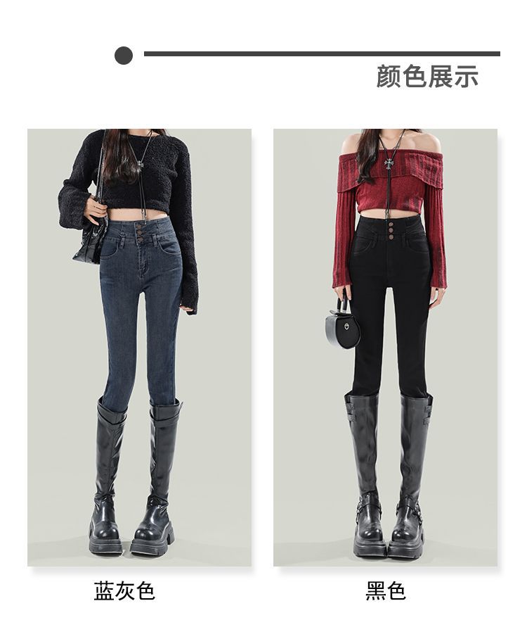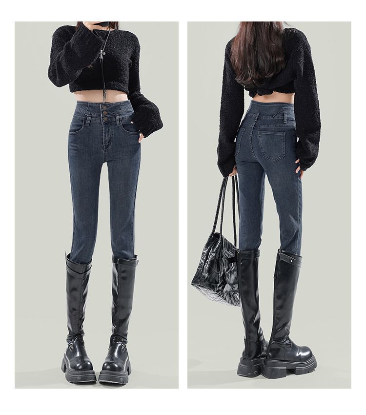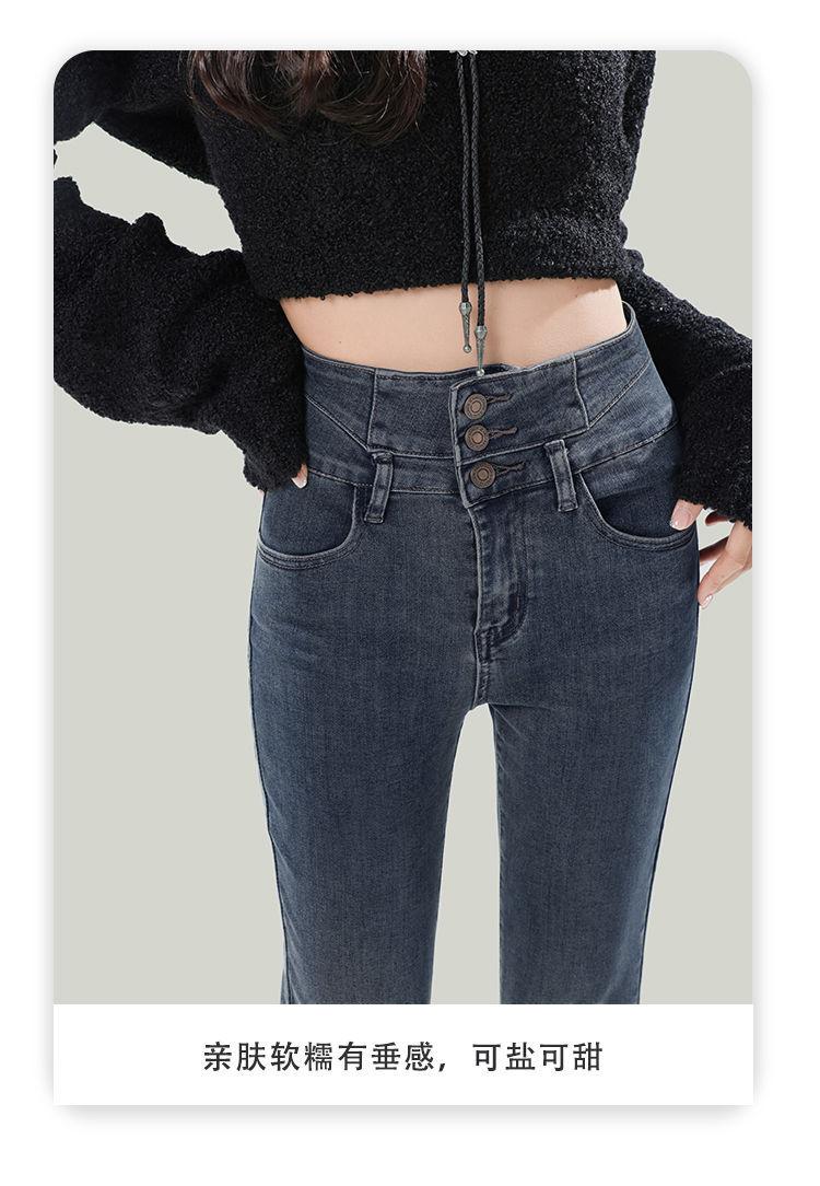 Pantalones vaqueros ajustados con forro polar para mujer, otoño e invierno 2024, nuevos pantalones ajustados de cintura alta, pequeños, retro, para primavera y otoño.