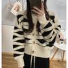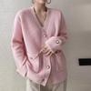 Suéter cárdigan estilo europeo para mujer, chaqueta de punto elegante con cuello en V y diseño holgado, estilo coreano, para otoño e invierno
