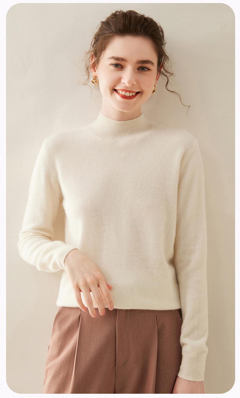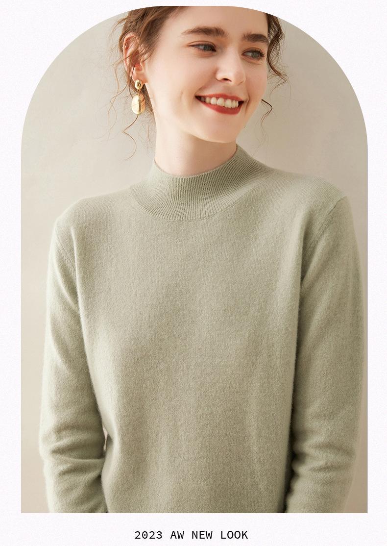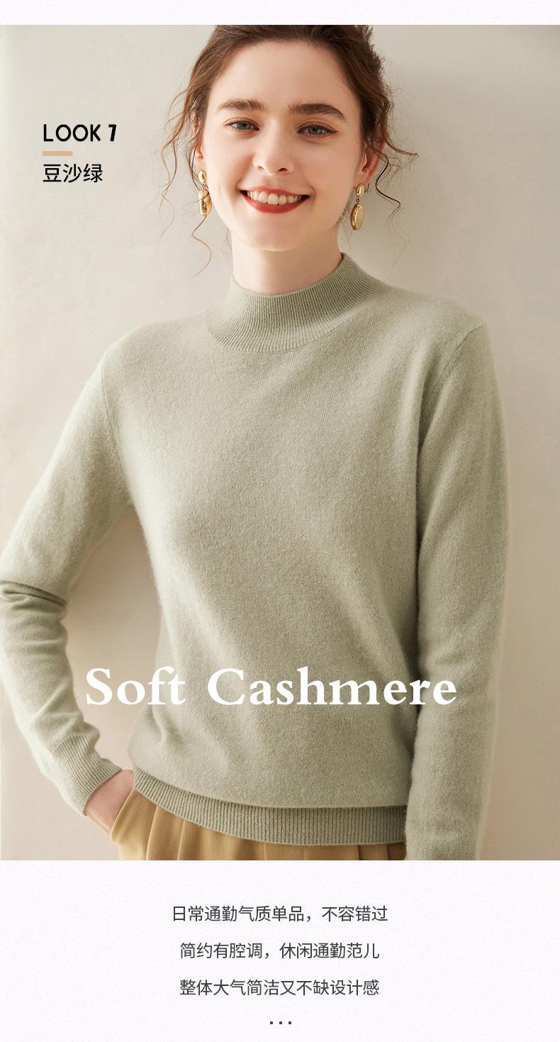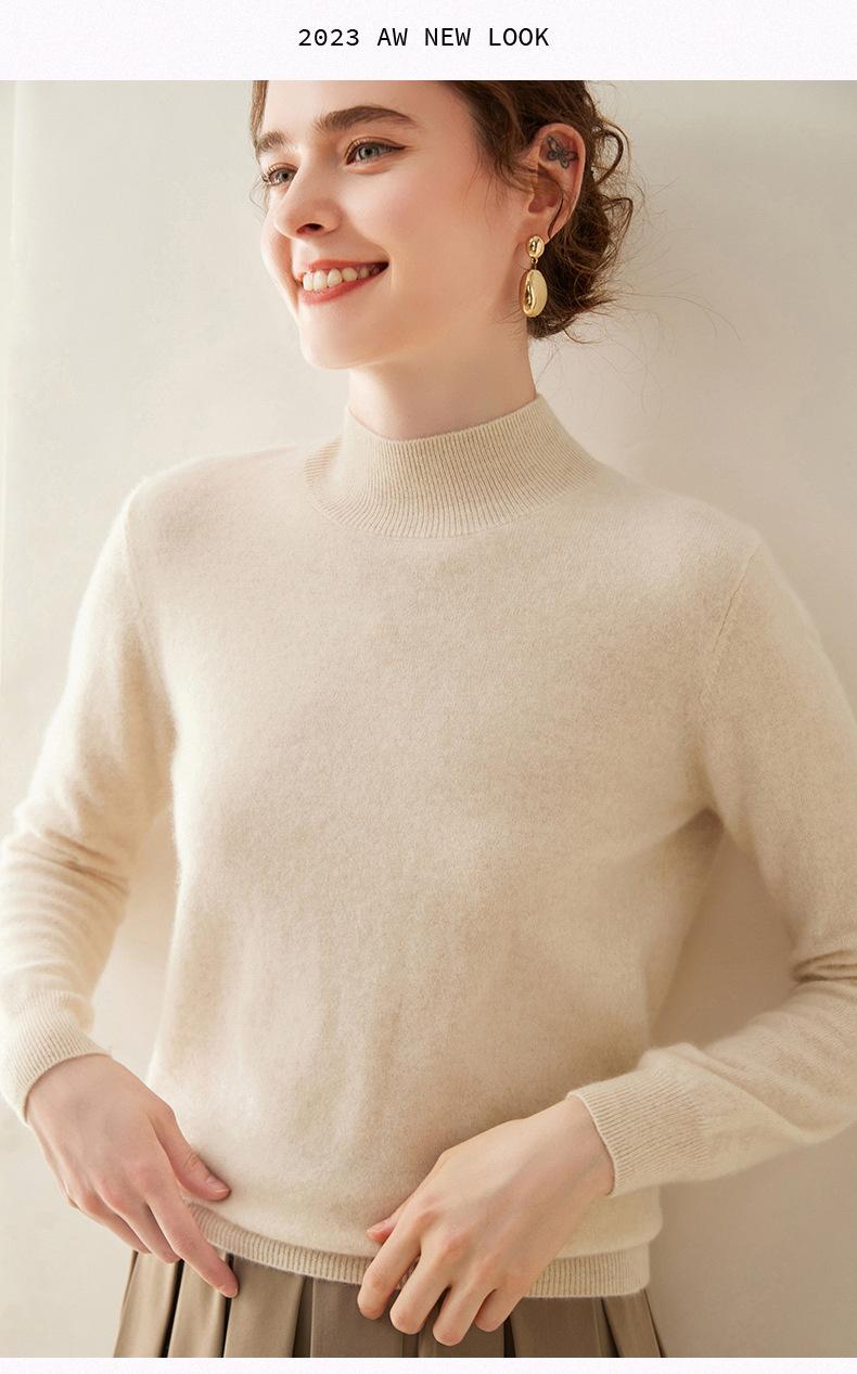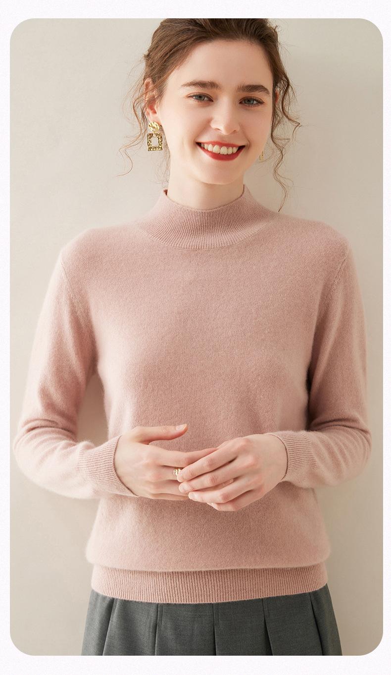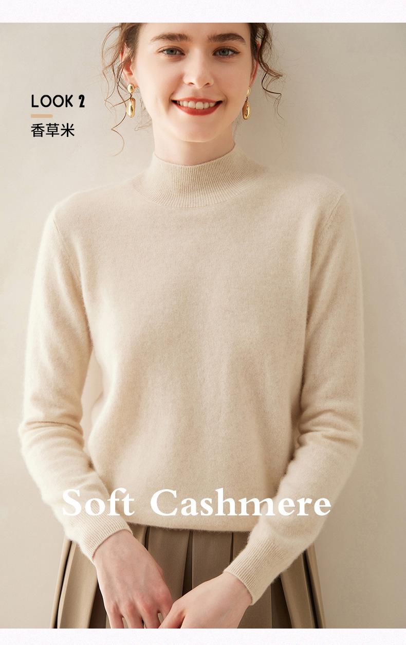 Suéter de cachemira de cuello medio alto para mujer, nuevo, suelto, corto, de color sólido, combinable con todo, cálido, de punto, para otoño e invierno.