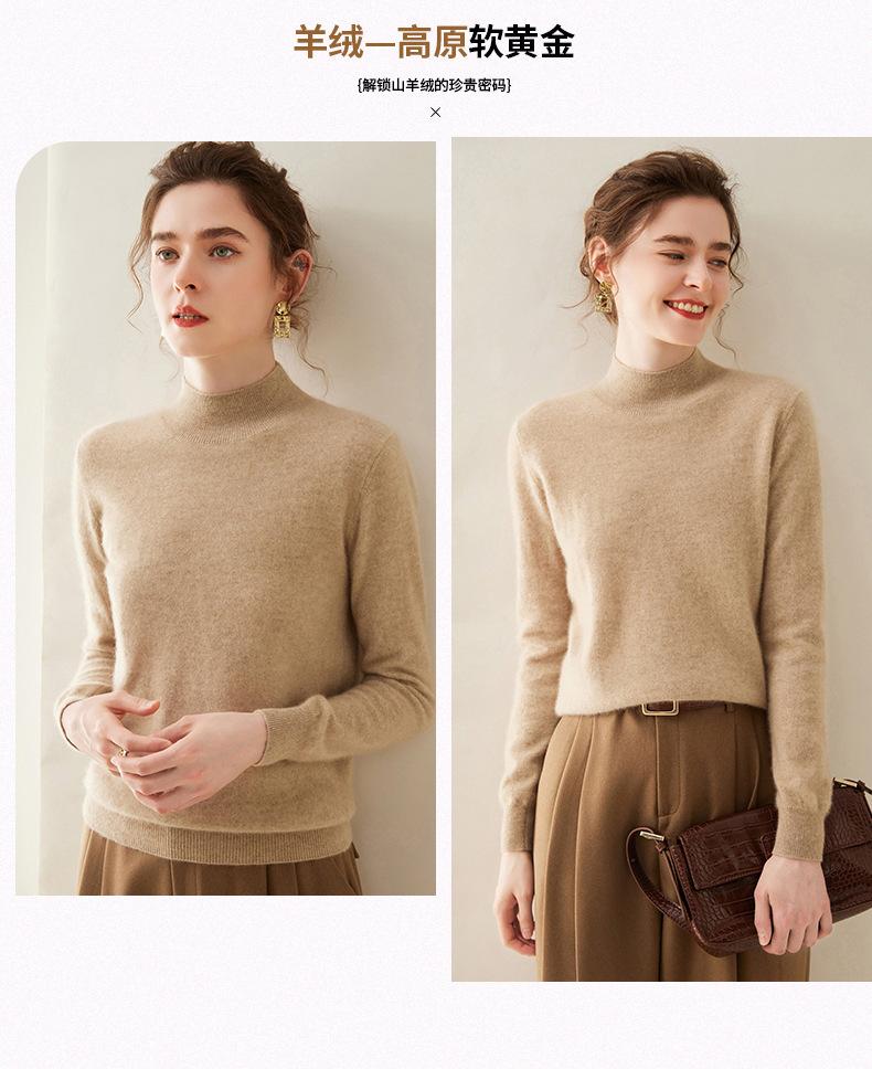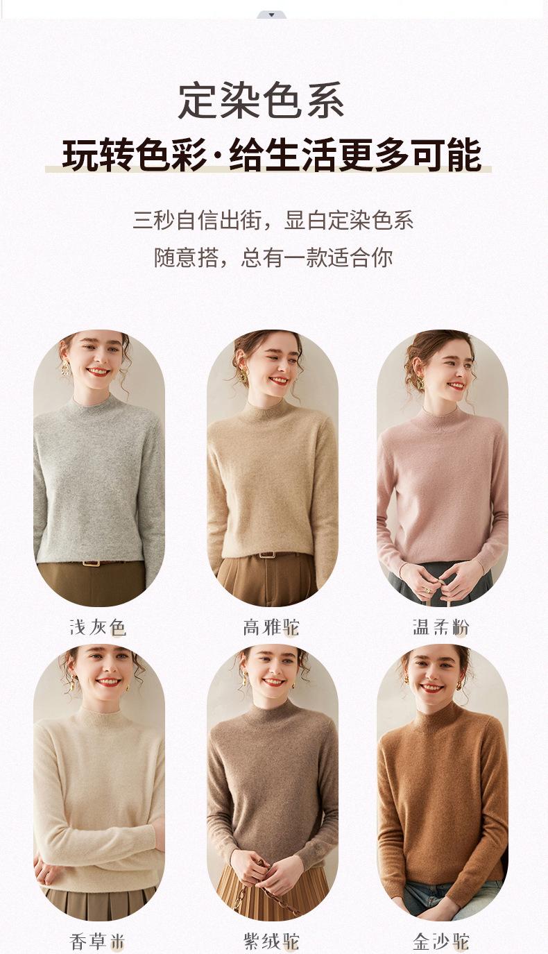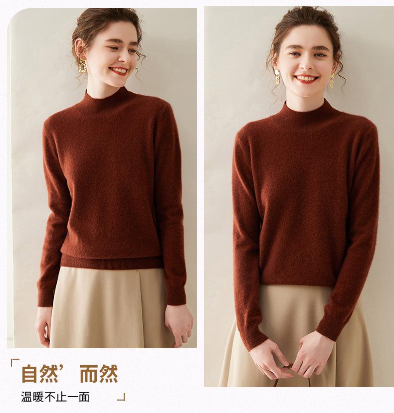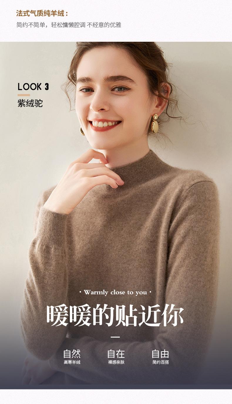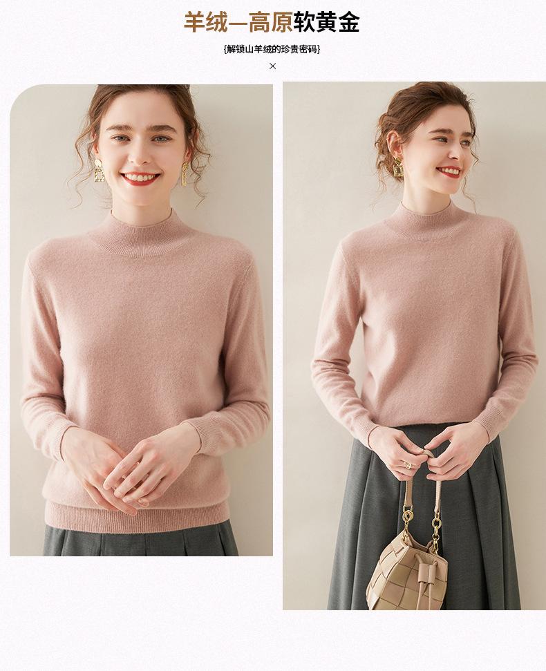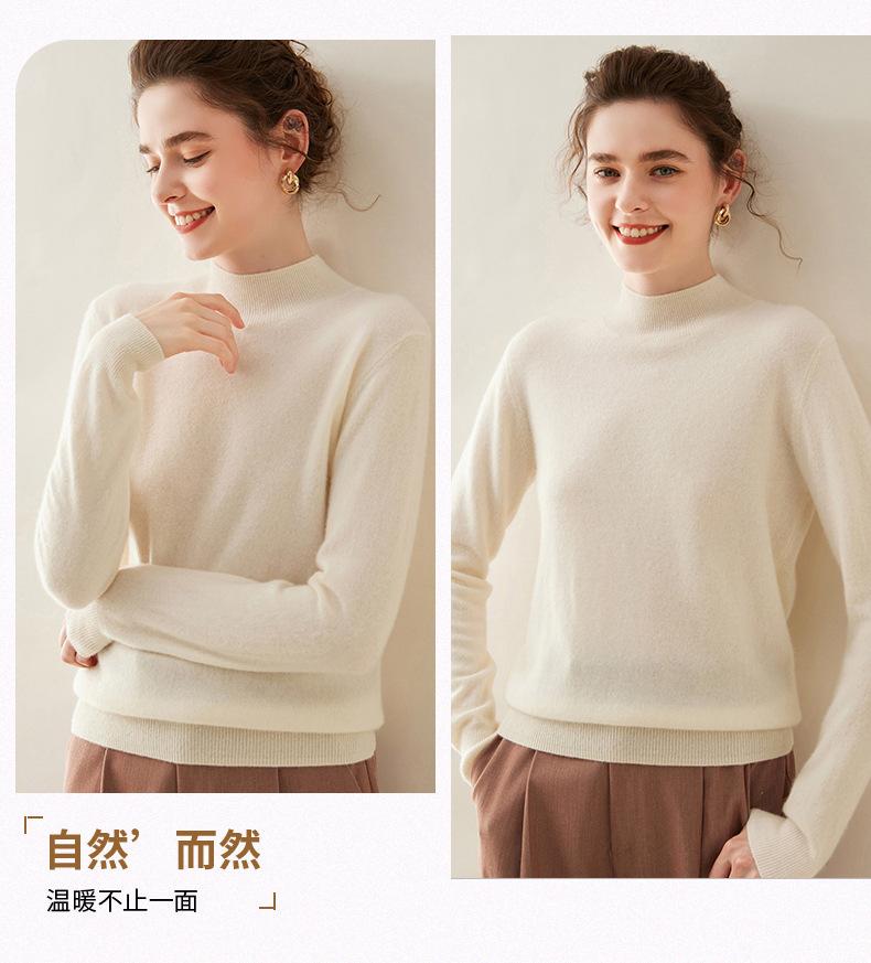 Suéter de cachemira de cuello medio alto para mujer, nuevo, suelto, corto, de color sólido, combinable con todo, cálido, de punto, para otoño e invierno.