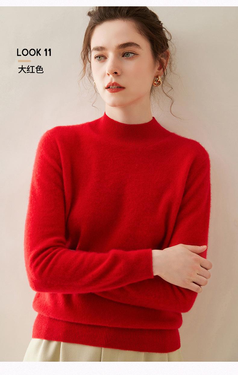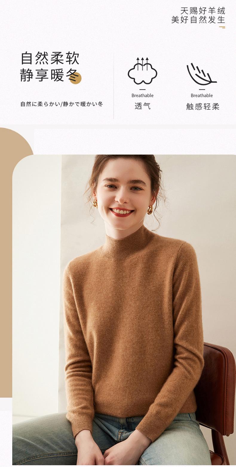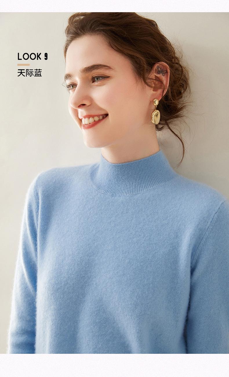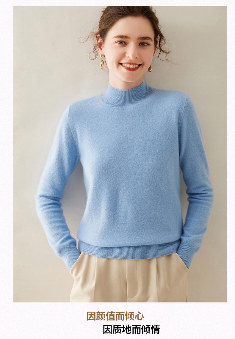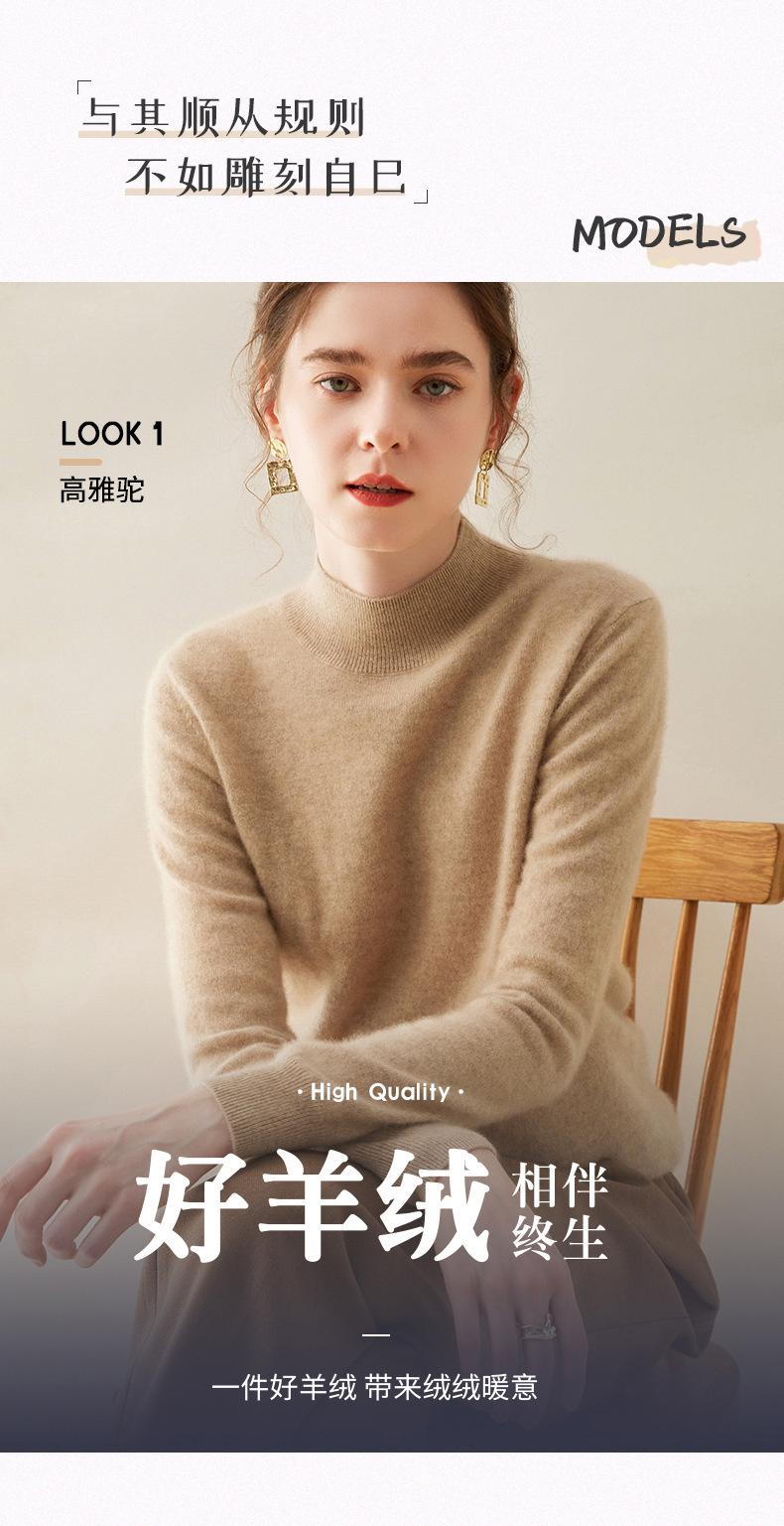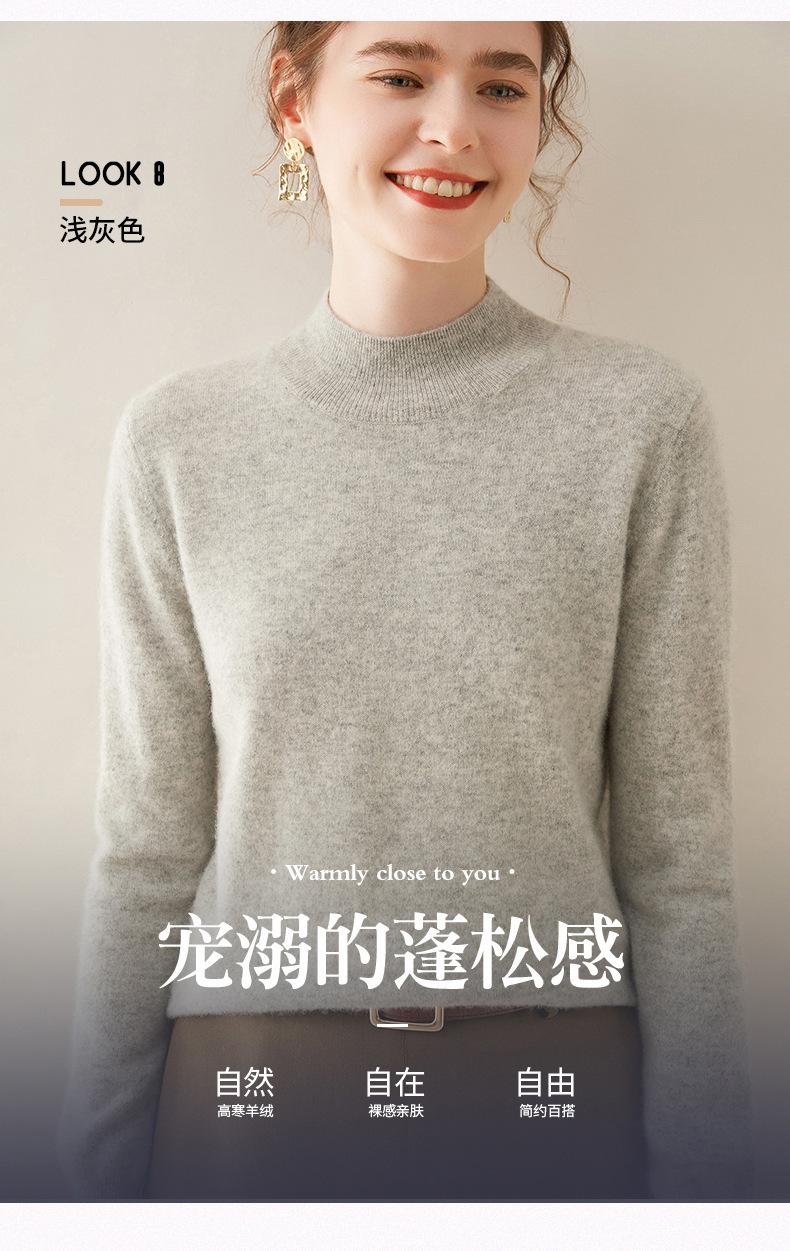 Suéter de cachemira de cuello medio alto para mujer, nuevo, suelto, corto, de color sólido, combinable con todo, cálido, de punto, para otoño e invierno.
