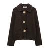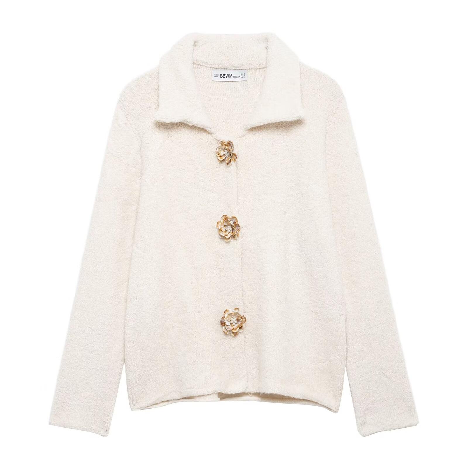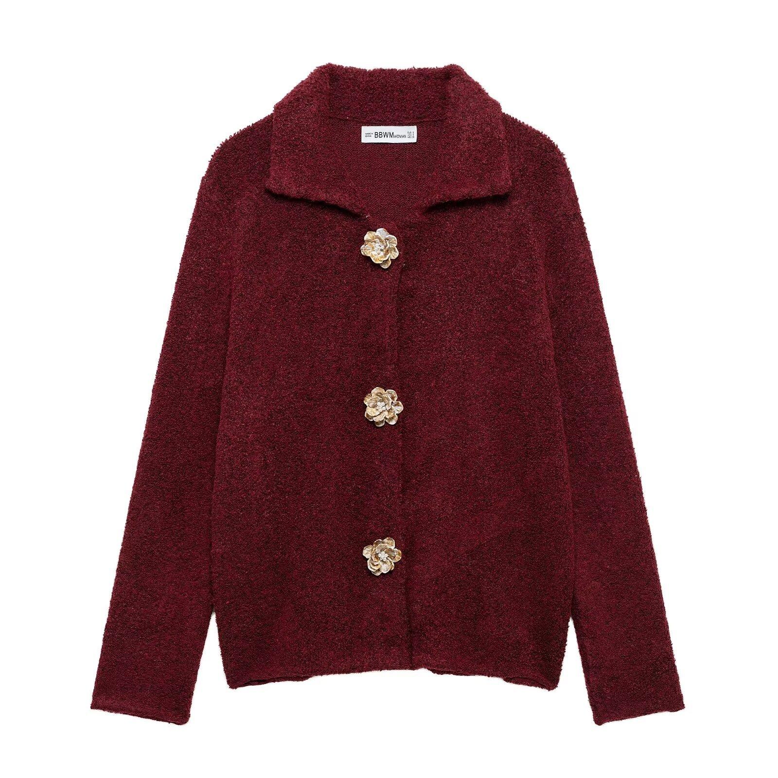 Cárdigan de punto de manga larga con solapa y botones de flores de moda transfronteriza europea y americana, novedad primavera 2025 A35616