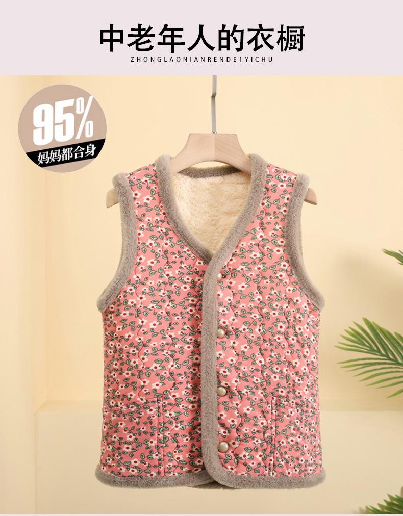 Chaleco Grueso Acolchado con Forro Polar de Otoño e Invierno para Mamá Abrigo de Algodón Floral Abrigo Chaleco Cálido de Abuela Chaleco para Mujer de Mediana Edad para Uso Exterior