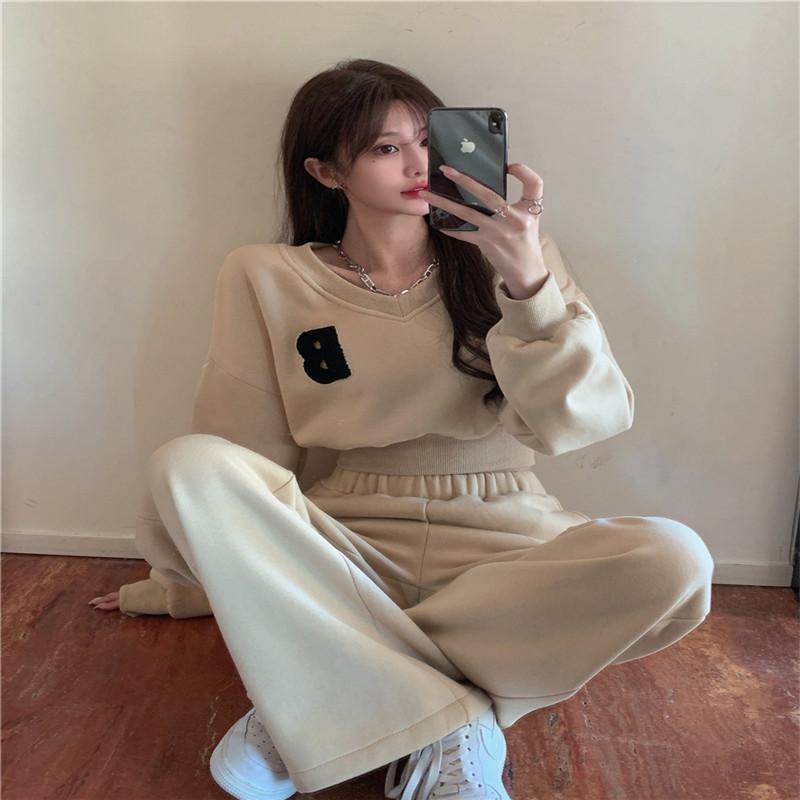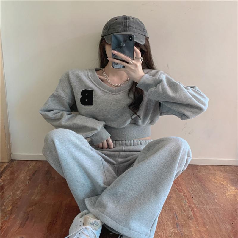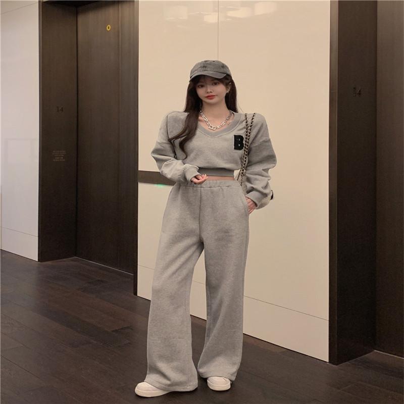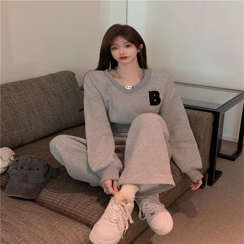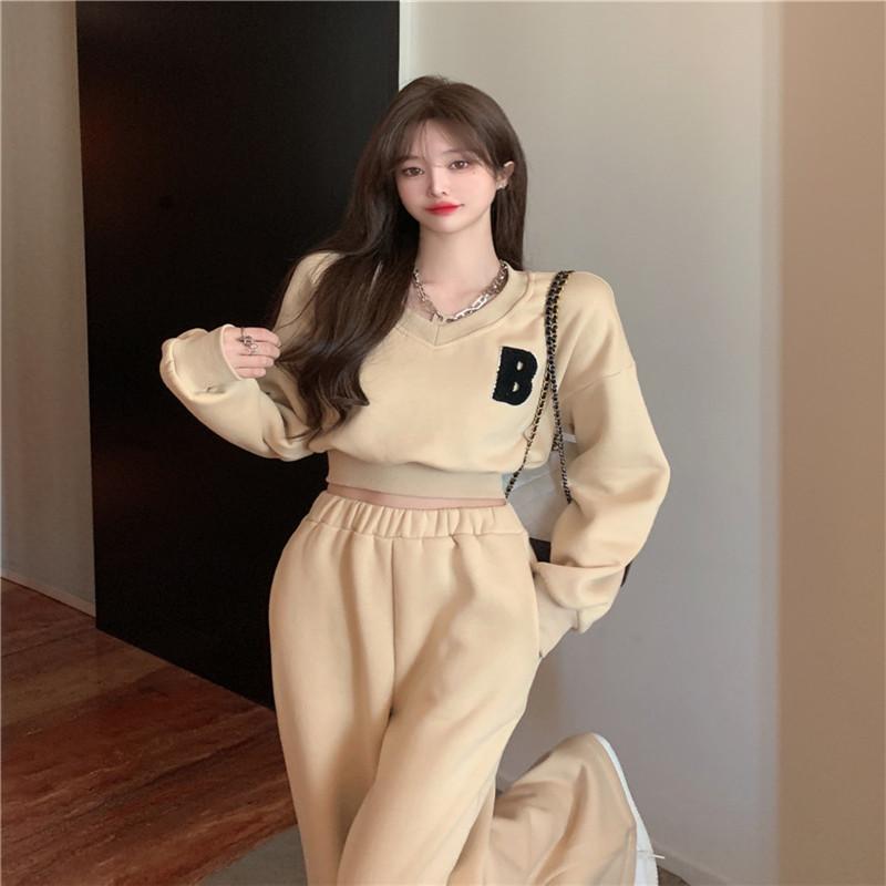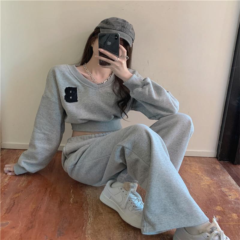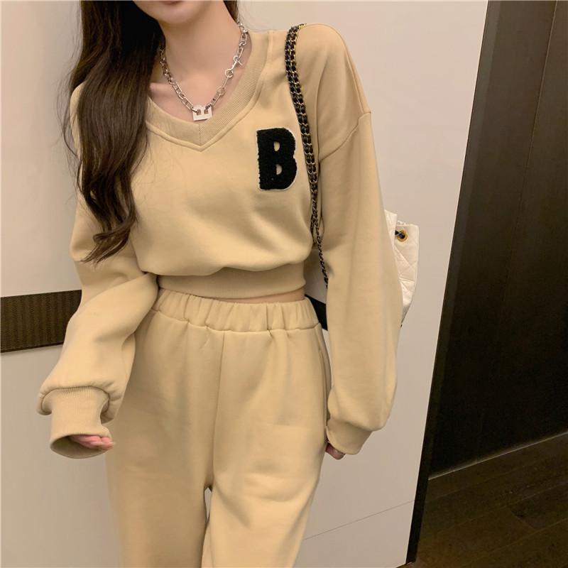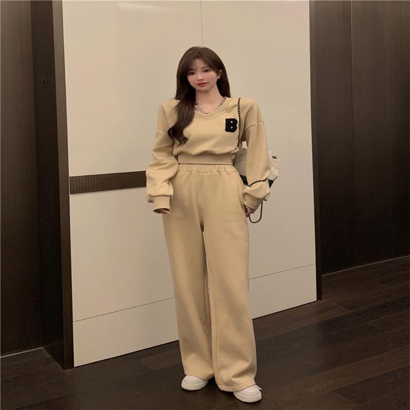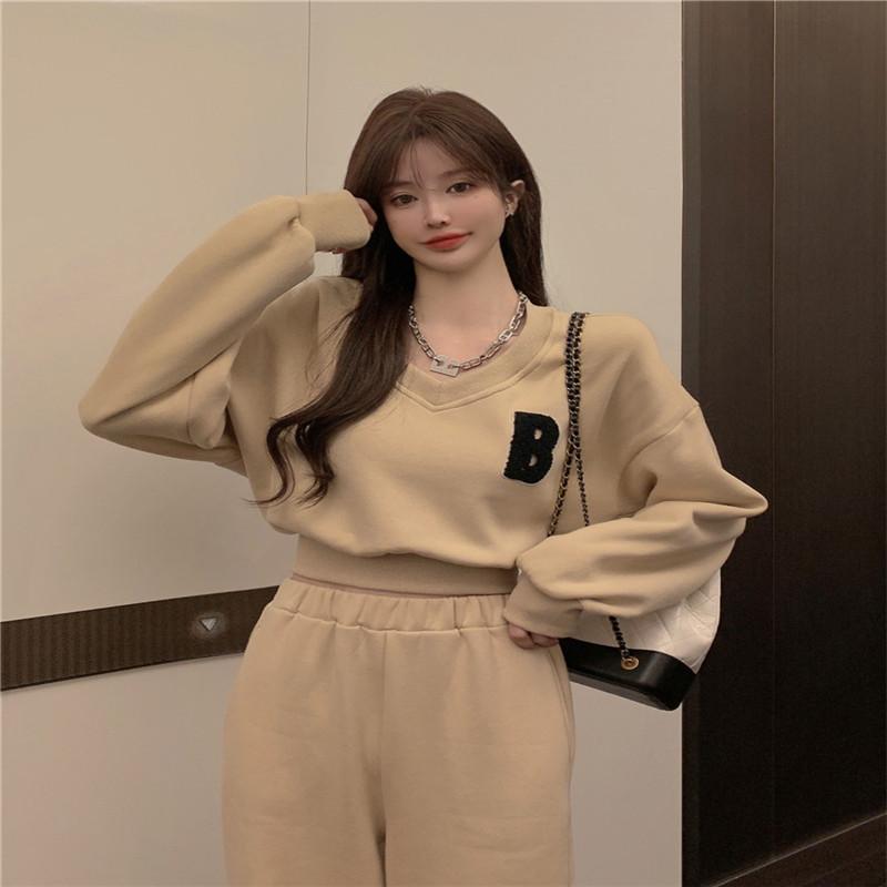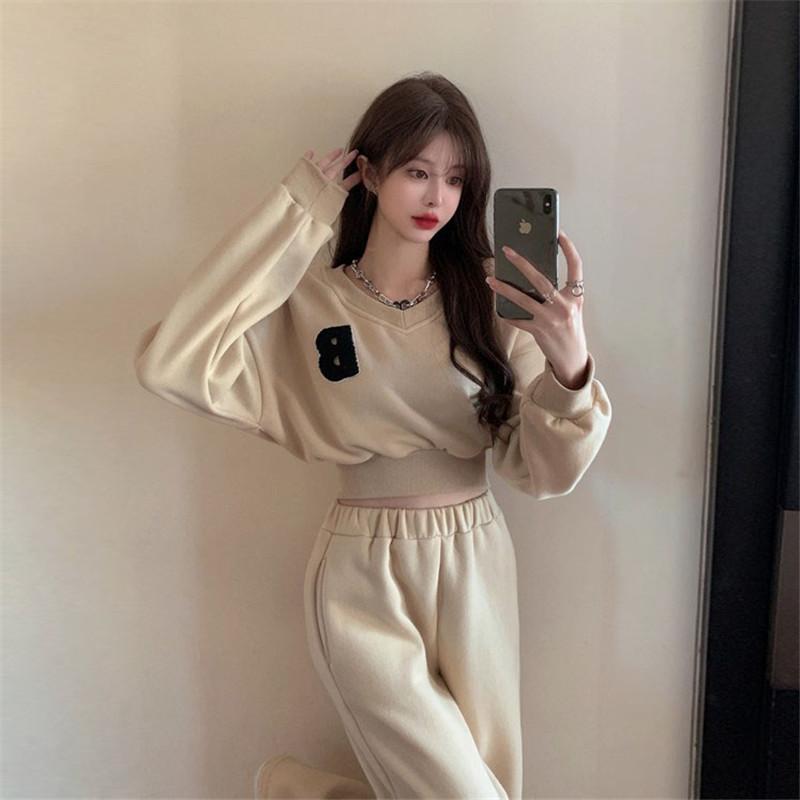 Conjunto de dos piezas de estilo coreano, informal, a la moda, holgado, con escote en V y letra B, corto, elástico y de cintura alta.