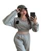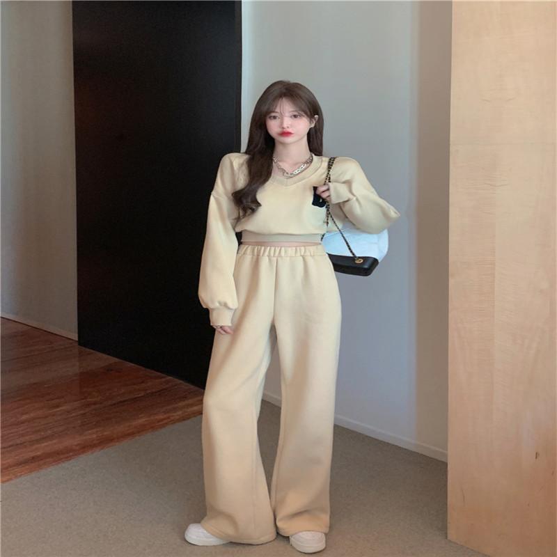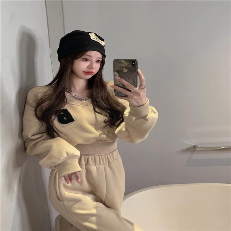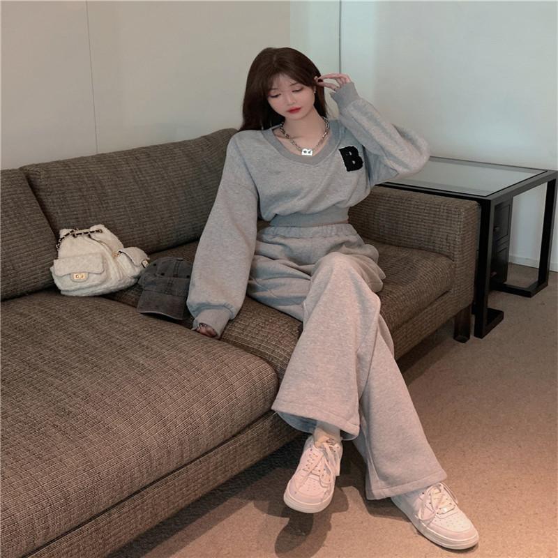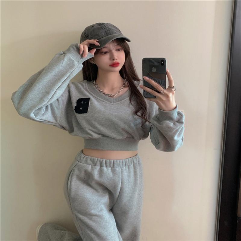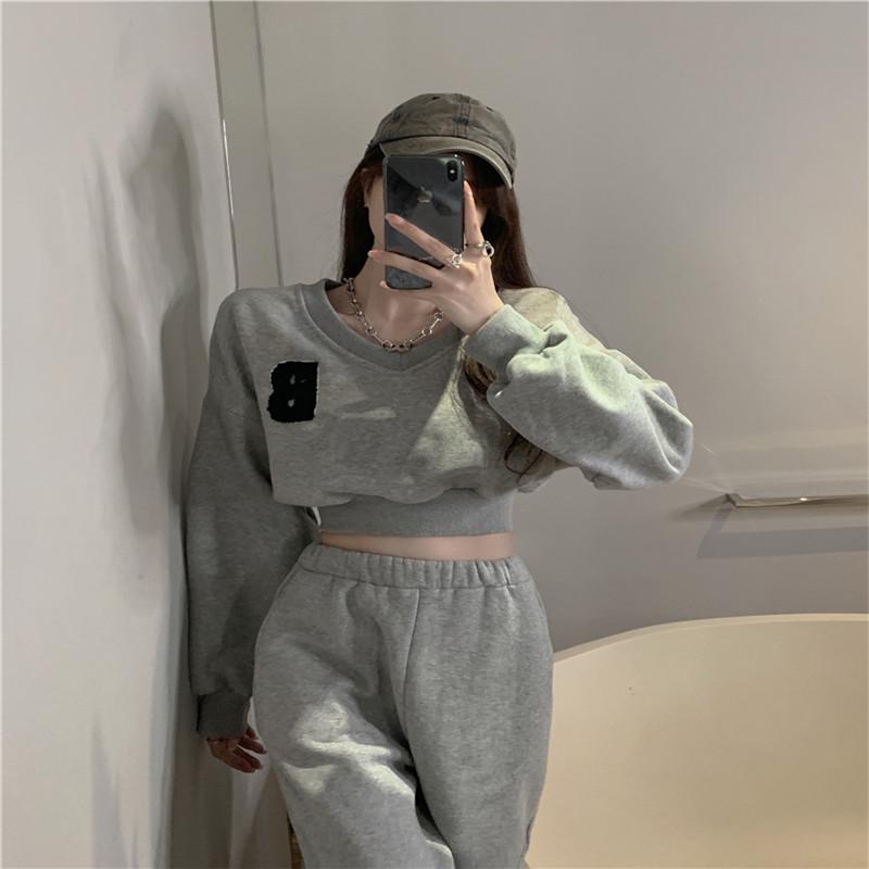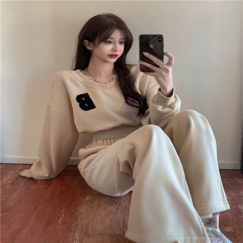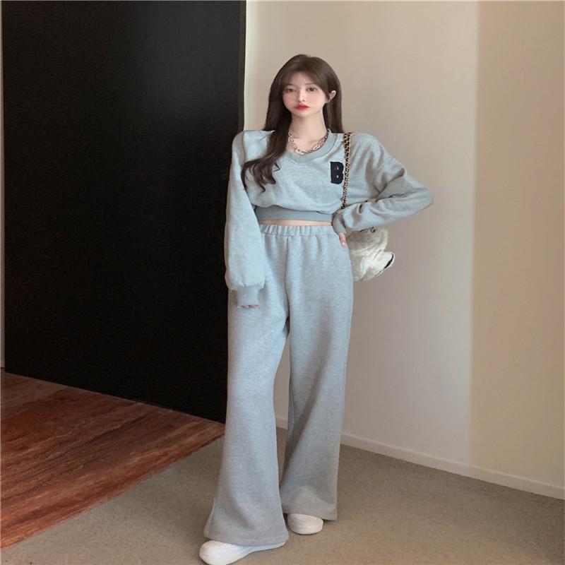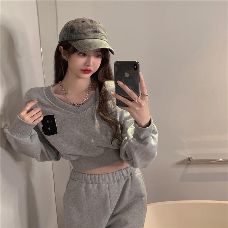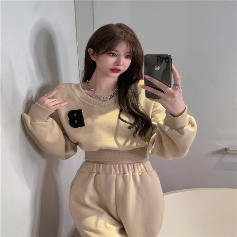 Conjunto de dos piezas de estilo coreano, informal, a la moda, holgado, con escote en V y letra B, corto, elástico y de cintura alta.