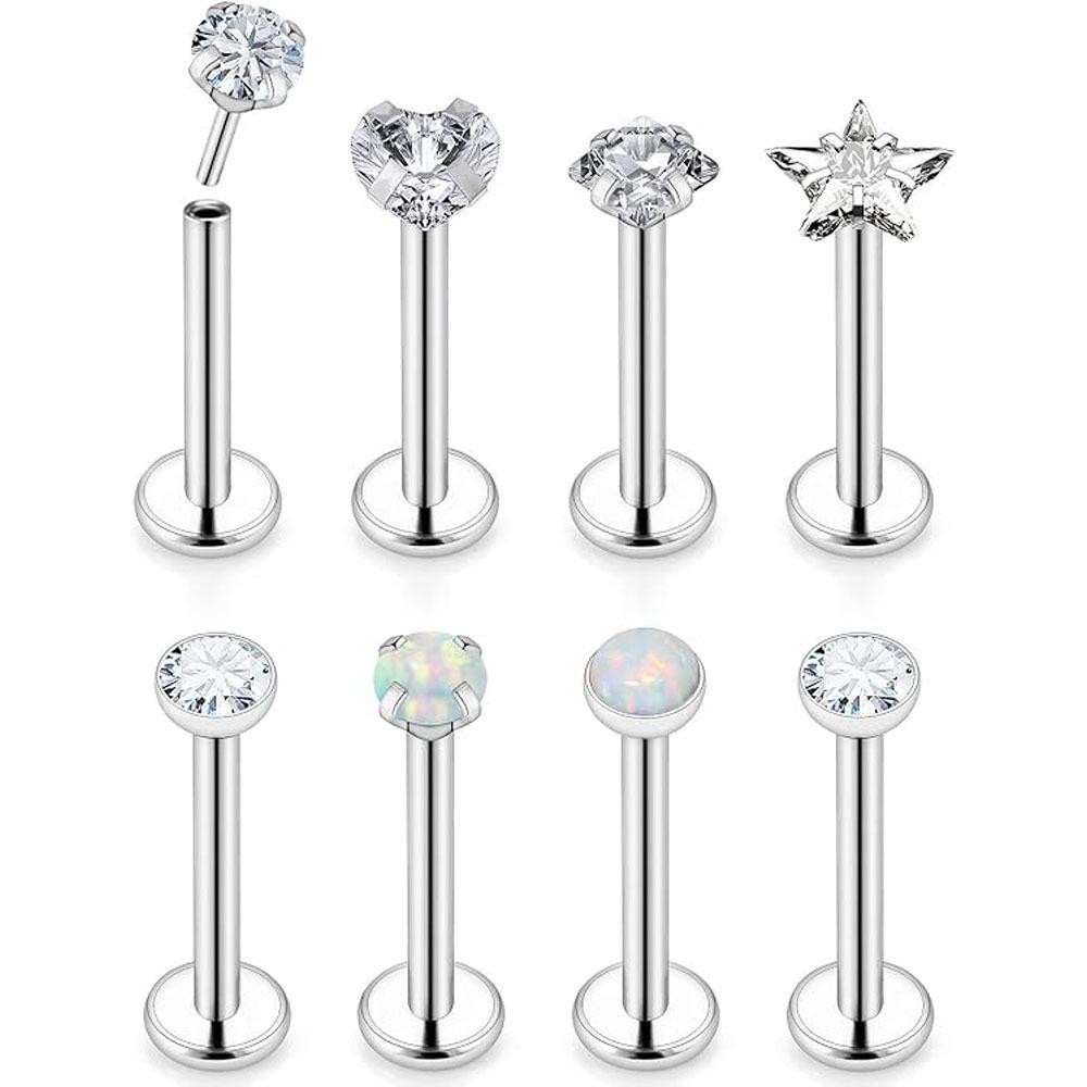 8 piezas transfronterizas de acero inoxidable para labio, studs con incrustación de circonita de diamante, barra roscada, joyería para piercing, traje combinado Amazon temu
