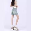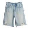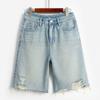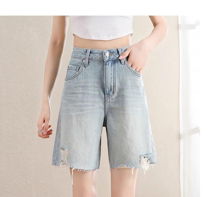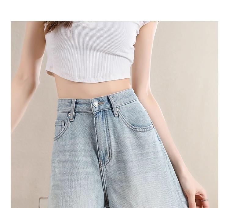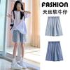 Pantalones cortos vaqueros Tencel azul claro para mujer, novedad de verano 2024, cintura alta, sueltos, adelgazantes, casuales, rectos