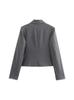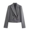 Chaqueta de traje elegante de manga larga con solapa corta y raya diplomática gris de alta gama, estilo europeo y americano, otoño de 2024, para mujer