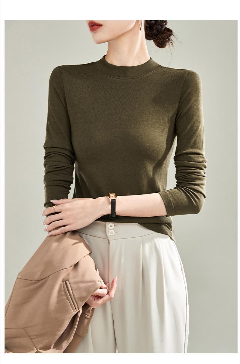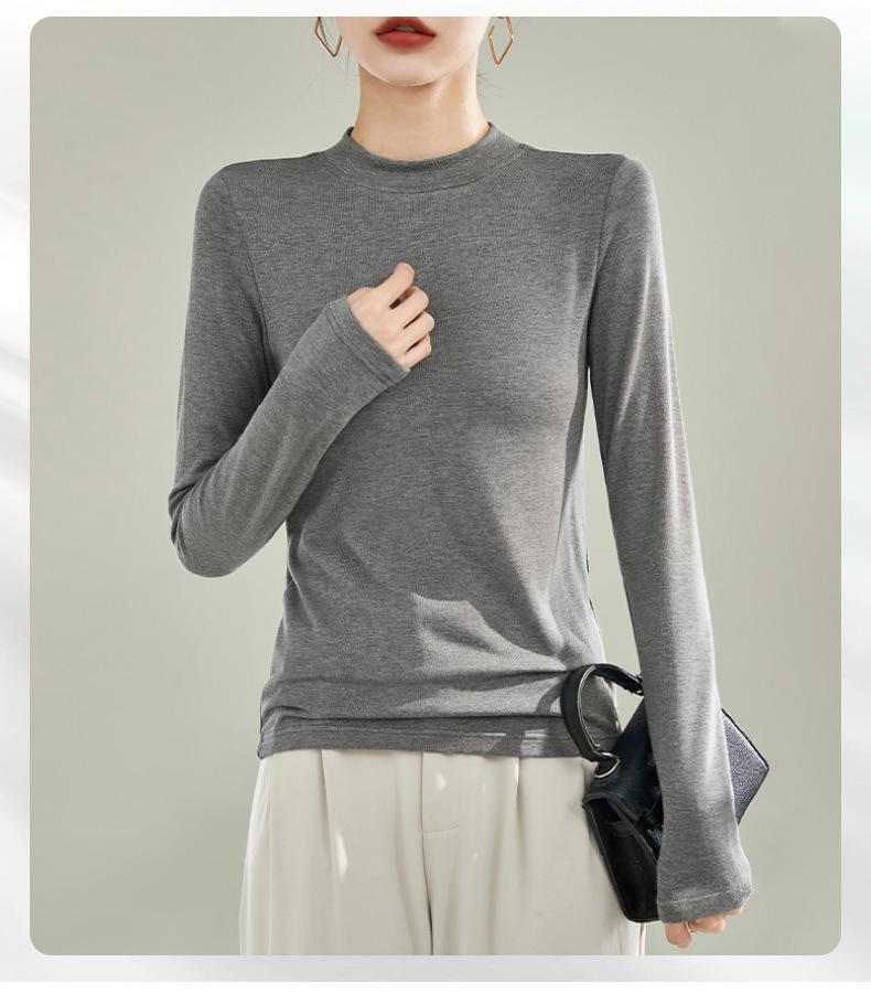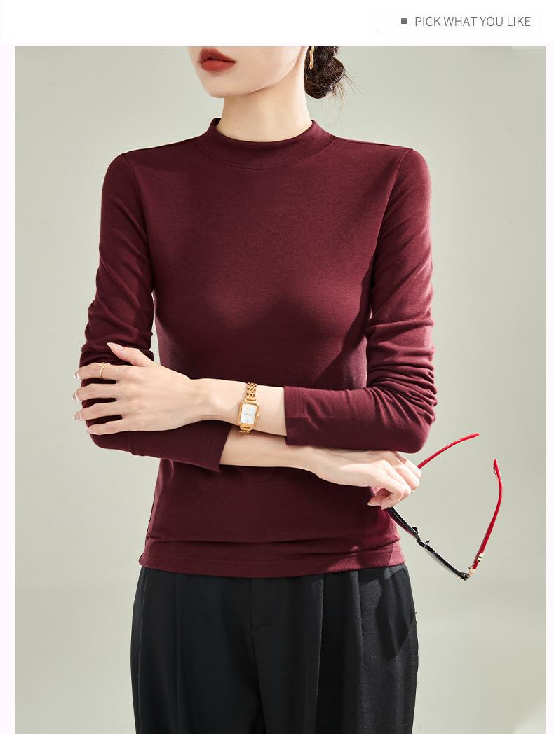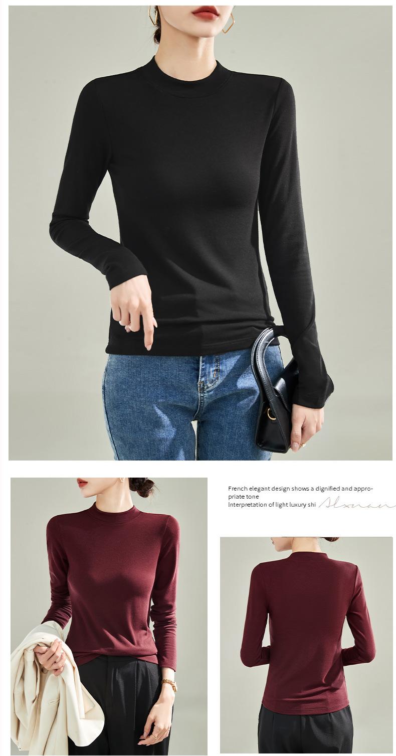 Compra Ancolola Camiseta Base de Terciopelo Rojo Cuello Medio Alto Ropa Interior para Mujer Primavera y Otoño 2025 Nueva Ajustada Alta Elasticidad Cálida Manga Larga al por mayor en Joom.pro