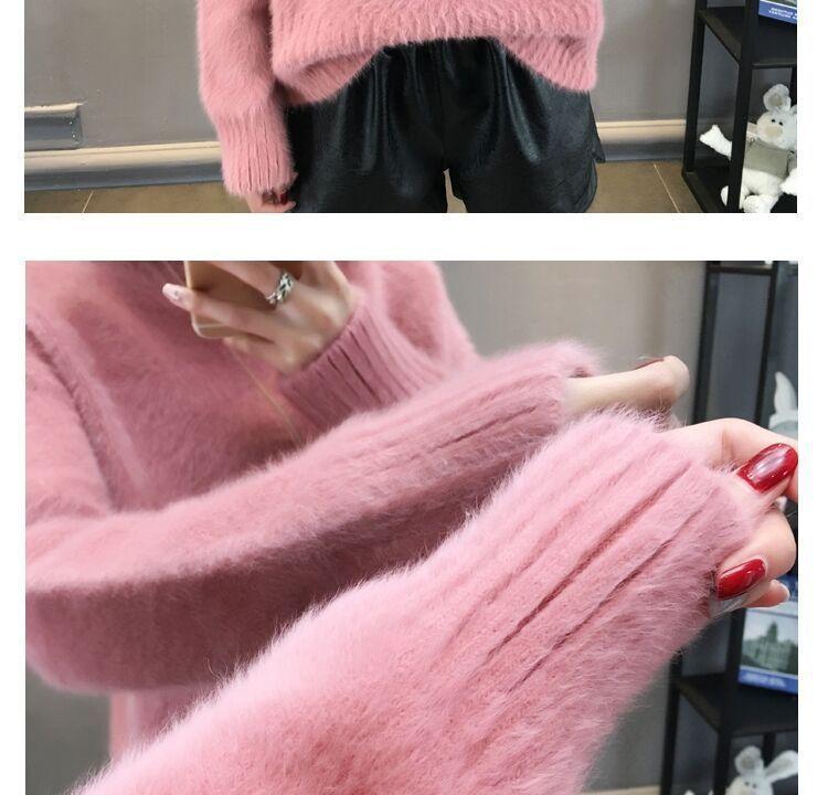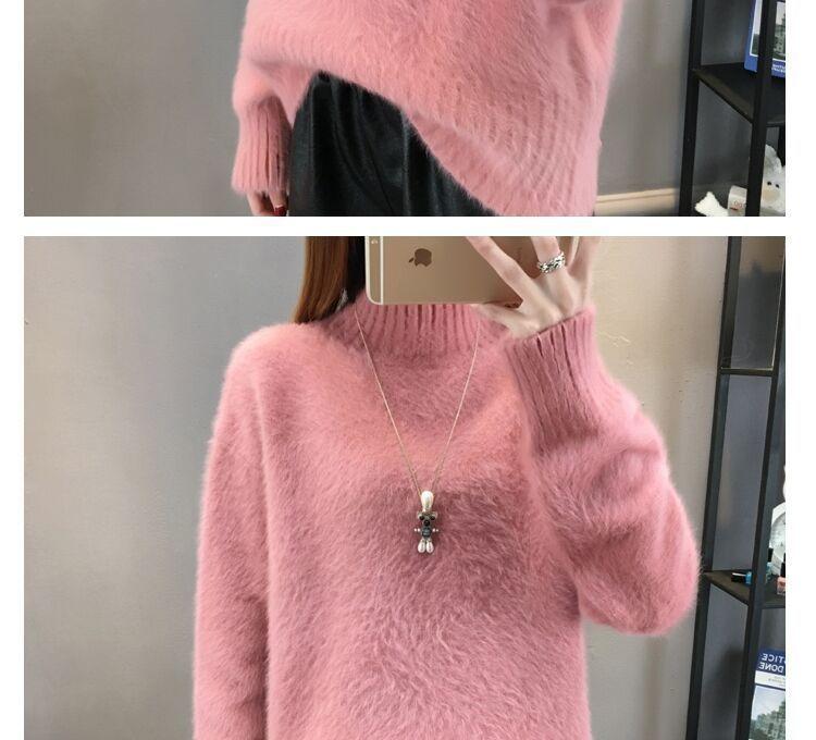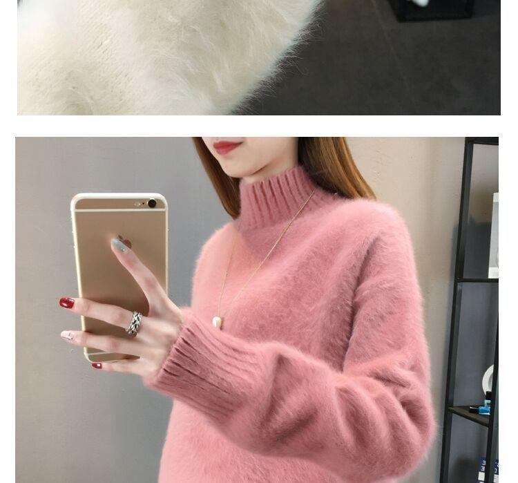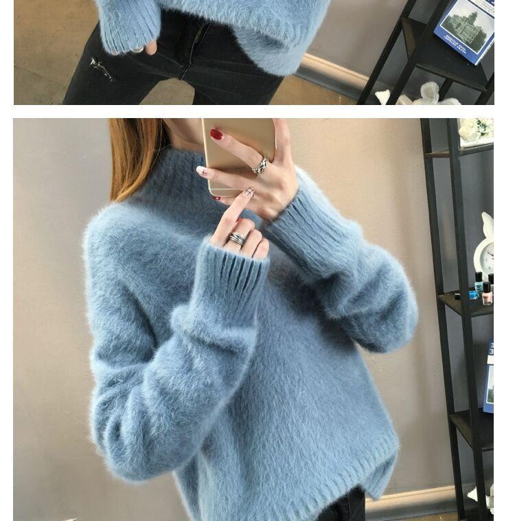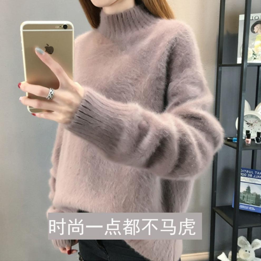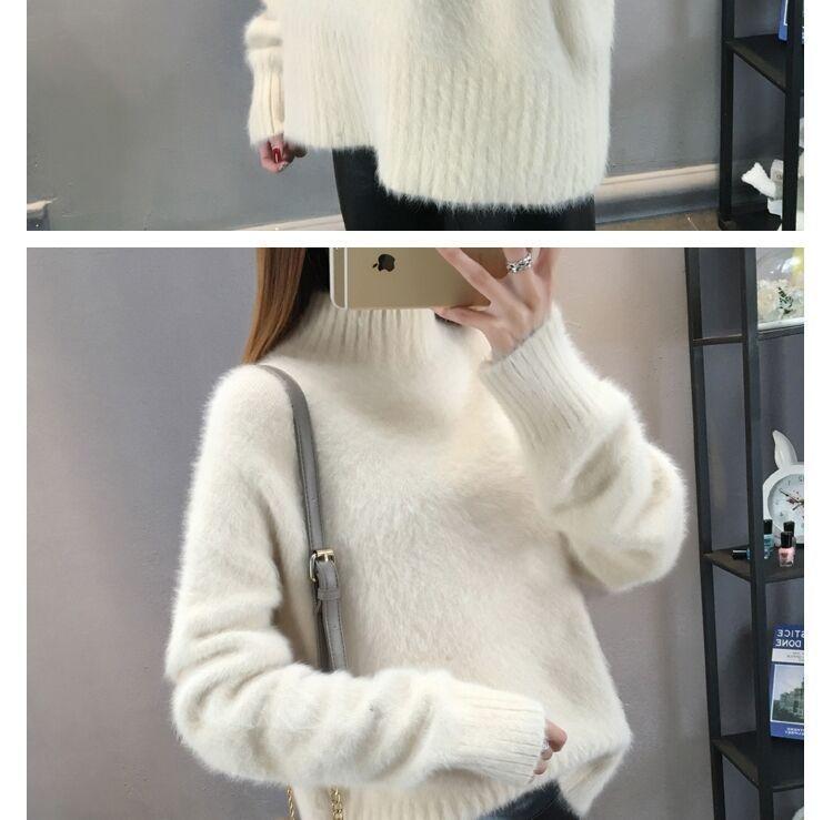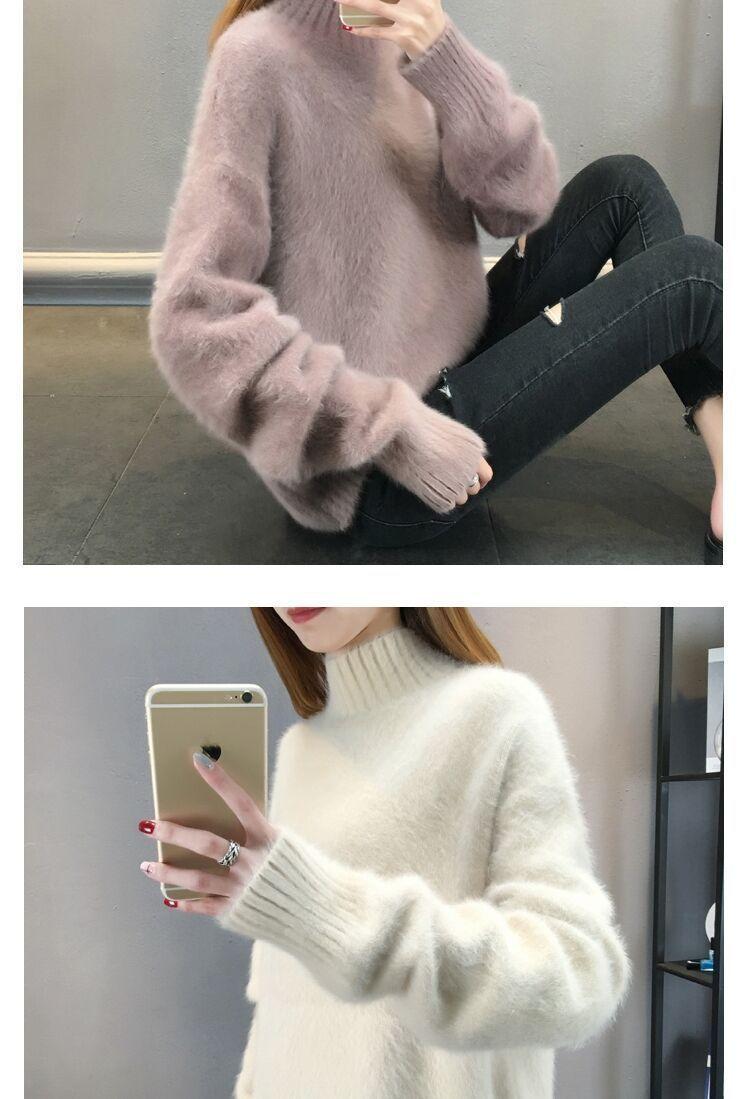 Suéter de Cachemira de Visón Imitación Nuevo Otoño e Invierno 2023 para Mujer Estilo Holgazán Espesado Suelto Estilo Coreano Cuello Mock Suéter Combinable