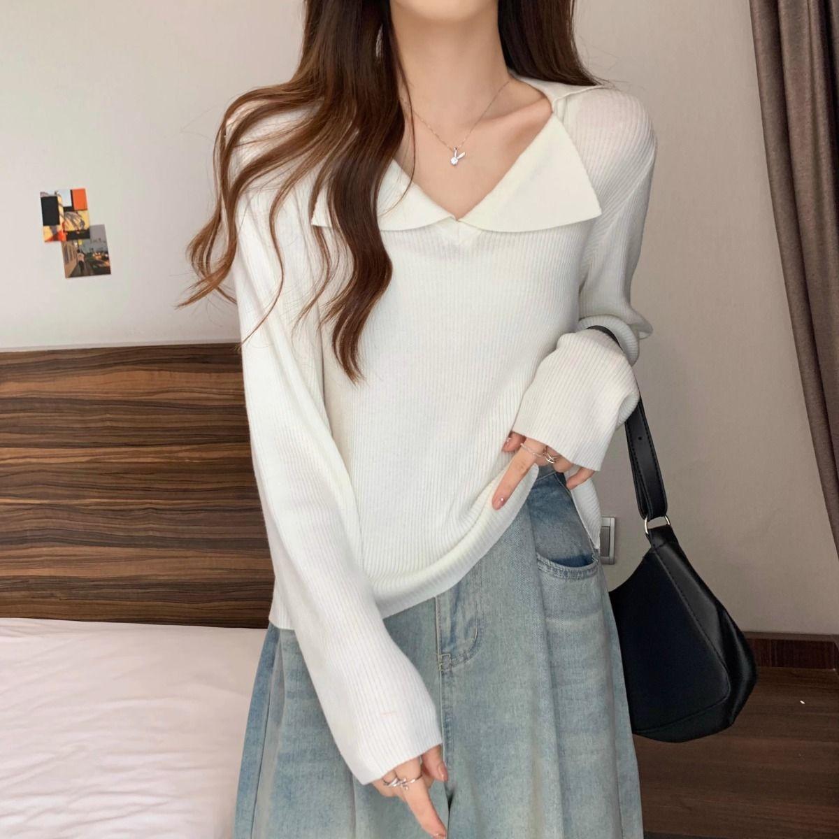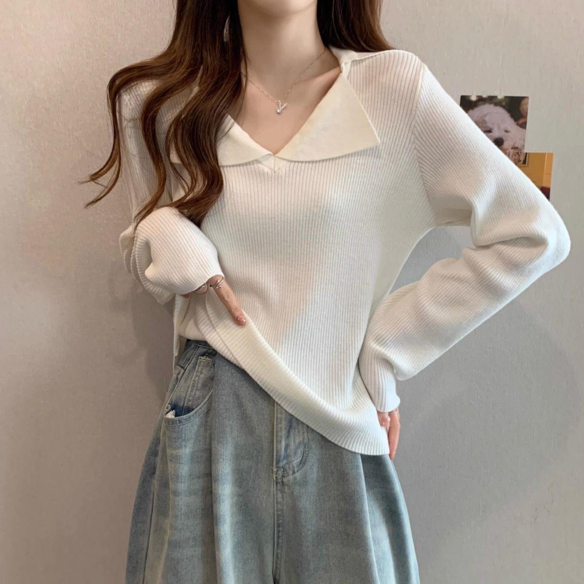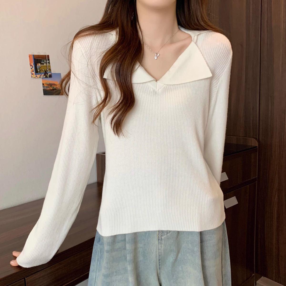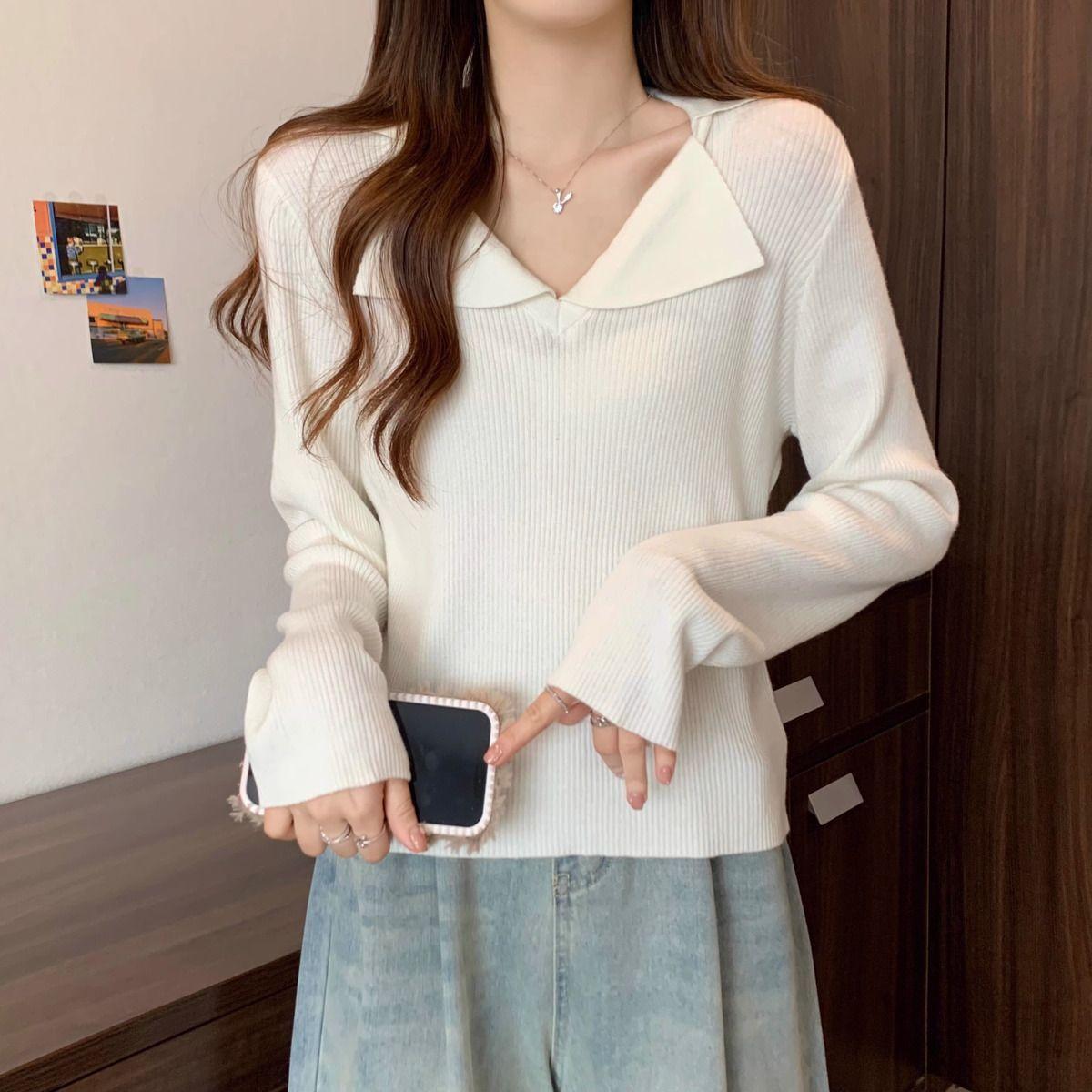 Suéter de punto de nicho con cuello en V y manga larga de otoño para mujer, dulce, de color sólido, ajustado, diseño de camisa básica, top Sense