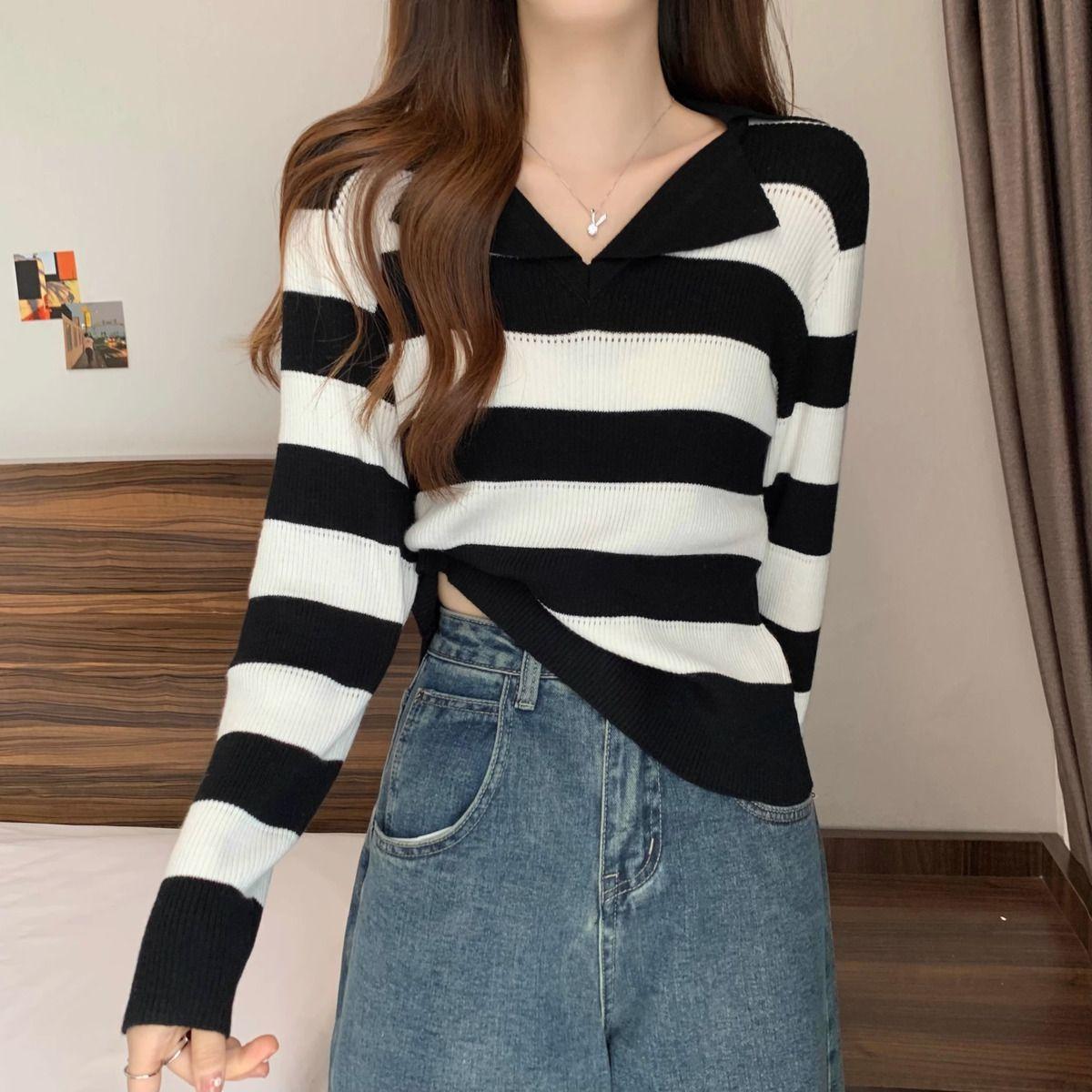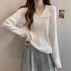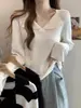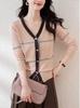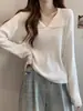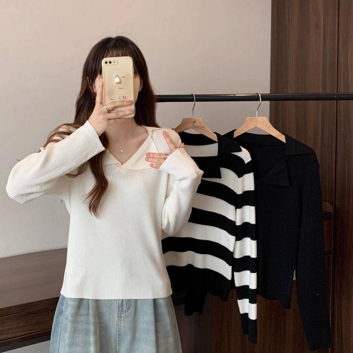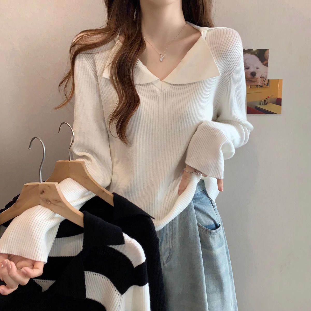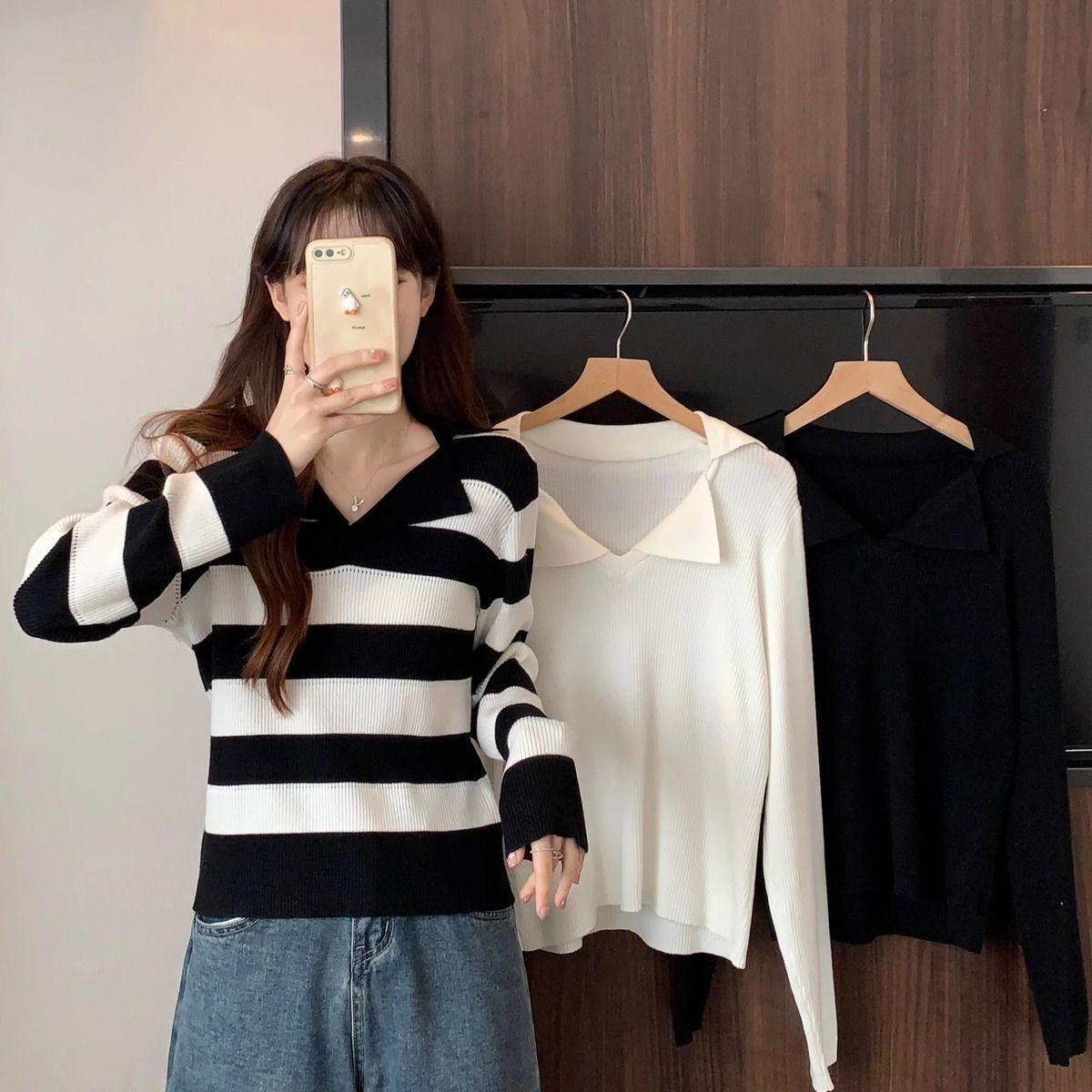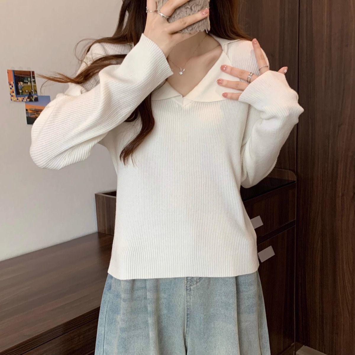 Suéter de punto de nicho con cuello en V y manga larga de otoño para mujer, dulce, de color sólido, ajustado, diseño de camisa básica, top Sense