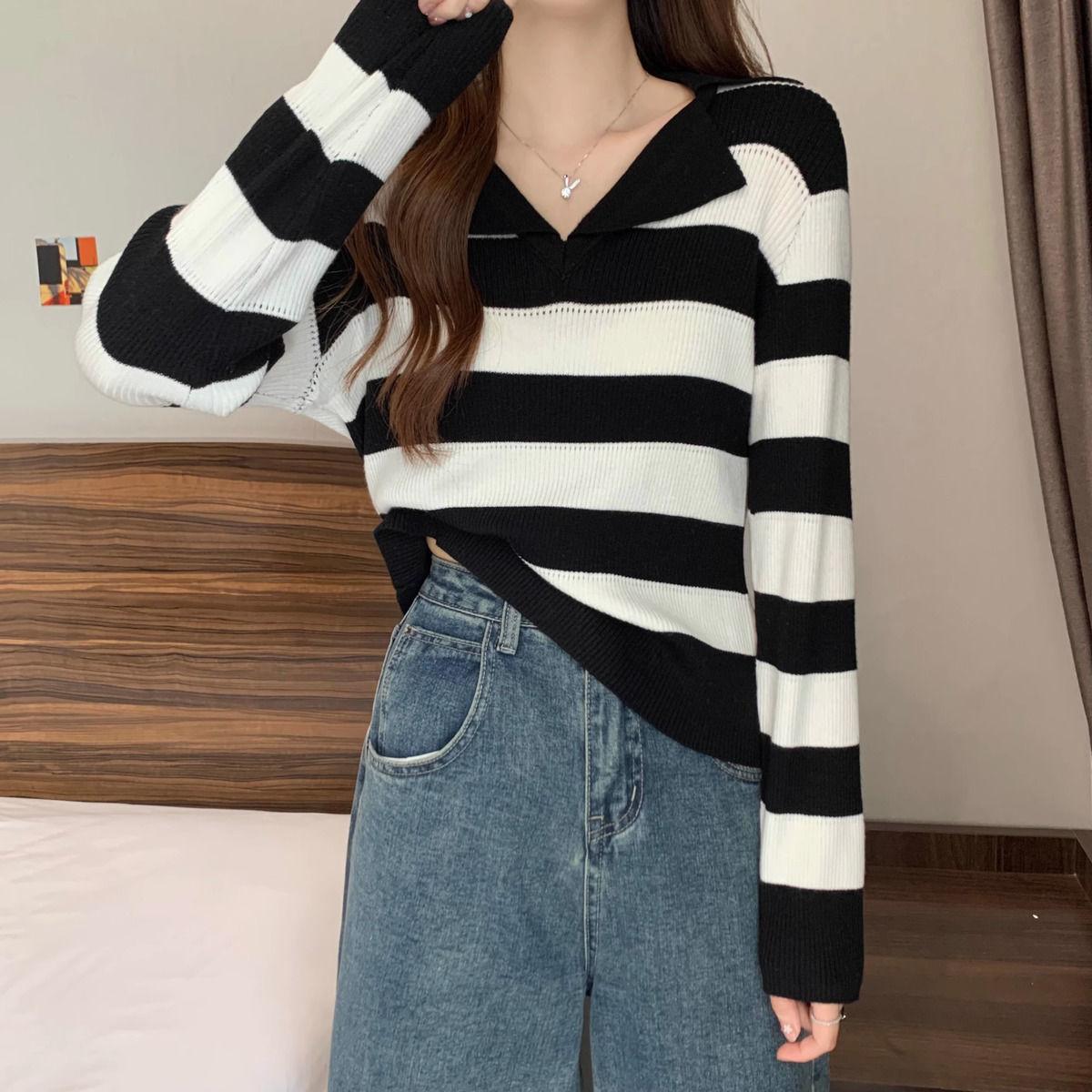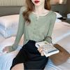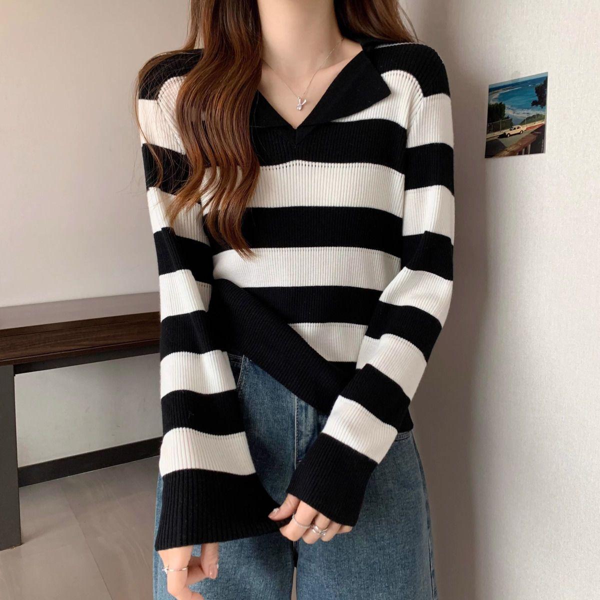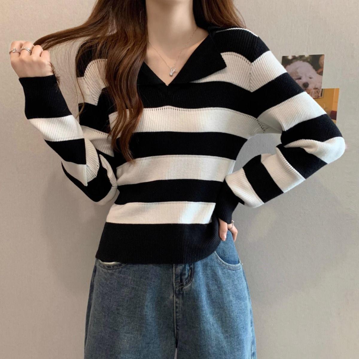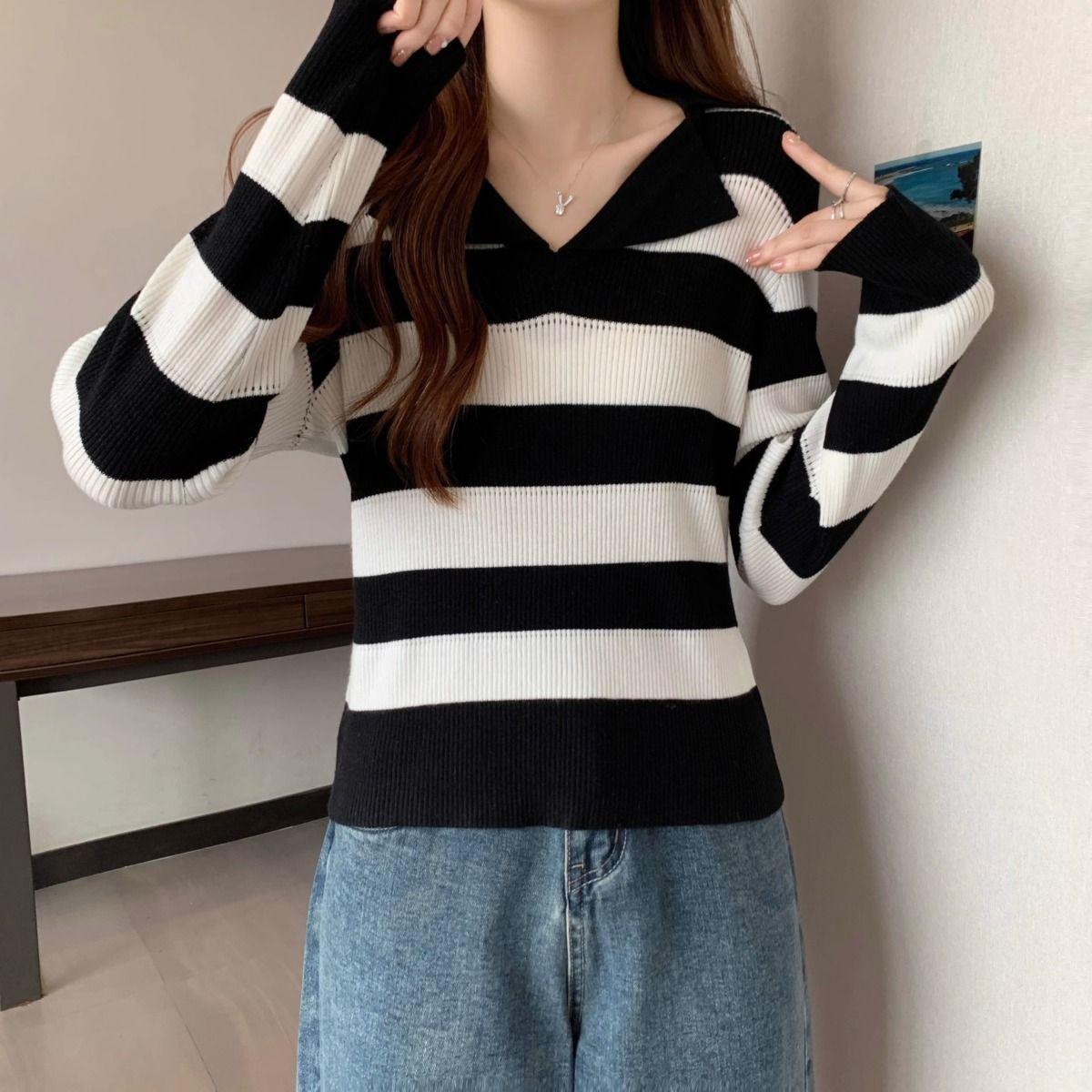 Suéter de punto de nicho con cuello en V y manga larga de otoño para mujer, dulce, de color sólido, ajustado, diseño de camisa básica, top Sense