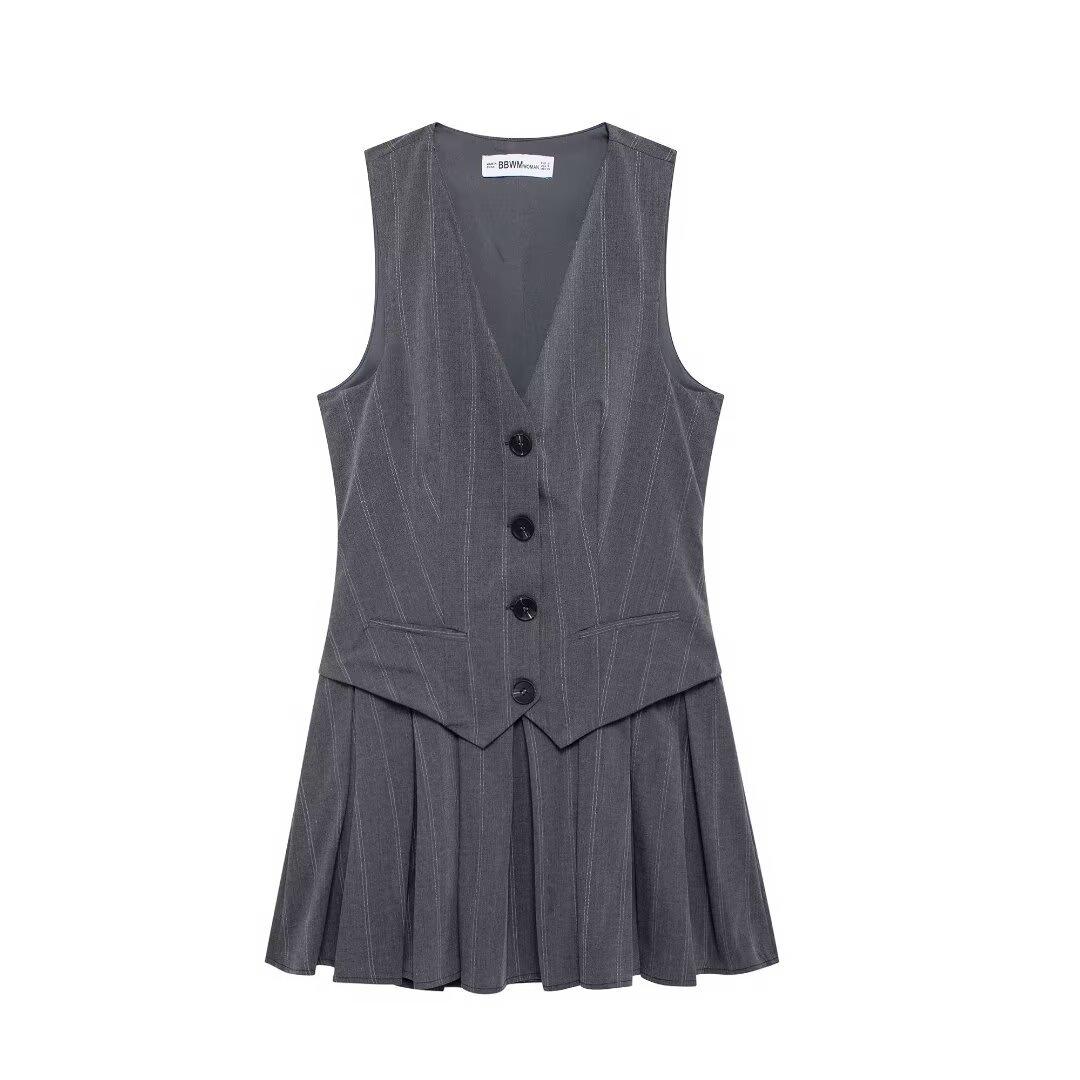 Vestido plisado a rayas con diseño Joker, nueva moda de otoño 2024, ropa de mujer europea y americana transfronteriza