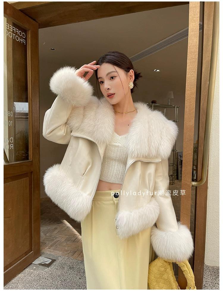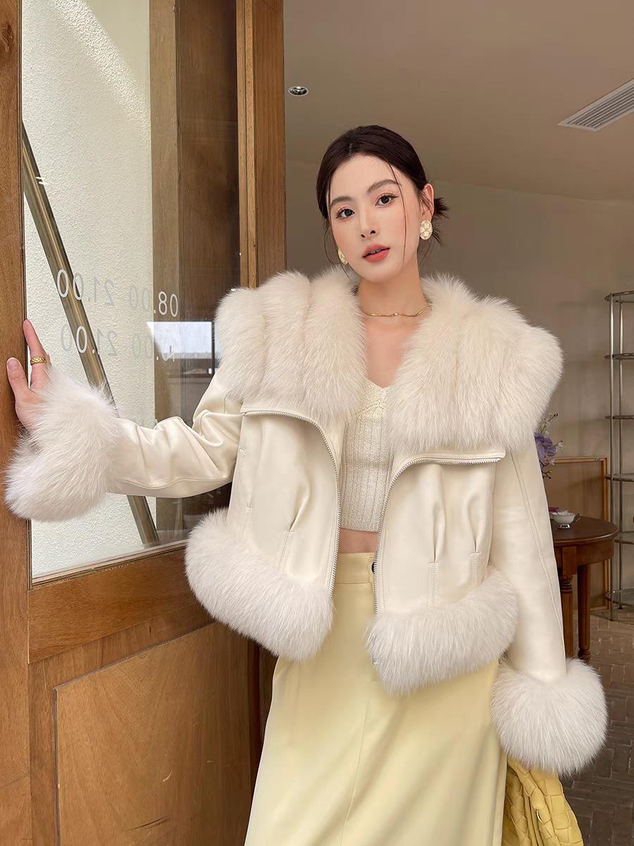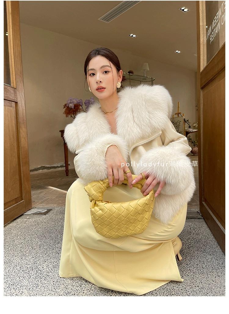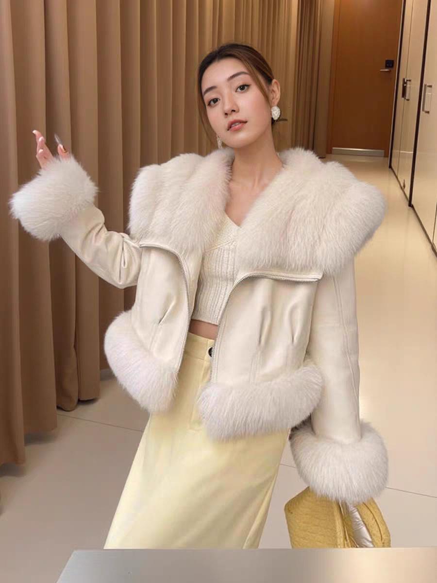 Invierno 2024 Zorro Hilado Piel de Oveja Cuello Chal Abrigo de Pelo de Piel para Mujer Abrigo de Piel de Una Pieza para Invierno Pequeño