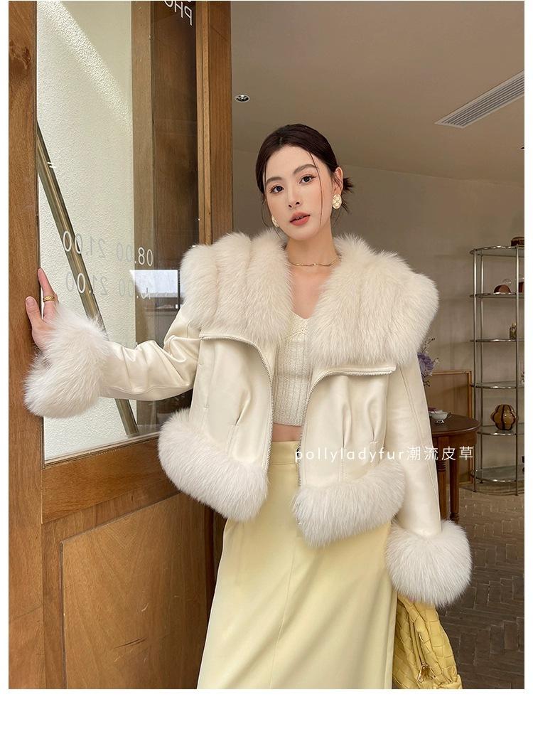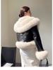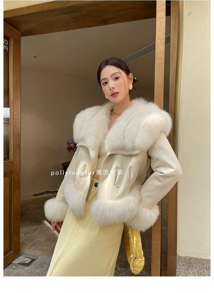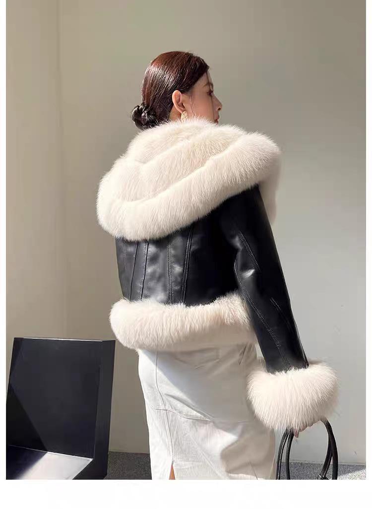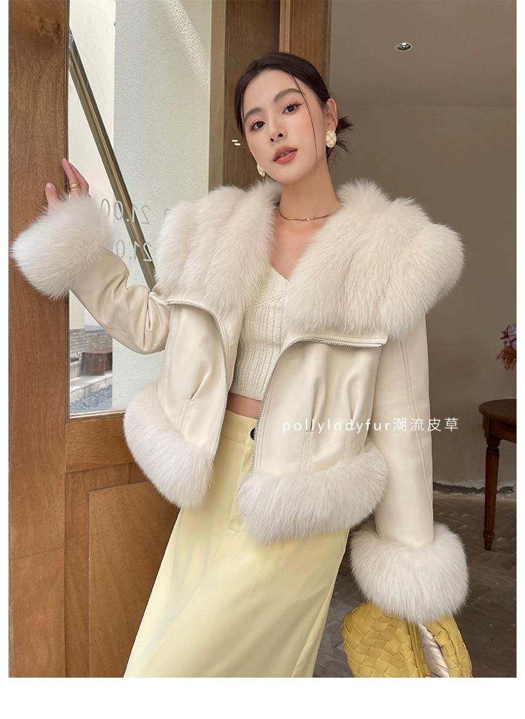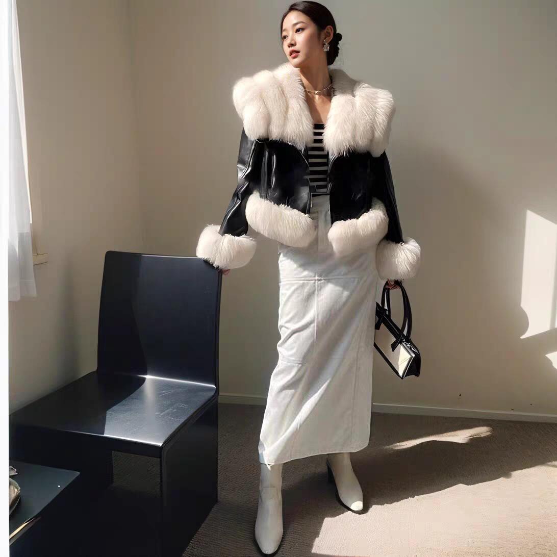 Invierno 2024 Zorro Hilado Piel de Oveja Cuello Chal Abrigo de Pelo de Piel para Mujer Abrigo de Piel de Una Pieza para Invierno Pequeño