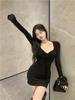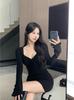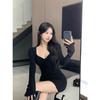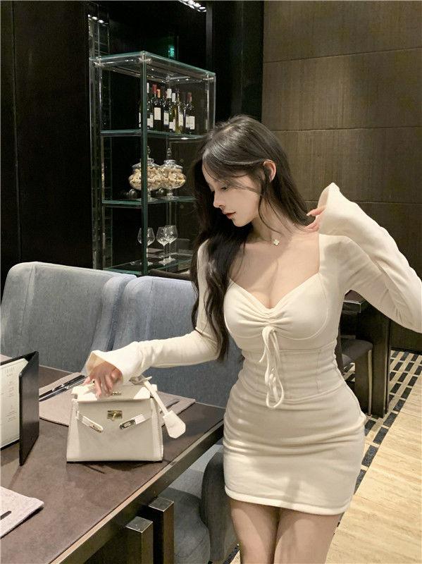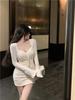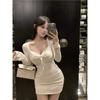 Deseo Puro Chica Caliente Cordón Cuello en V Manga Larga Vestido de Mujer Otoño/Invierno 2025 Nuevo Estilo Elegante Ajustado Bodycon Falda Corta