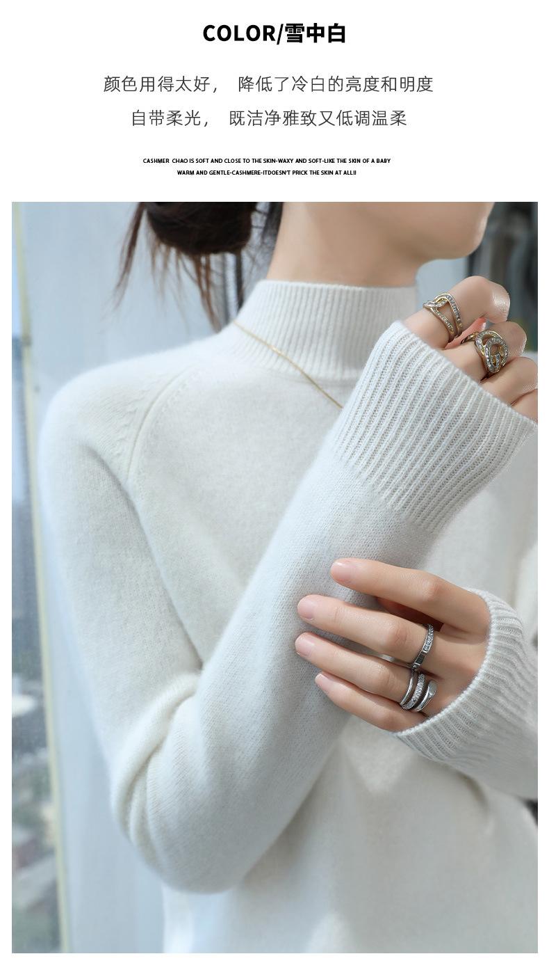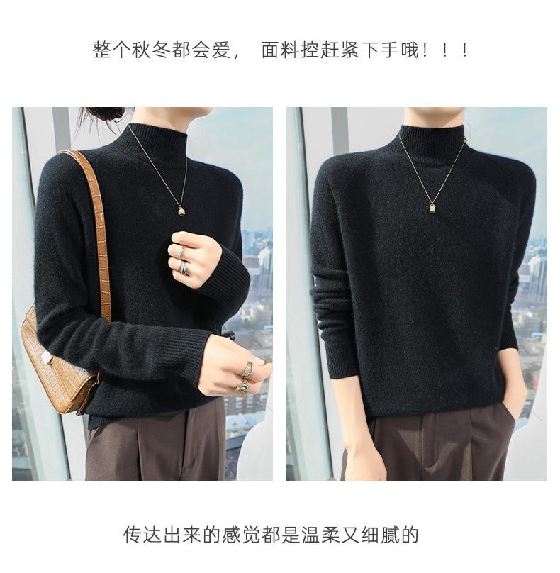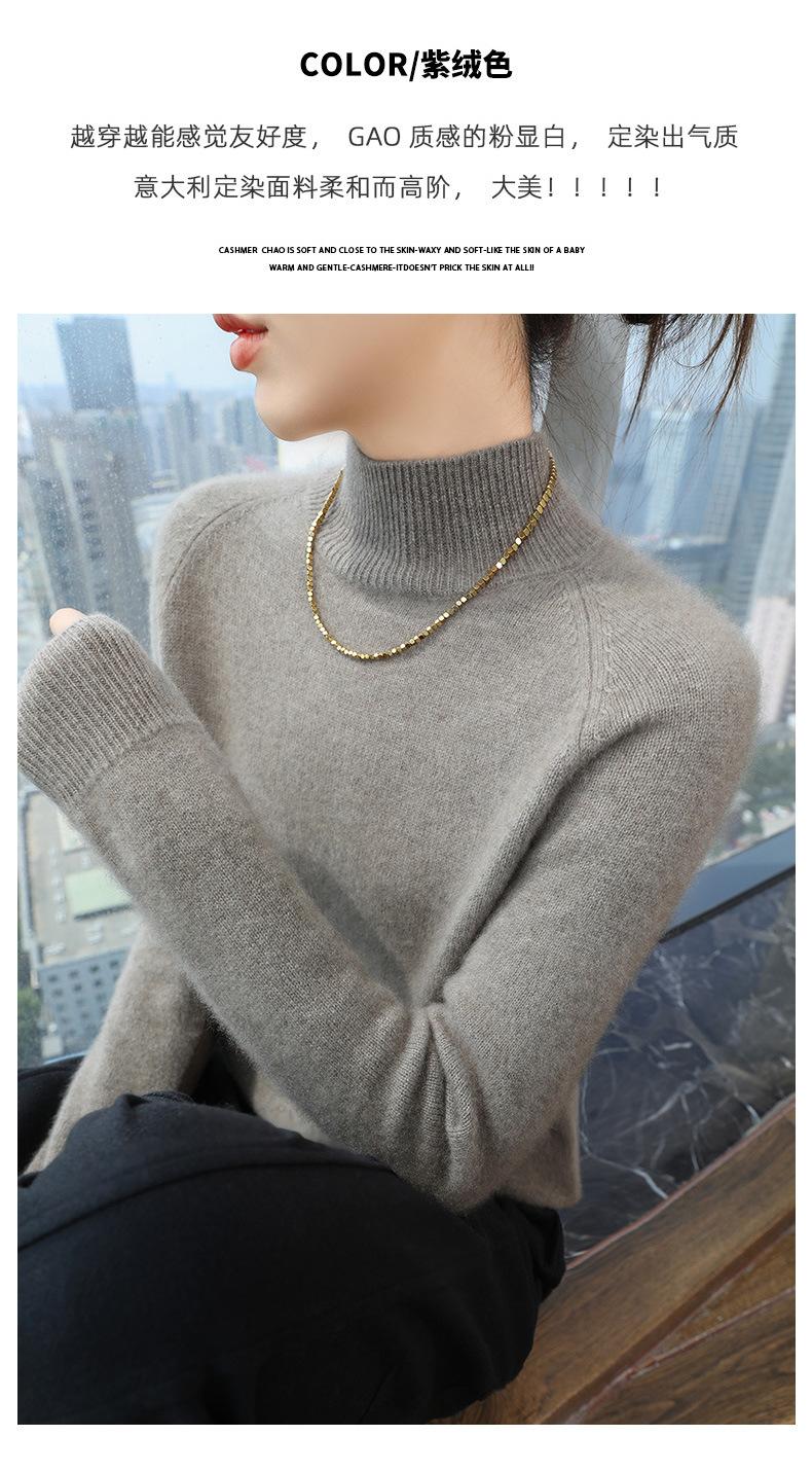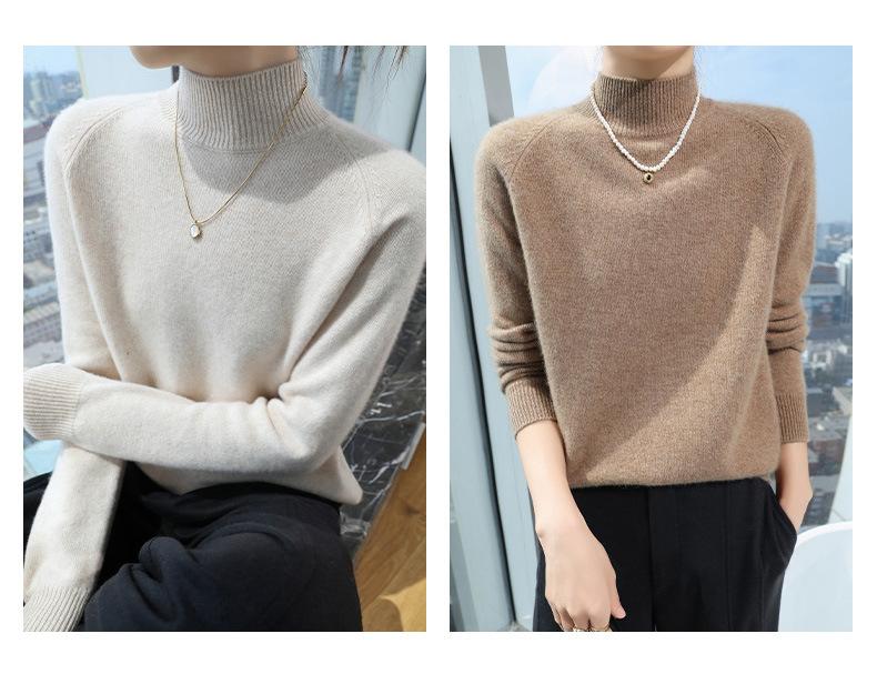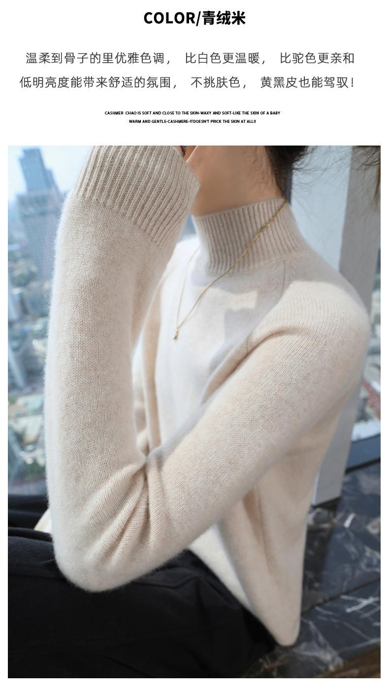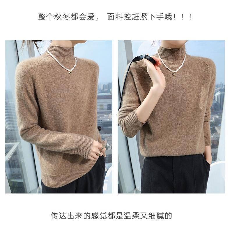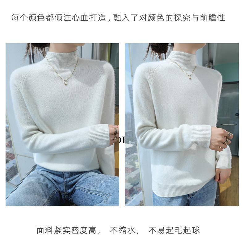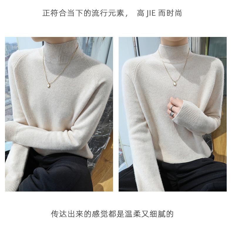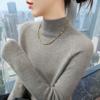 Otoño e Invierno Cuello Medio Tortuga Camiseta Base Engrosada Nueva Cachemira Suave Cera Suéter Delgado de Punto Versátil a la Moda y Simple para Mujer