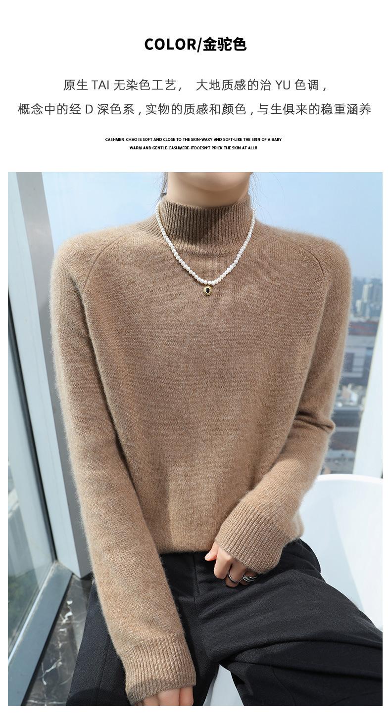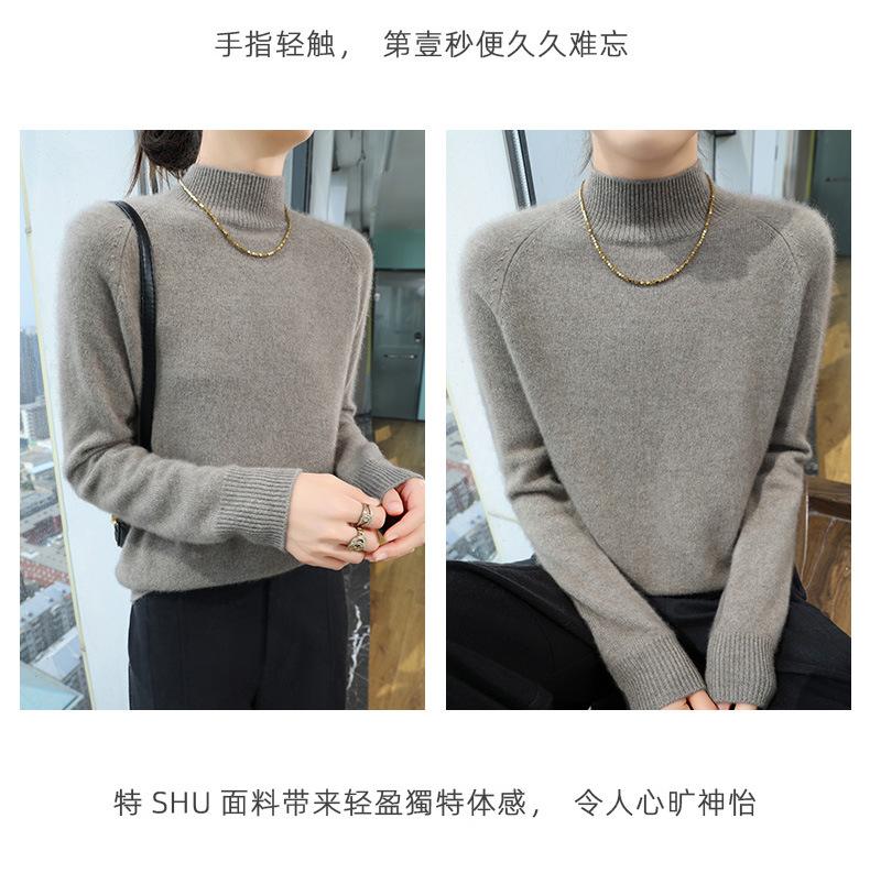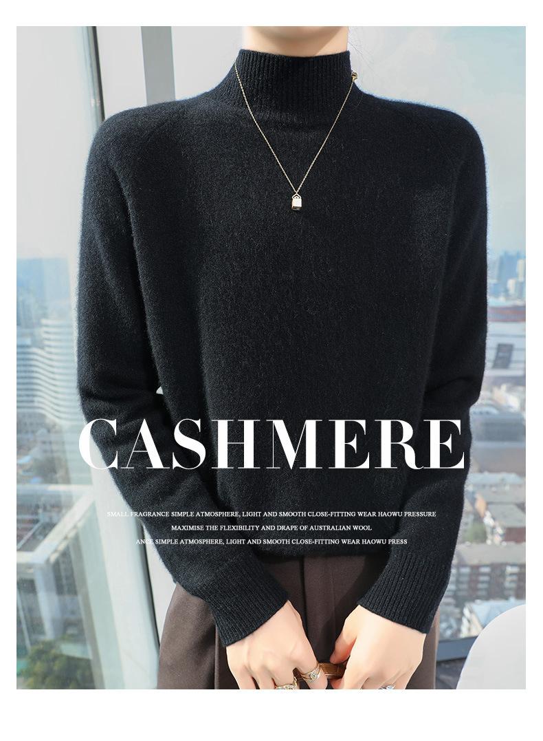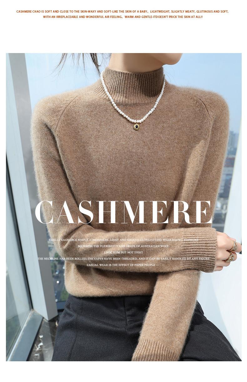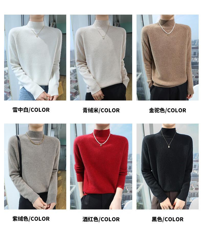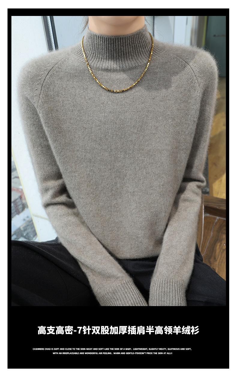 Otoño e Invierno Cuello Medio Tortuga Camiseta Base Engrosada Nueva Cachemira Suave Cera Suéter Delgado de Punto Versátil a la Moda y Simple para Mujer