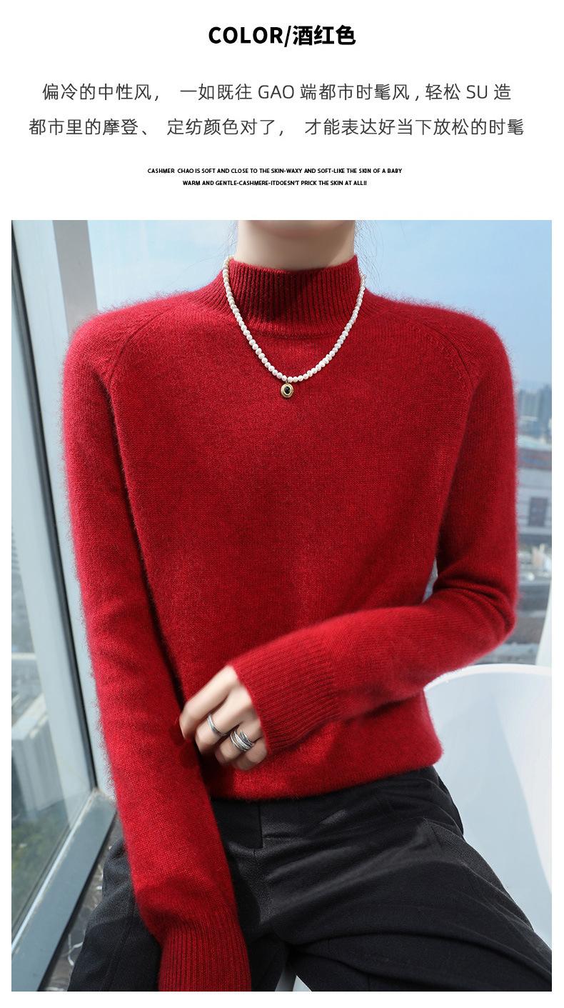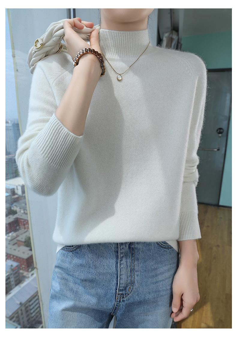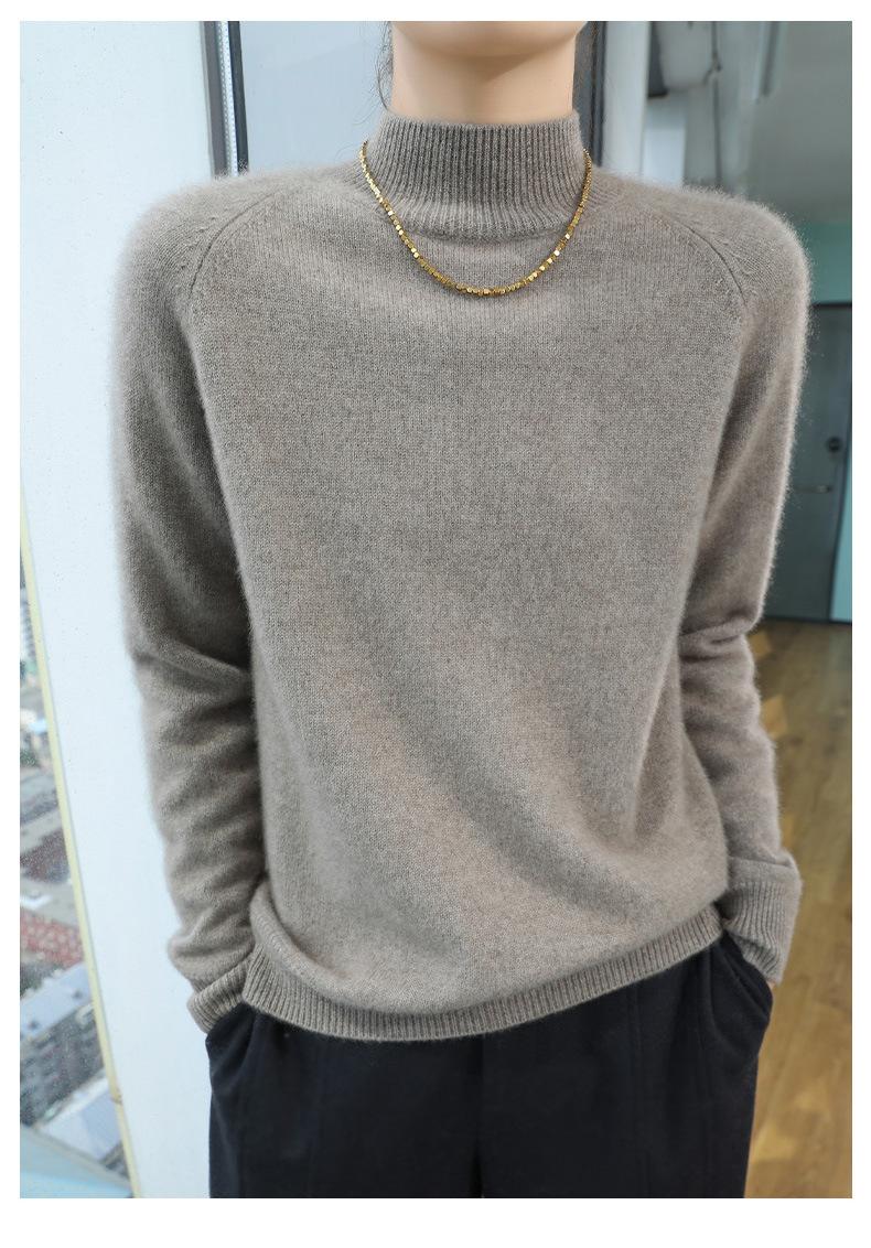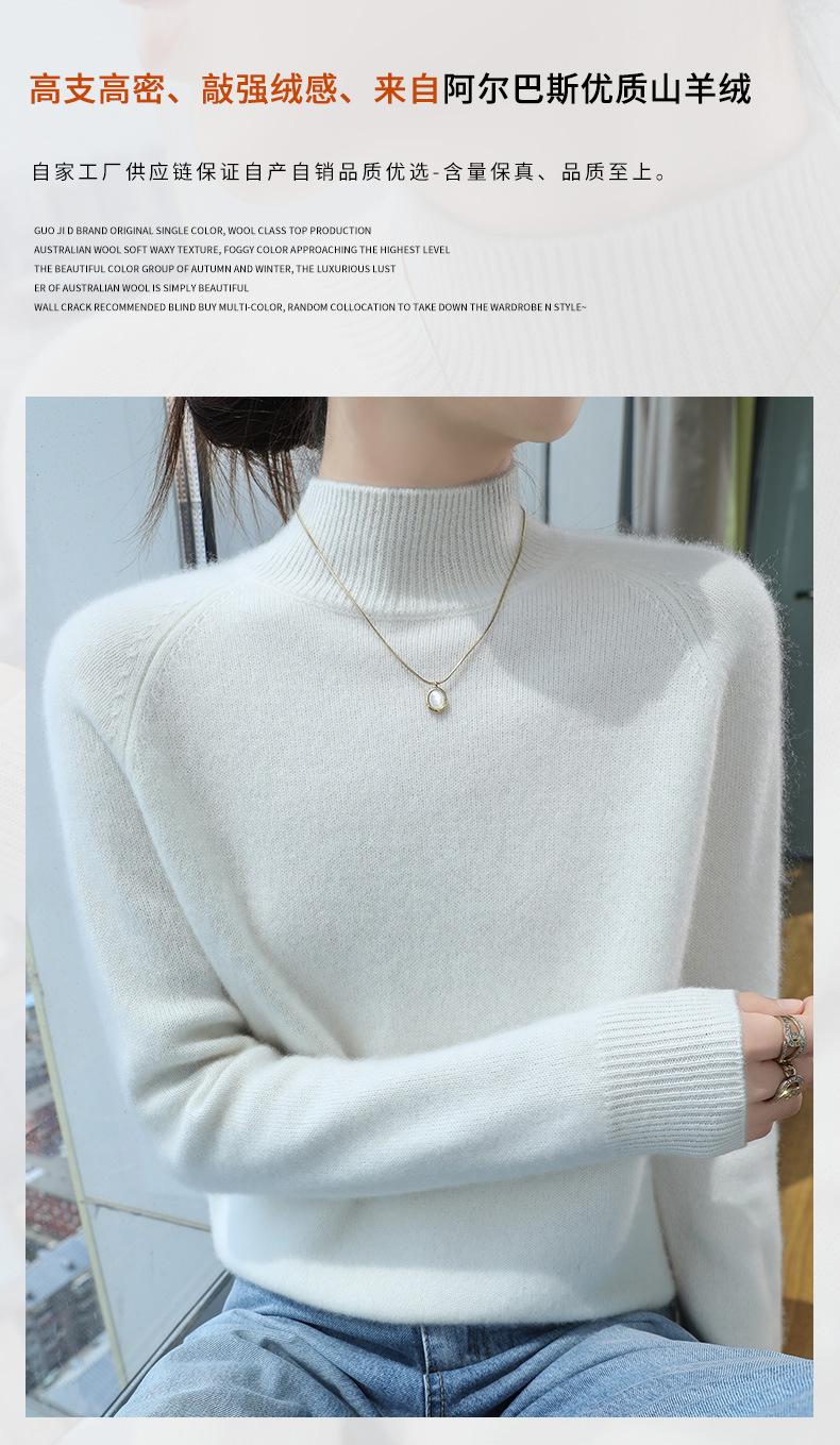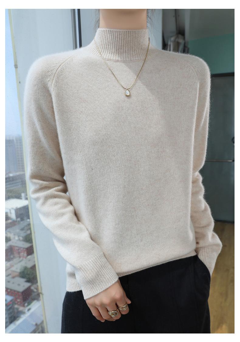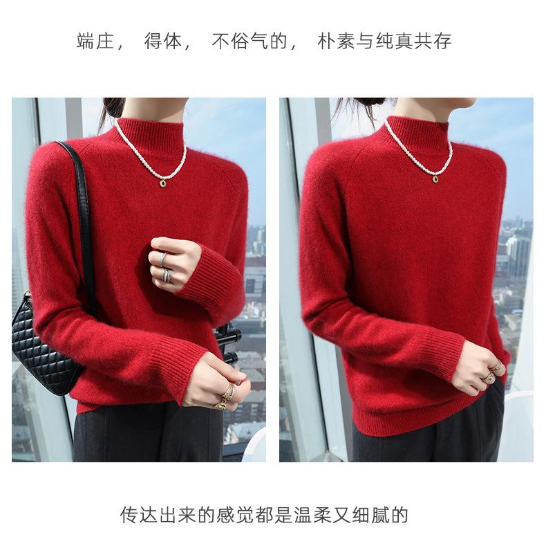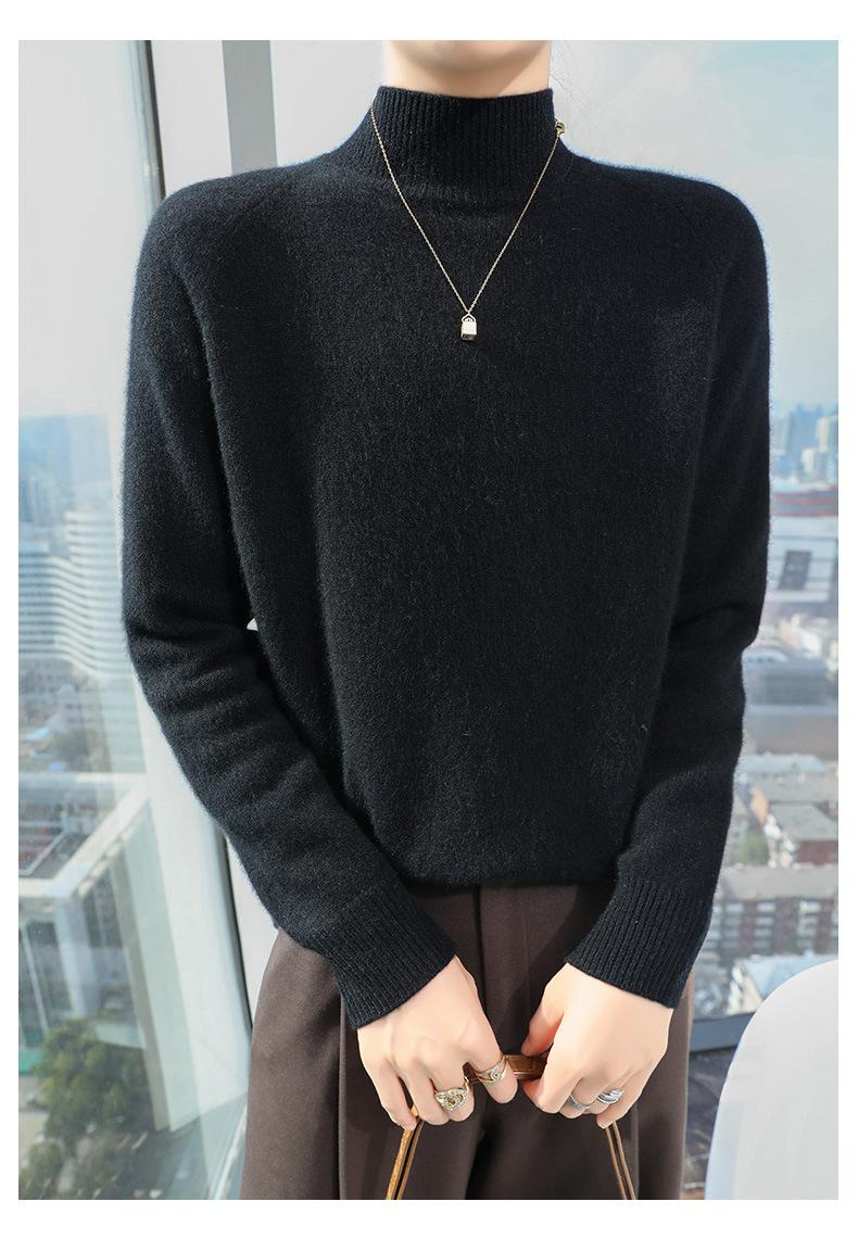 Otoño e Invierno Cuello Medio Tortuga Camiseta Base Engrosada Nueva Cachemira Suave Cera Suéter Delgado de Punto Versátil a la Moda y Simple para Mujer