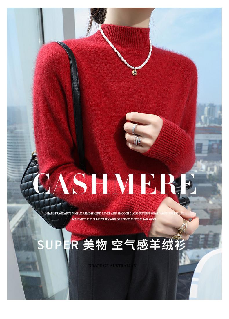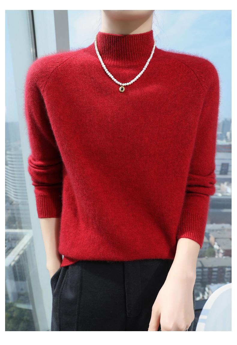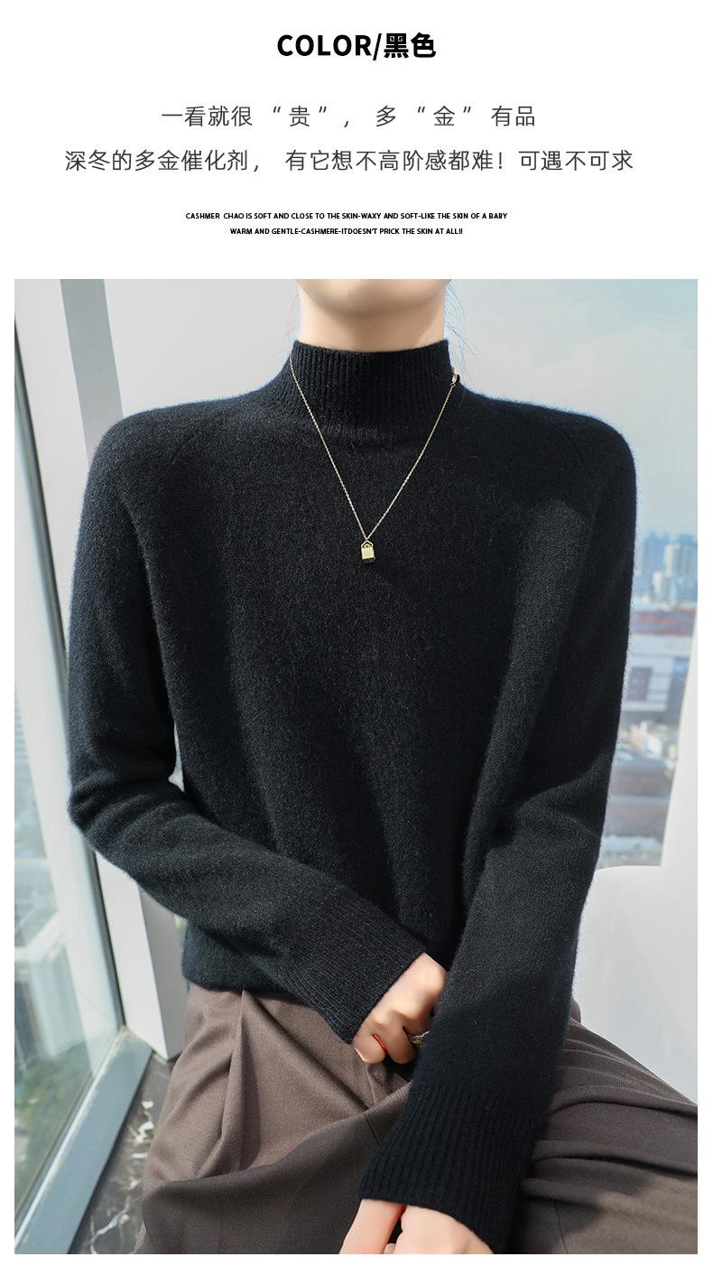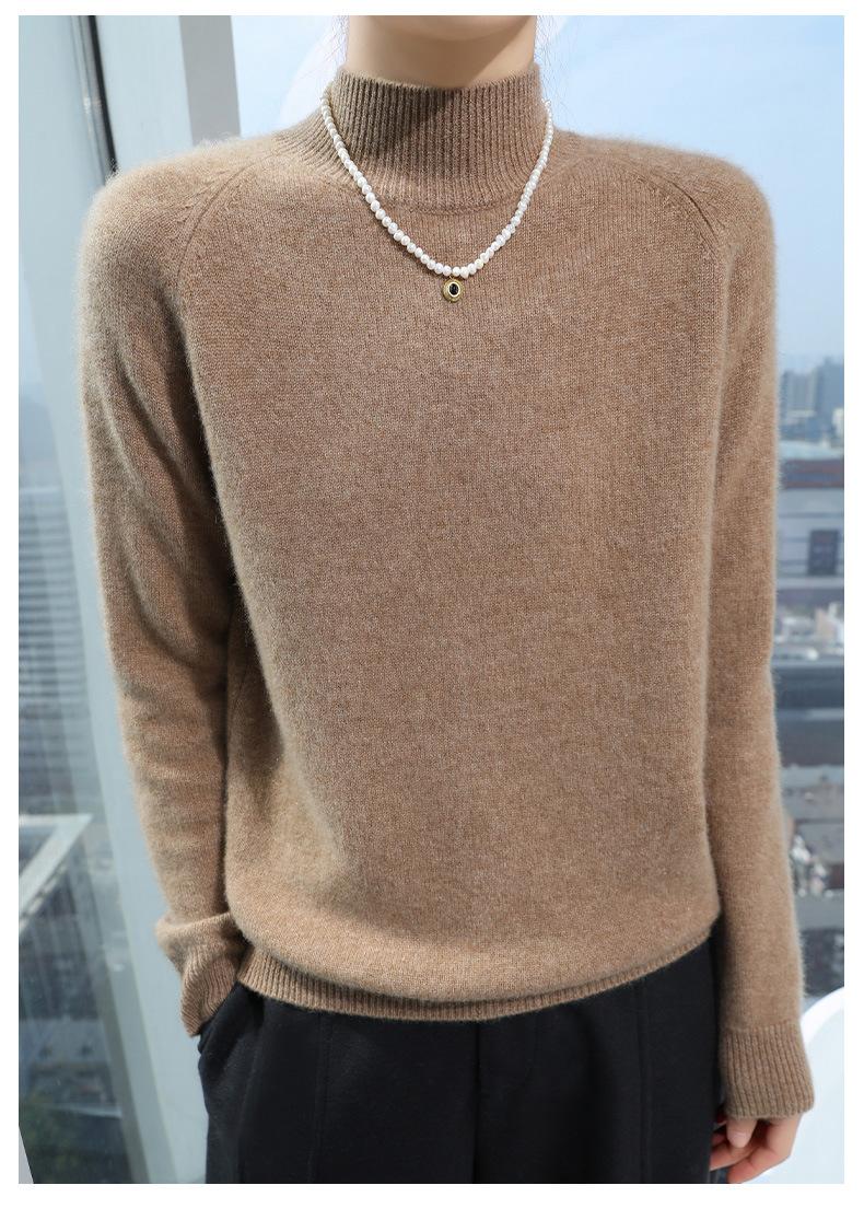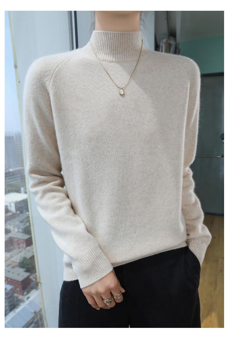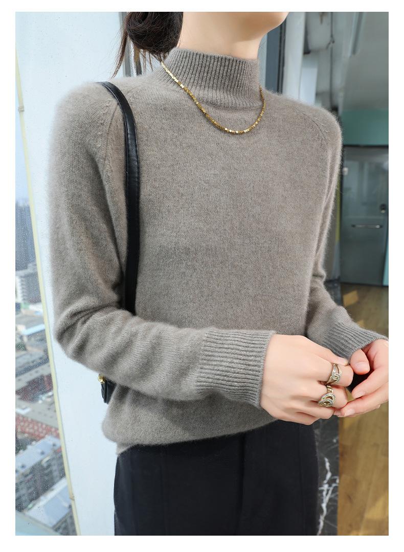 Otoño e Invierno Cuello Medio Tortuga Camiseta Base Engrosada Nueva Cachemira Suave Cera Suéter Delgado de Punto Versátil a la Moda y Simple para Mujer